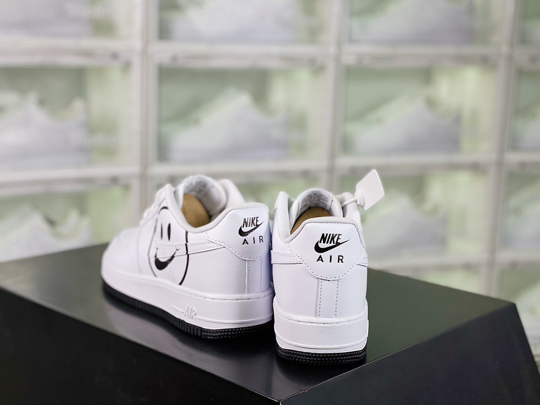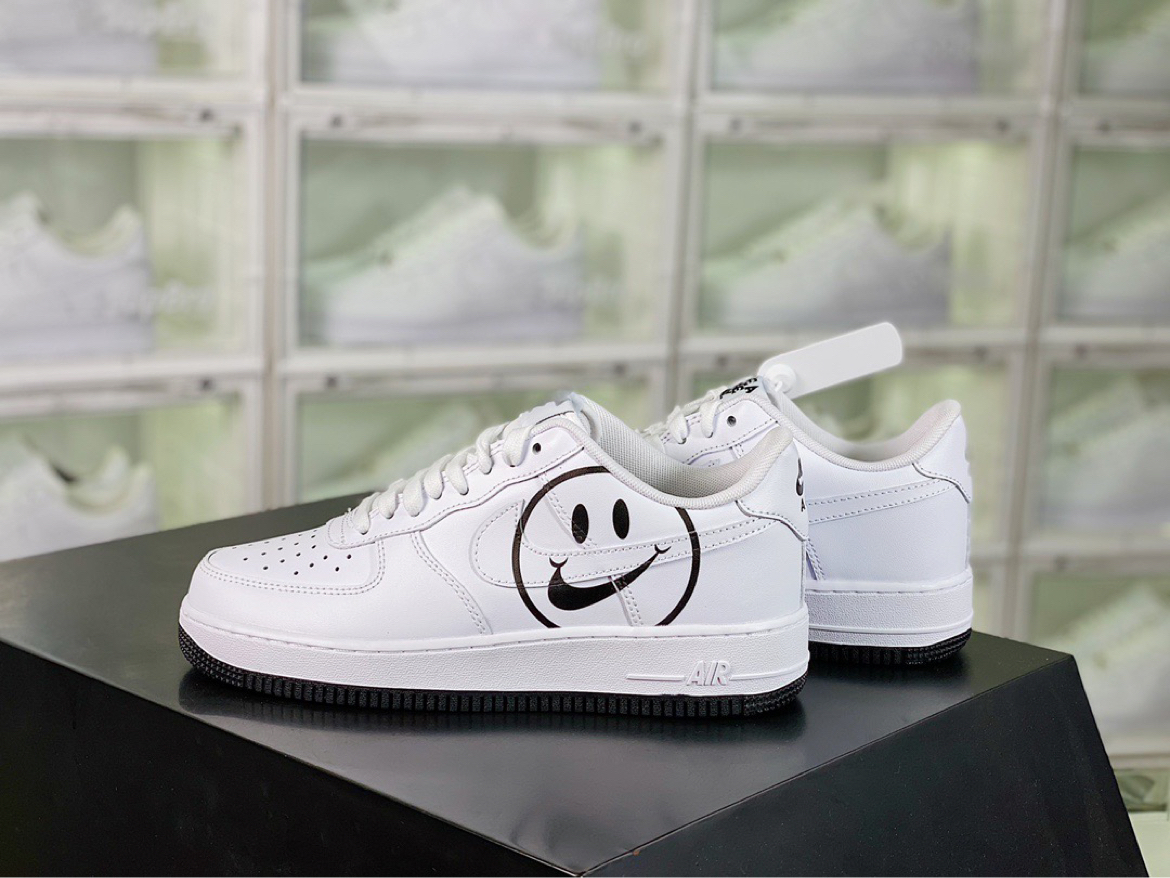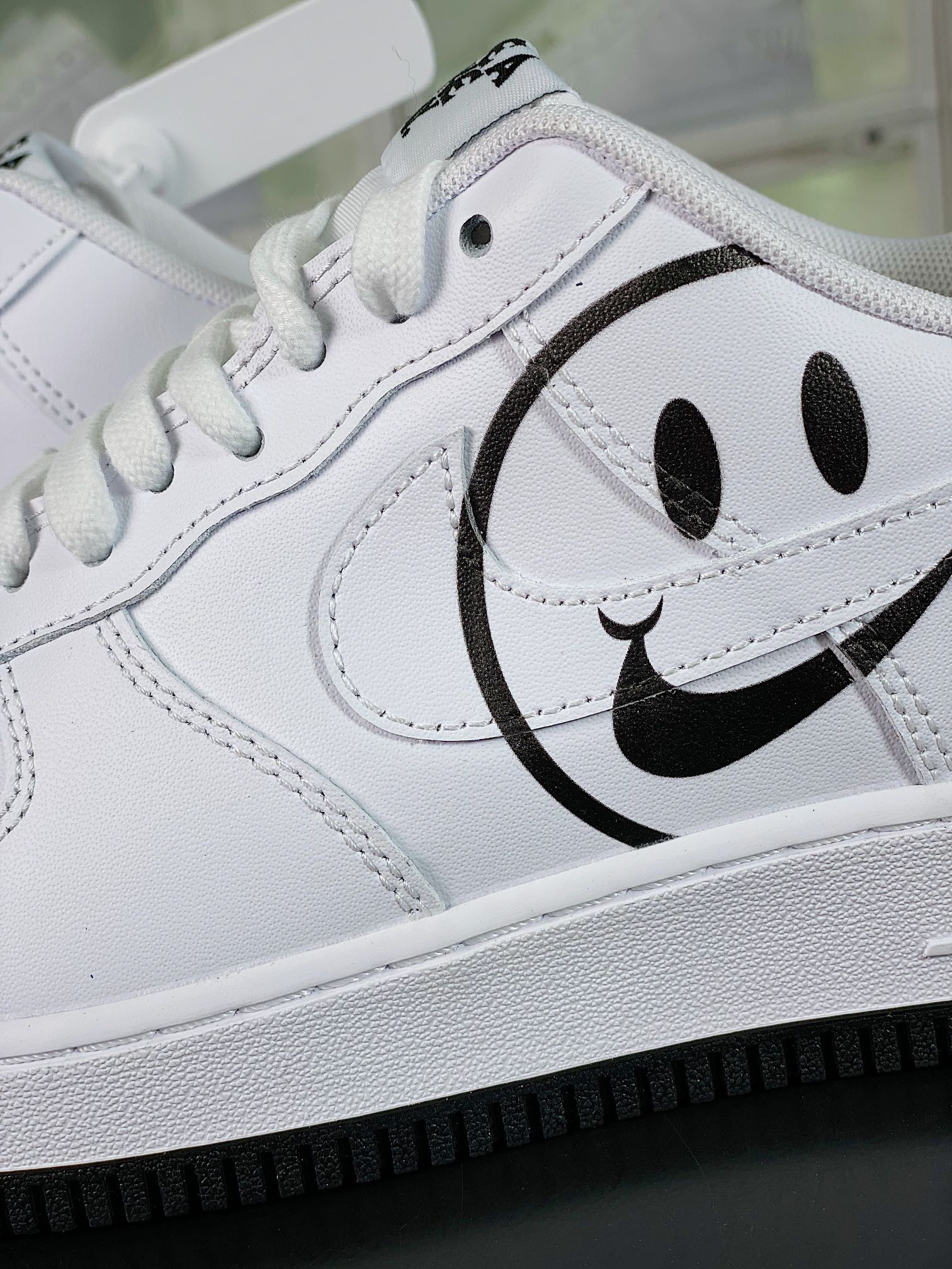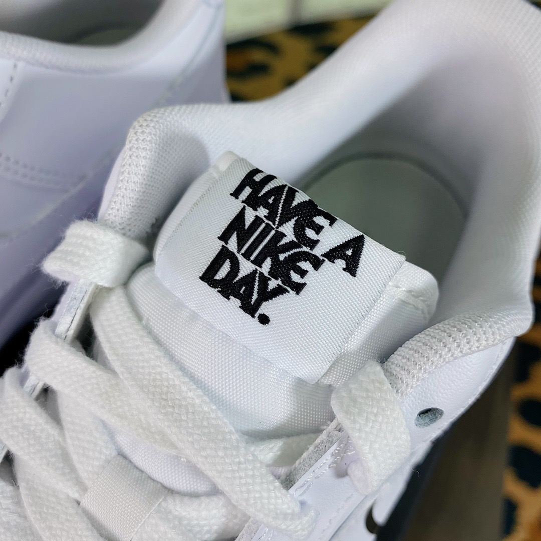 一双宝藏小白鞋 纯白色的Air Force1上有个小笑脸 鞋舌上写着“ Have a Nike day ” 黑白配色 很好搭衣服~