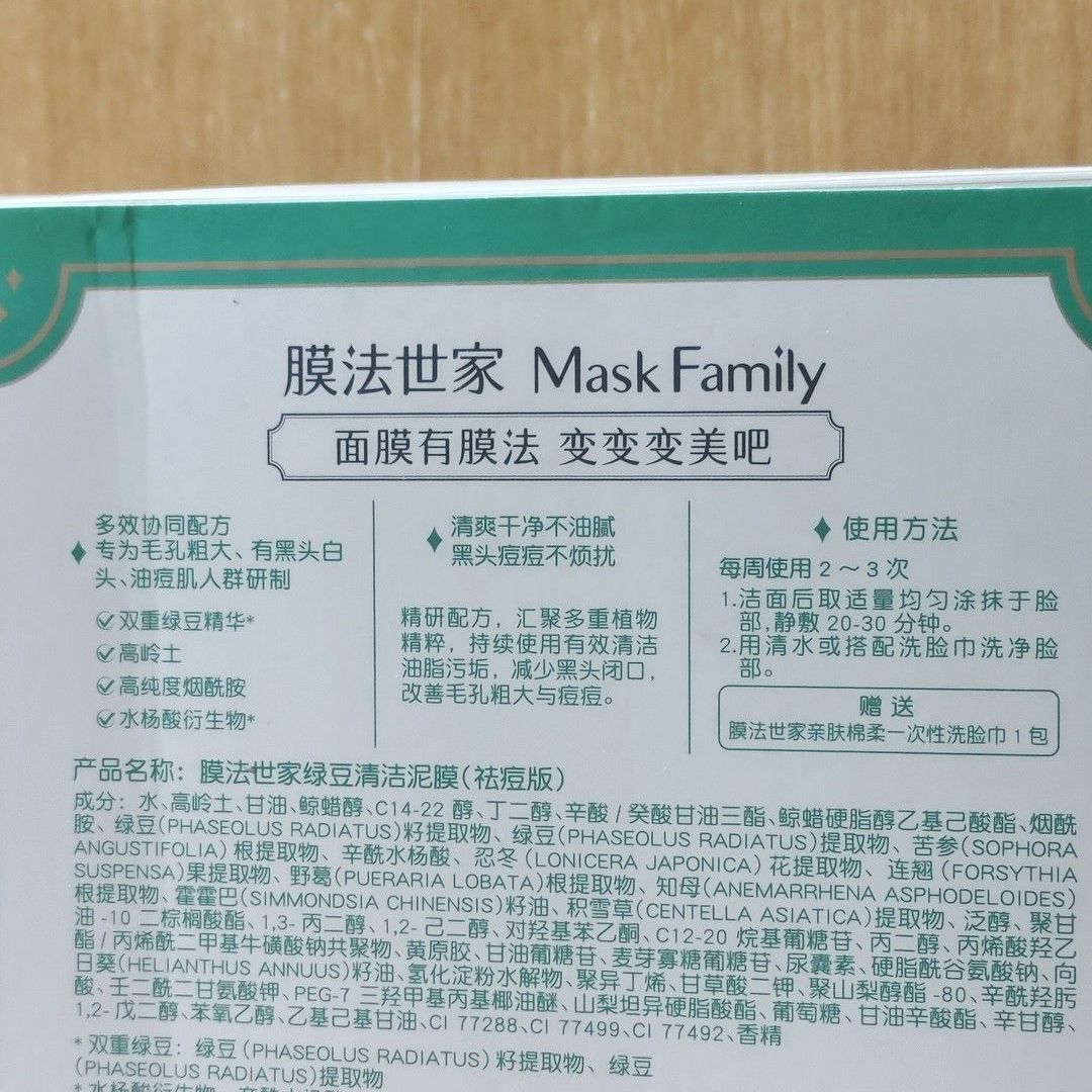 本篇笔记关联了膜法世家 绿豆泥浆清洁泥膜 去黑头闭口粉刺深层控油细毛孔舒缓痘肌 (经典版)125g等商品,为用户提供真实的使用体验和购买参考。