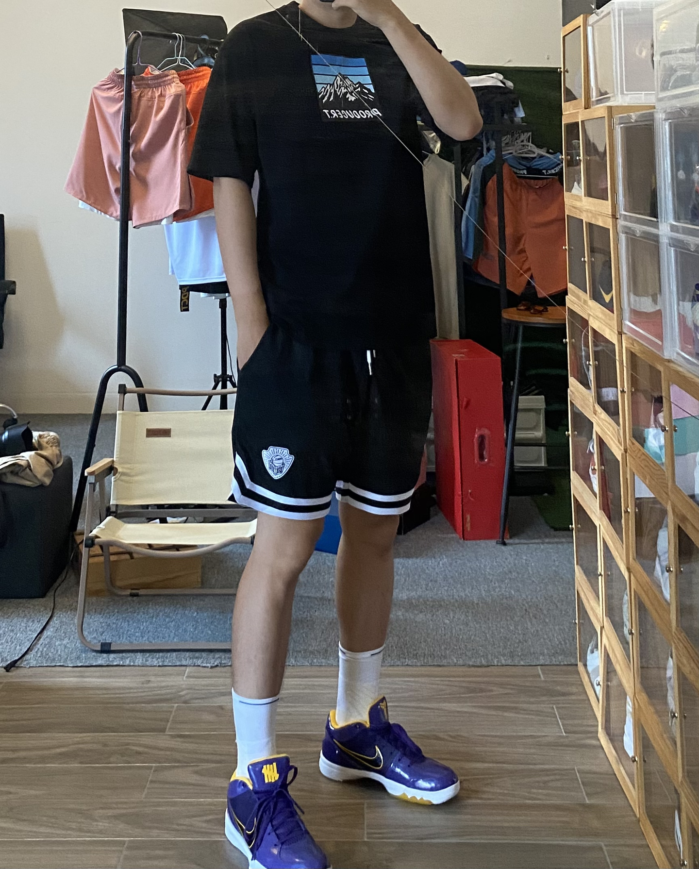 身高|体重:183 84kg 🧍♂️ 穿搭风格:休闲运动 👔 上衣:PDCT短袖 👖 下装:美式三分篮球裤 👟 鞋子:zk4