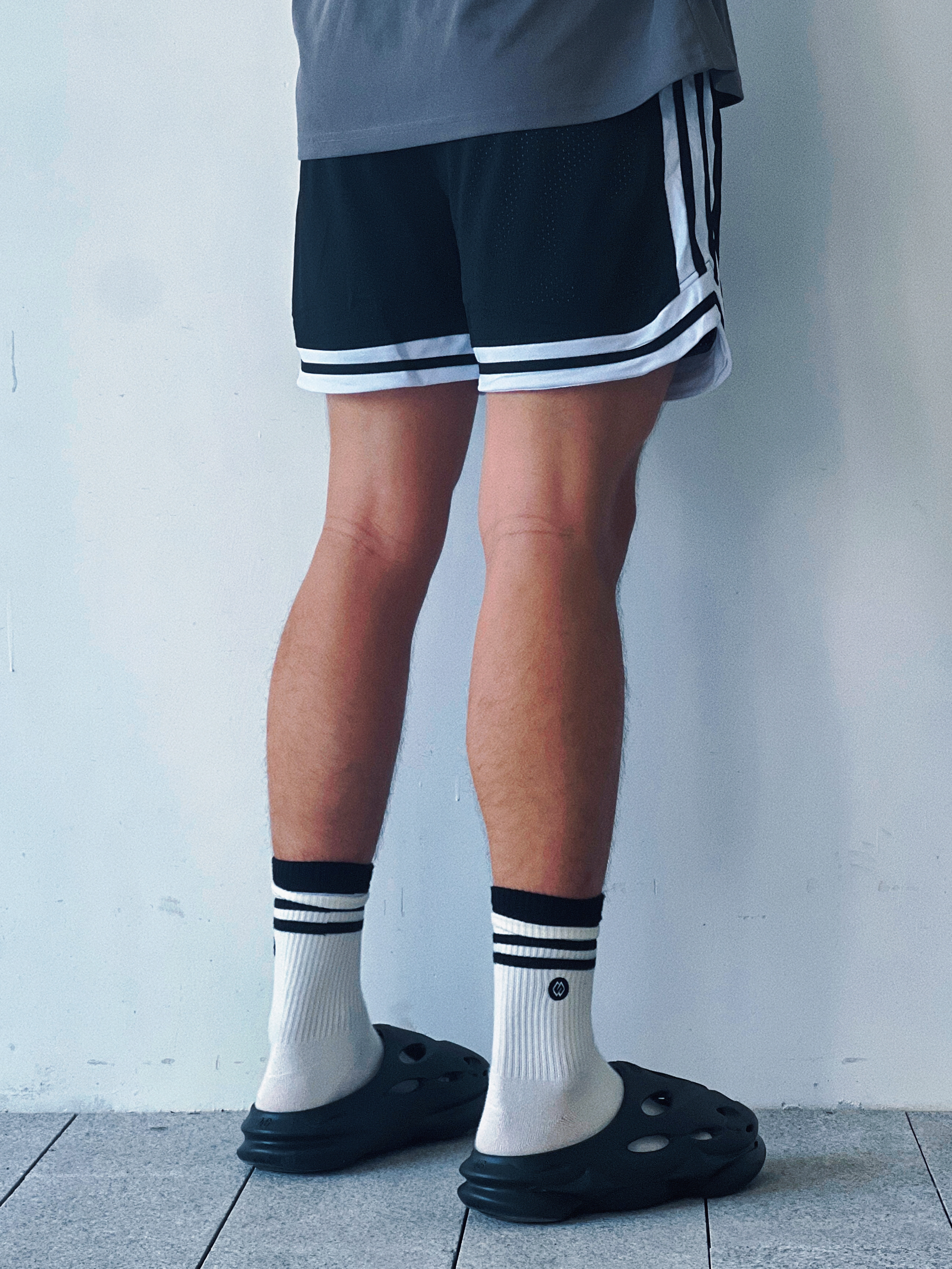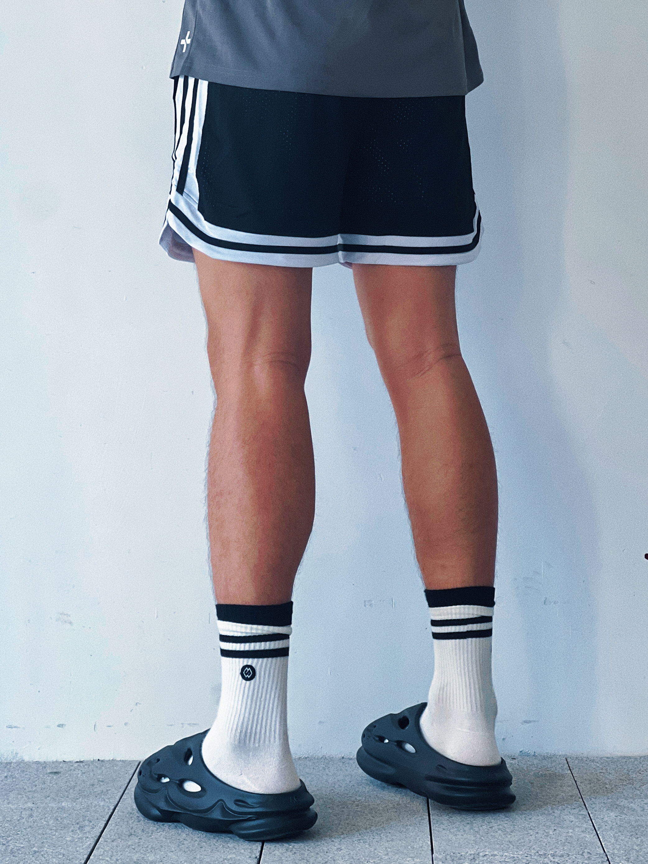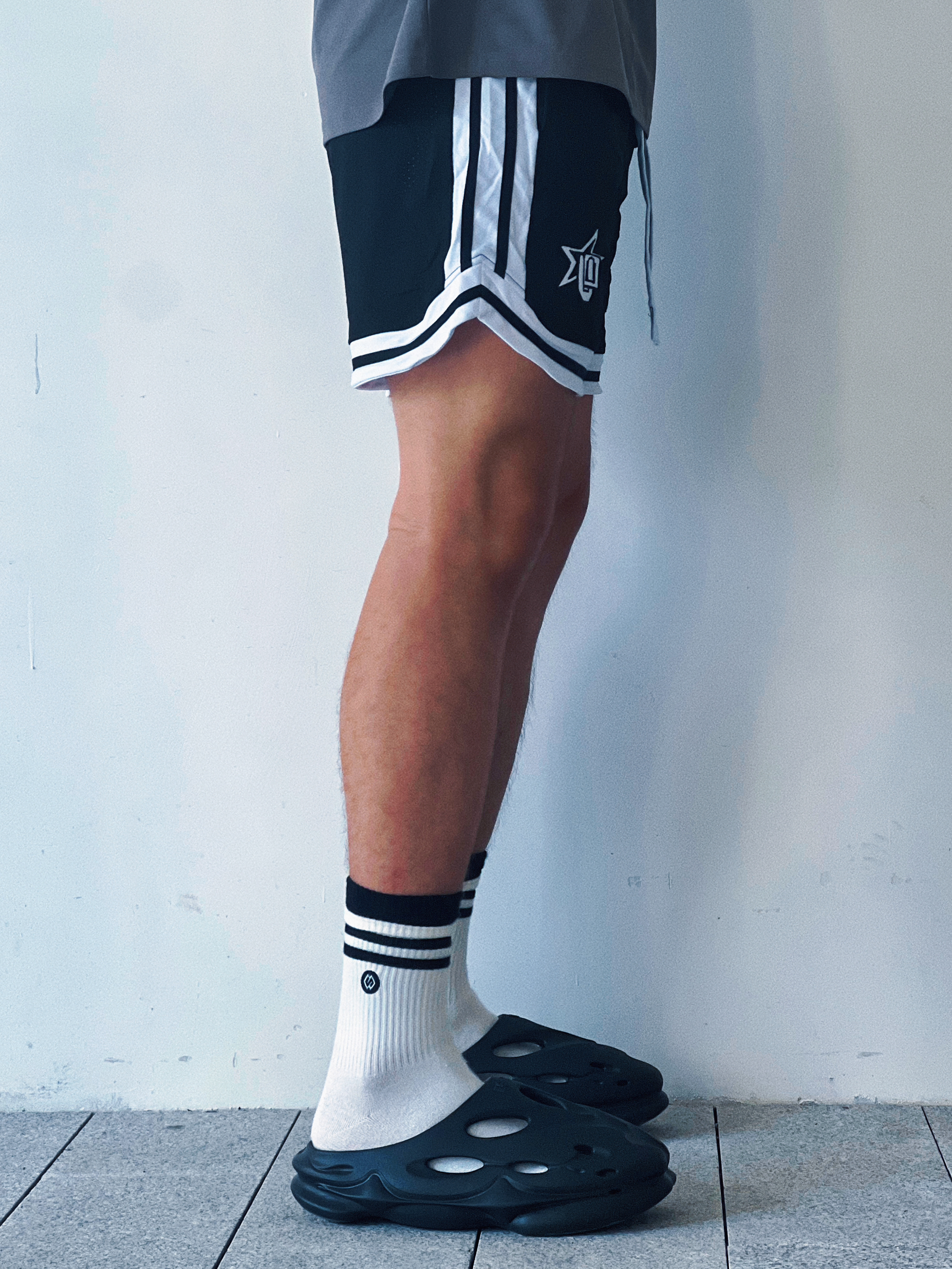 🩳:维动VEDOORN反转系列不过膝训练透气四分运动篮 👟:EQLZ EQUALIZER EQUALIZER 1100 黑豹 环保咖啡渣 香薰 休闲潮流运动 运动拖鞋 男女同款 黑色 短裤球鞋随心配!今天来到EQLZ❌维动! 整体黑武士的搭配再点缀一个黑白条纹袜,整体性十足,并且黑白搭配永远不会出错,出街打球都是不错的选择,喜欢的小伙伴快搭起来吧!