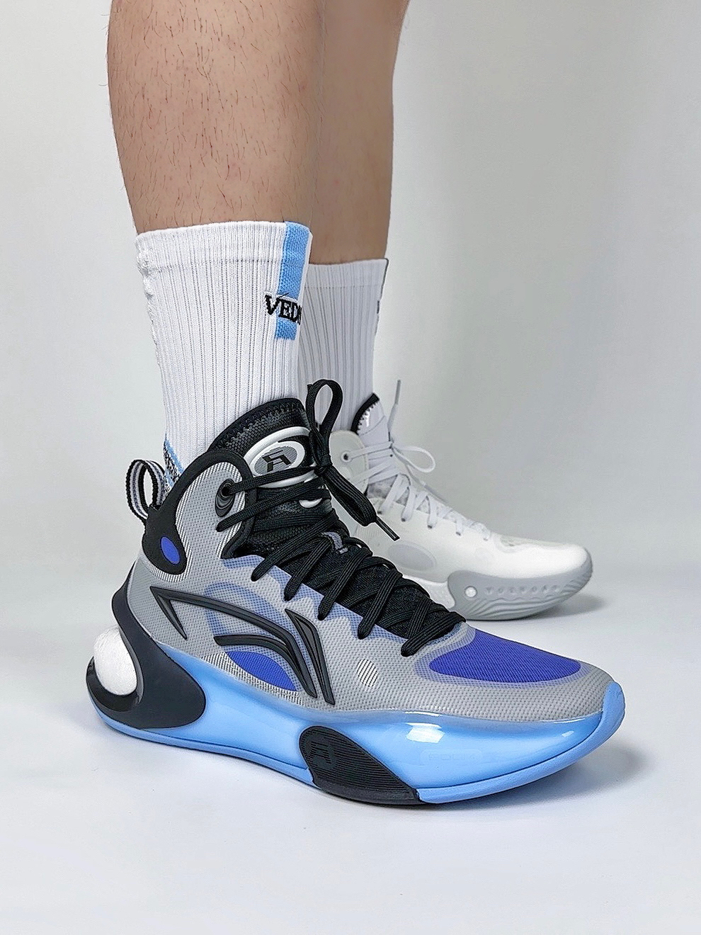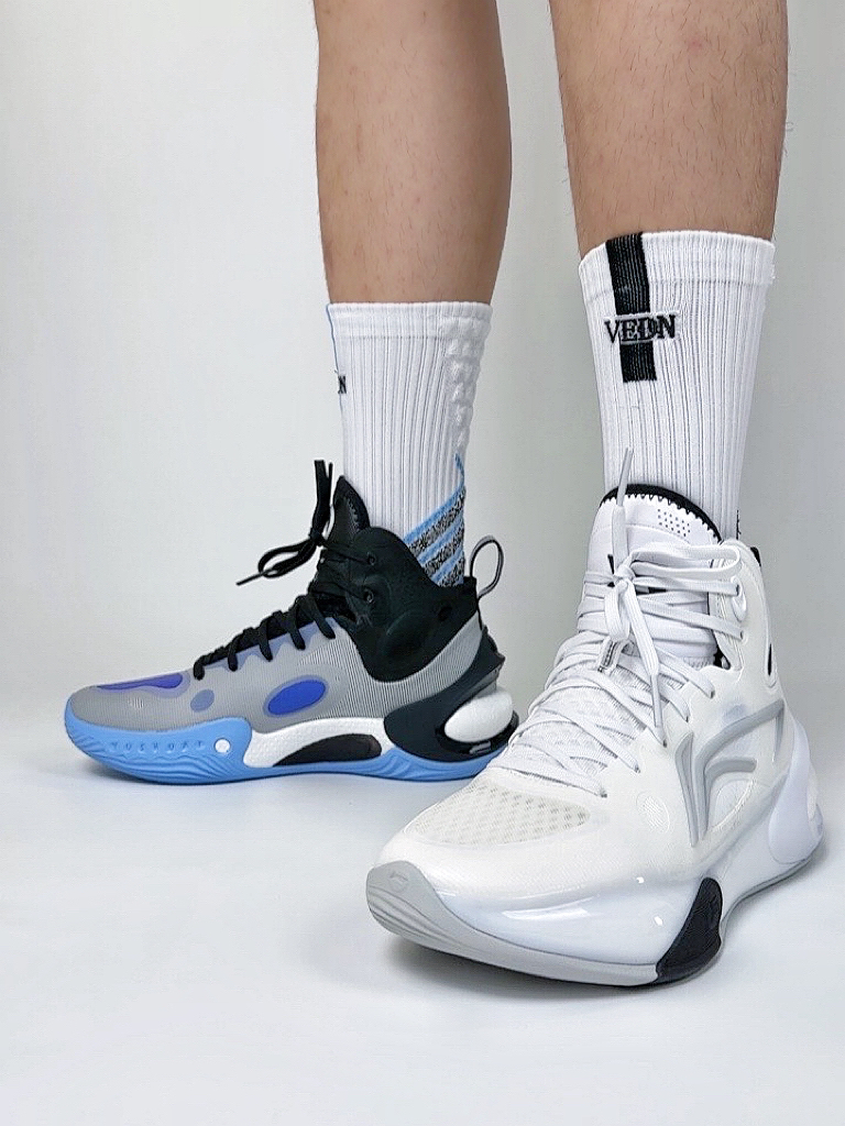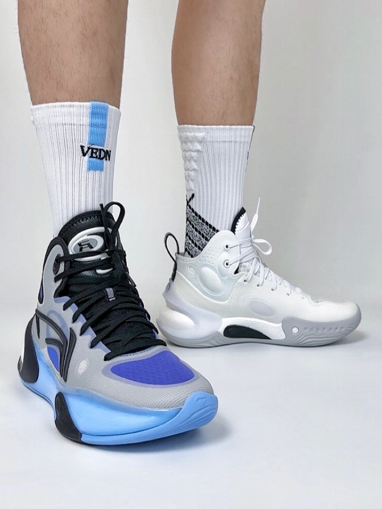 🏀👟:李宁 驭帅 17 高帮 黑白 黑灰 作为李宁的常青树🌲款,驭帅已经更迭到了第十七代,这次首发的是中高帮款式,对于脚踝能有更好的保护,但是对于突破型选手来说有一定的束缚脚踝的灵活性,这次球鞋的鞋楦做的非常的舒适,适配大部分的脚型。 适配人群:大体重内线选手和大体重钢炮。 球鞋配置 Mono纱网布材质鞋面➕全掌䨻轻弹科技➕后跟环抱式Tpu 足弓Tpu抗扭片➕橡胶材质大底。