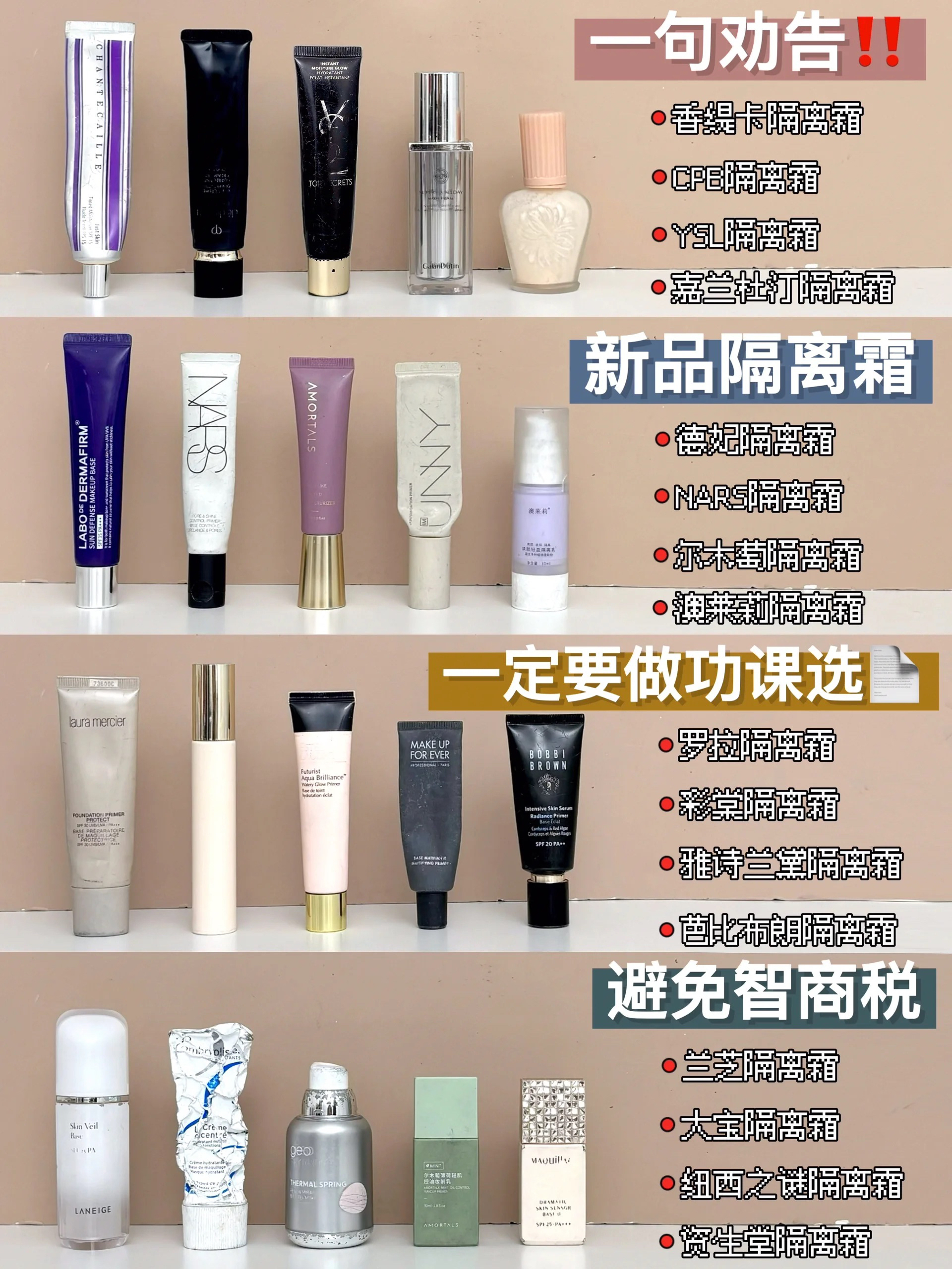 果然!做过功课买的隔离霜就是不一样! 这几款隔离霜都挺火的,用下来确实很好用! 简单给你们做了个总结,做个参考吧! 🧡卡兰度隔离 ~提亮效果很爱 颜色很自然 🧡Cpb隔离 ~伪素颜感 轻薄服帖 🧡雅诗兰黛隔离 ~用来保湿 干皮可以入 🧡彩棠妆前乳 ~价格不贵 很滋润保湿 🧡香缇卡隔离 ~很像粉底液 遮瑕力可以 🧡兰芝隔离 ~有防晒值 均匀肤色效果