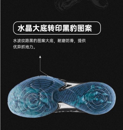 鞋身主体部分采用了黑色作为球鞋的底色,在这双球鞋的鞋面和中底多处,安踏都加入了银色进行点缀。这种黑底银色纹路的配色设计,将黑豹冷艳高贵的气质以及战场上刀枪不入的超强战斗力表现得淋漓尽致