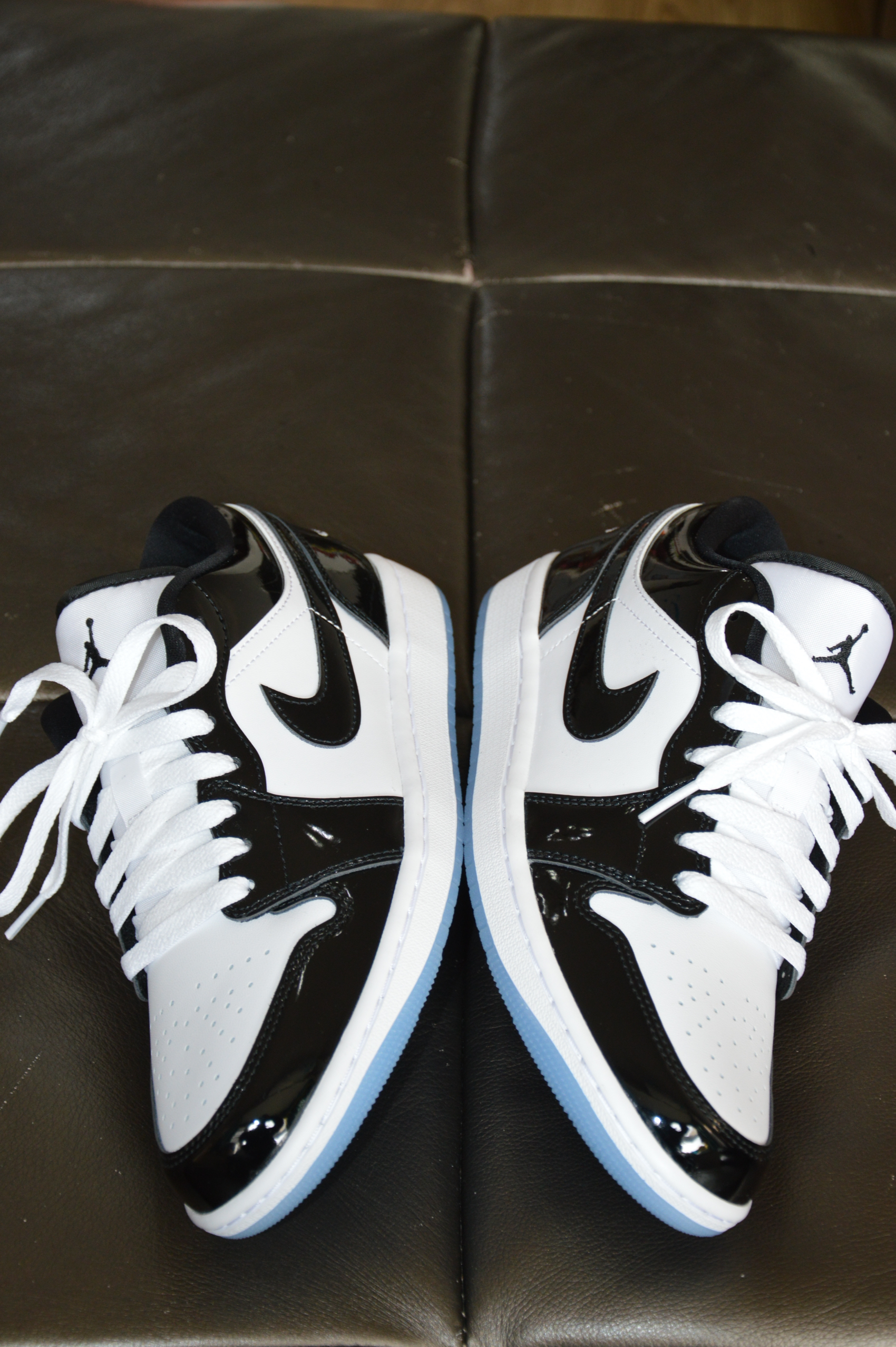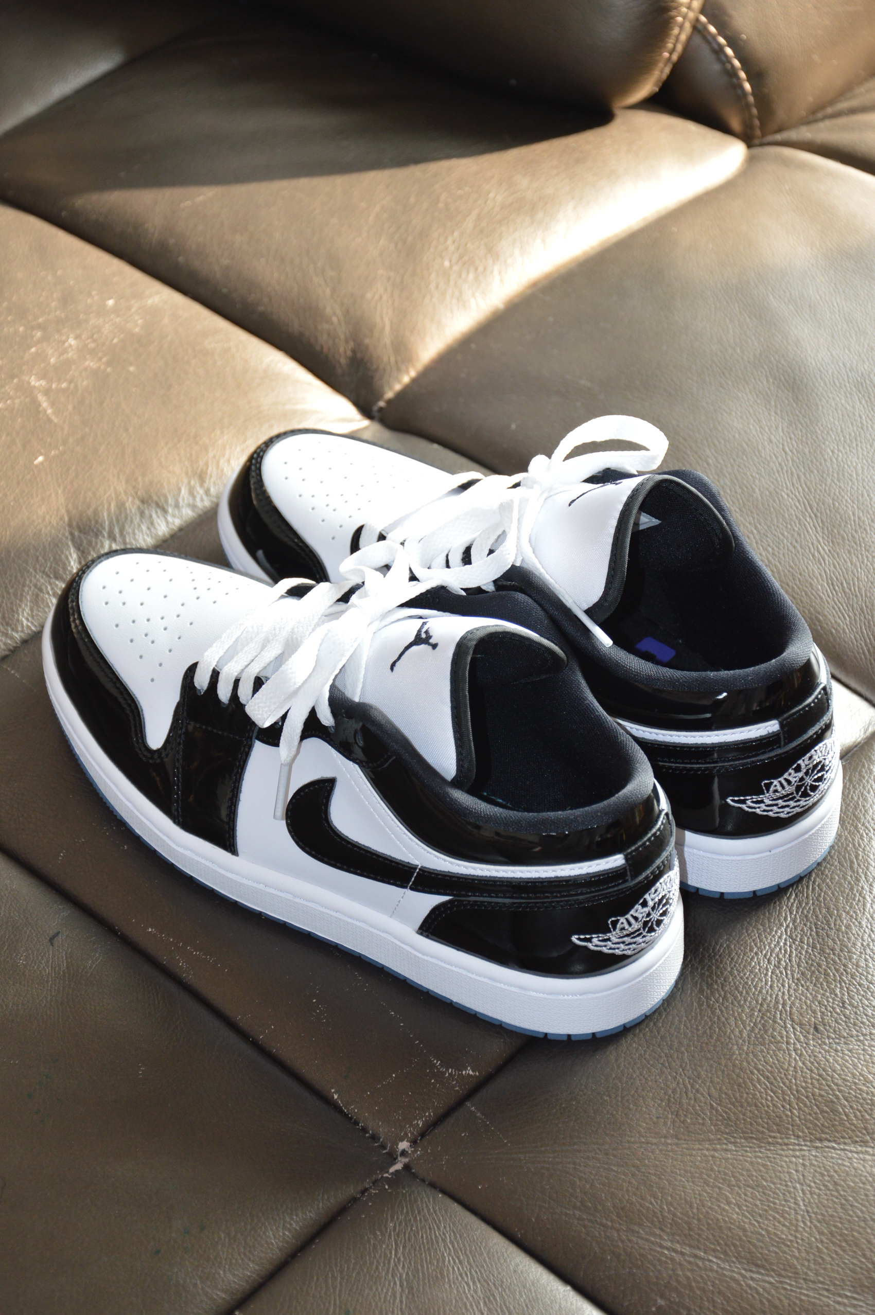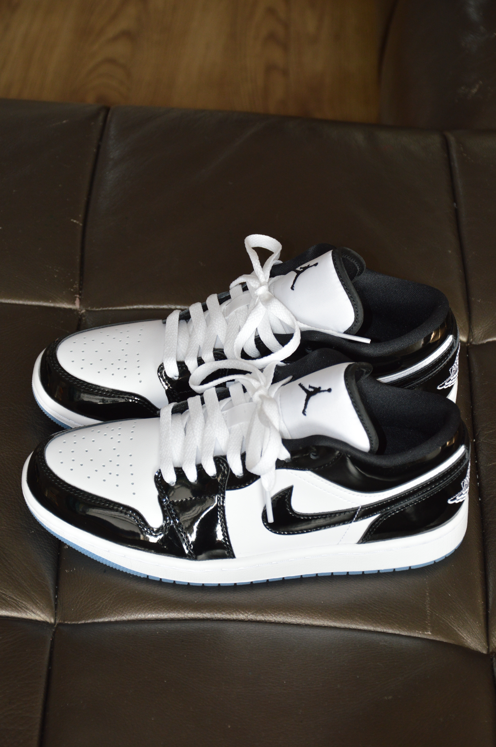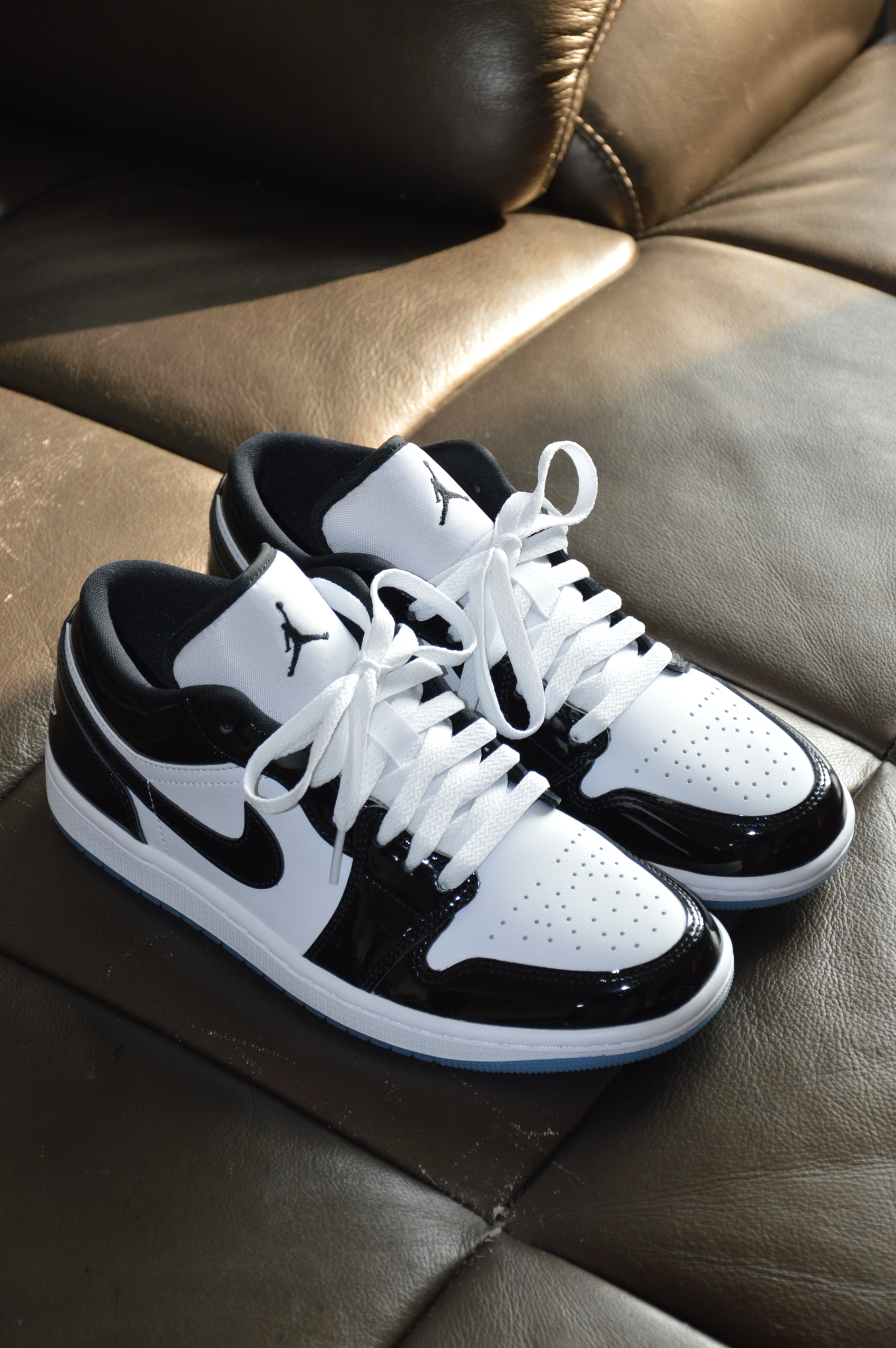 ▶这双AJ 1 Low的颜值给我眼前一亮,体会了一下一见钟情的赶脚! ▶白色牛皮革材质+能印出人影的亮光漆皮+水晶大底,不仅百搭还很炫!颜值在线的同时材质用料这块没得挑剔! 黑色内衬和光面皮革让这双鞋耐脏的同时还好打理! 在千元内这鞋性价比很不错! ▶这双鞋尺码标准;