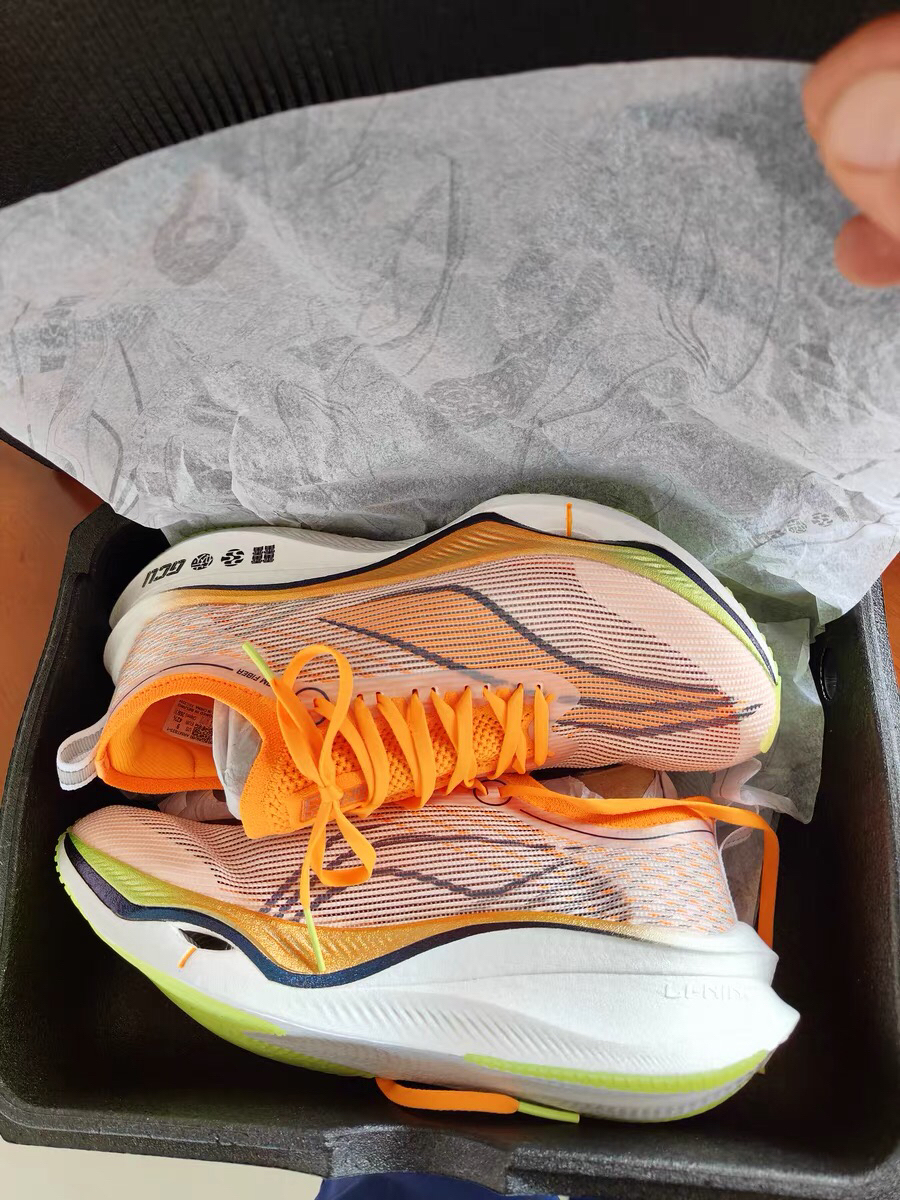 初上脚这双鞋给我的感受是韧弹的,䨻材料也是一如即往的舒适的✅ 🌟全掌䨻材质,提供舒适脚感。 🌟全掌碳板提供了很好的推进力 🌟鞋面采用䨻丝,在确保轻量化的同时提升了透气性和包裹性。 🌟外底采用李宁当家的GCU科技,防滑耐磨。 🌟前掌弜科技提升回弹,让奔跑的滚动性更好 总结,这是一双为精英跑者提供的马拉松竞速鞋,轻量化的同时有激进的推进力和良好的包裹性,冲冲冲!🥇