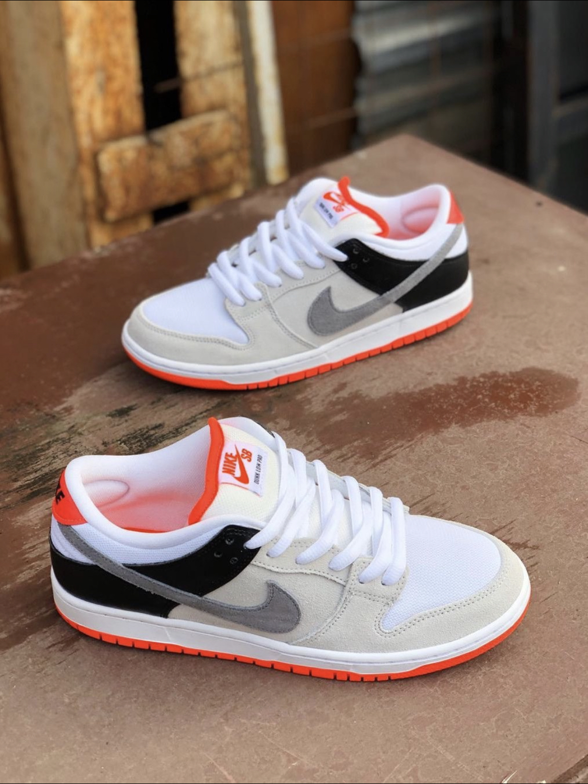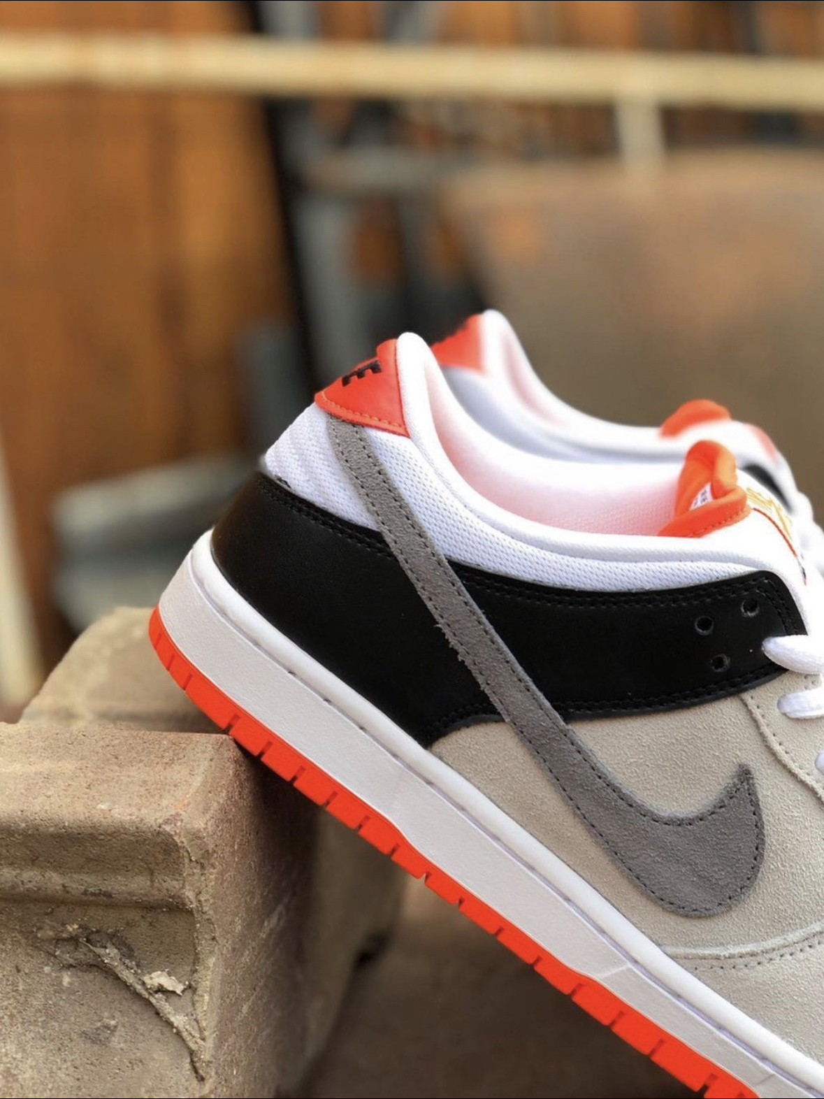#双12种草大会 aNike 以 Air Max 90 “lnfrared” 为灵感打造的 NikeDunk SB,这双鞋以简洁的黑、白、灰三色为鞋身基底,鞋舌、后跟及中底荧光橙色点缀,整体构色风格简洁亮眼,鞋身采用白色网布、灰色 麂皮和黑色皮革拼接打造,带来丰富的层次感。 上脚也是十分好看的。