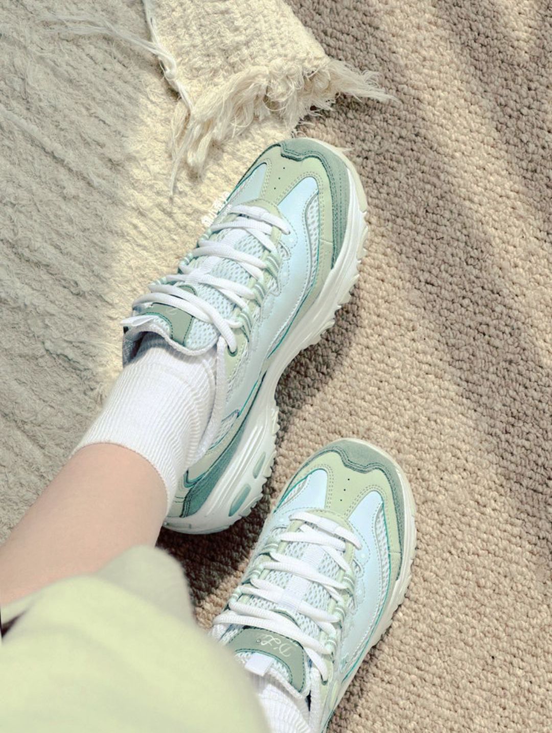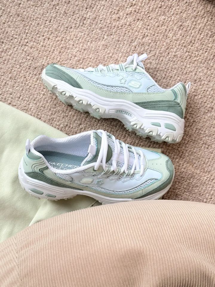 本篇笔记关联了Skechers/斯凯奇 D'Lites 1.0 奶茶熊 熊猫鞋 老爹鞋 闪穿鞋 厚底增高复古缓震百搭 女款/薄荷绿等商品,为用户提供真实的使用体验和购买参考。