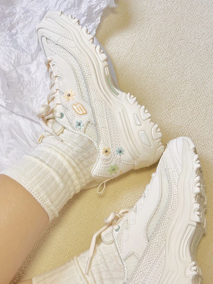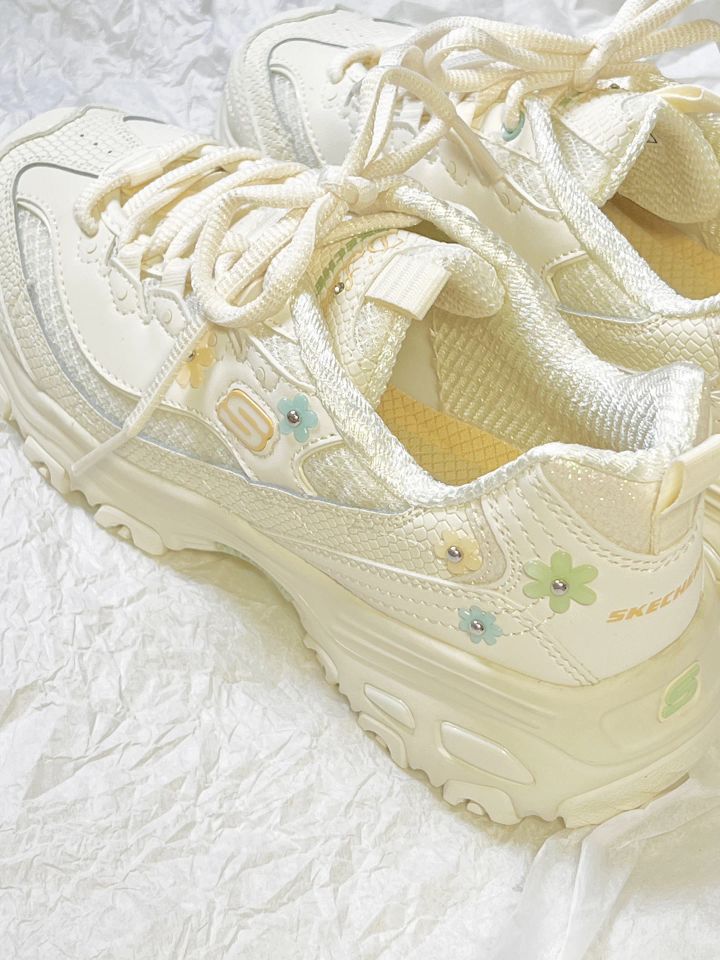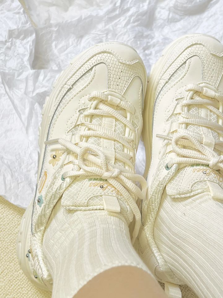 奶油色🌼老爹鞋好好看!宝子们 属于我们矮子乐的立体小花花鞋子,踩上显高还舒服~ 加上奶油色系🧁奶里奶气的! 很难不爱啊!