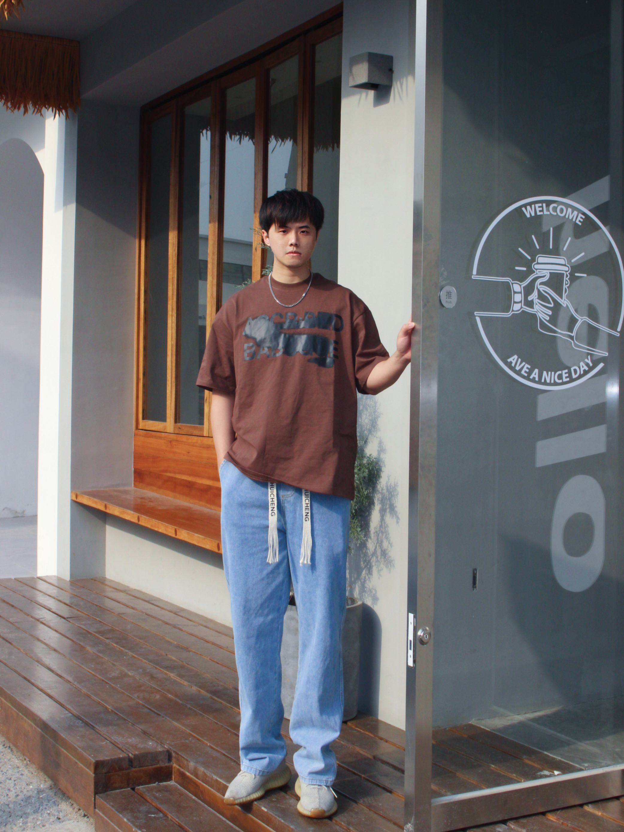 👋Hi,这里是闪电歪⚡️ 今天要给大家带来的是一套复古风穿搭 棕色真的是复古的风穿搭的主旋律🎵 所以上衣是一件BABUGGE的棕色的涂鸦印花短袖,✨亮点是印花有曲线的划痕,非常有个性,裤子是绘承的直筒水洗牛仔裤,它真的和所有美式复古上衣都非常搭配,再穿上一双椰子350,立刻浓浓的美式复古风就出来啦~