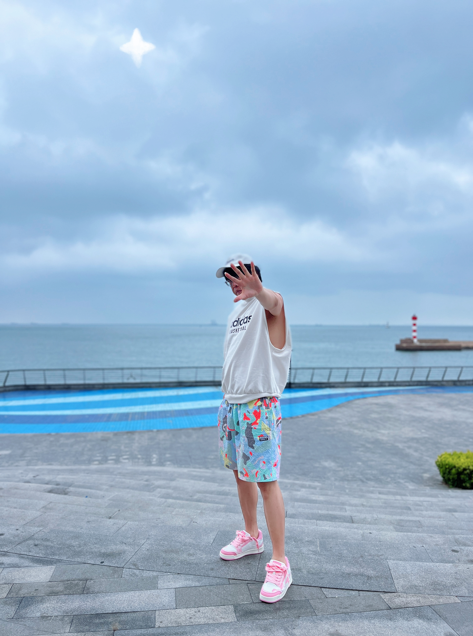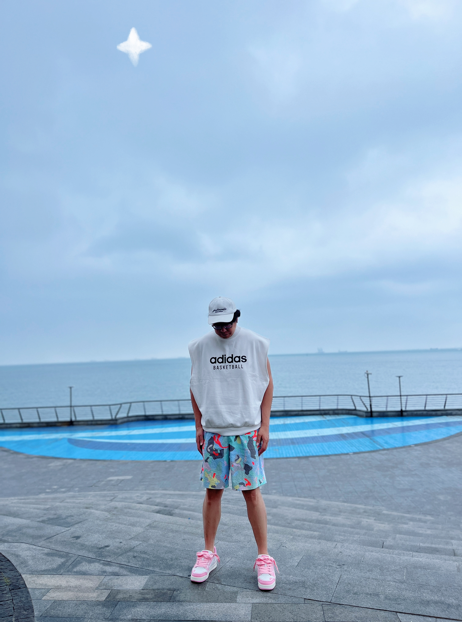 今日穿搭分享 OOTD 上衣 阿迪达斯无袖马甲 裤子 阿迪达斯短裤 鞋子 Goto 粉色星星鞋 谁能不爱