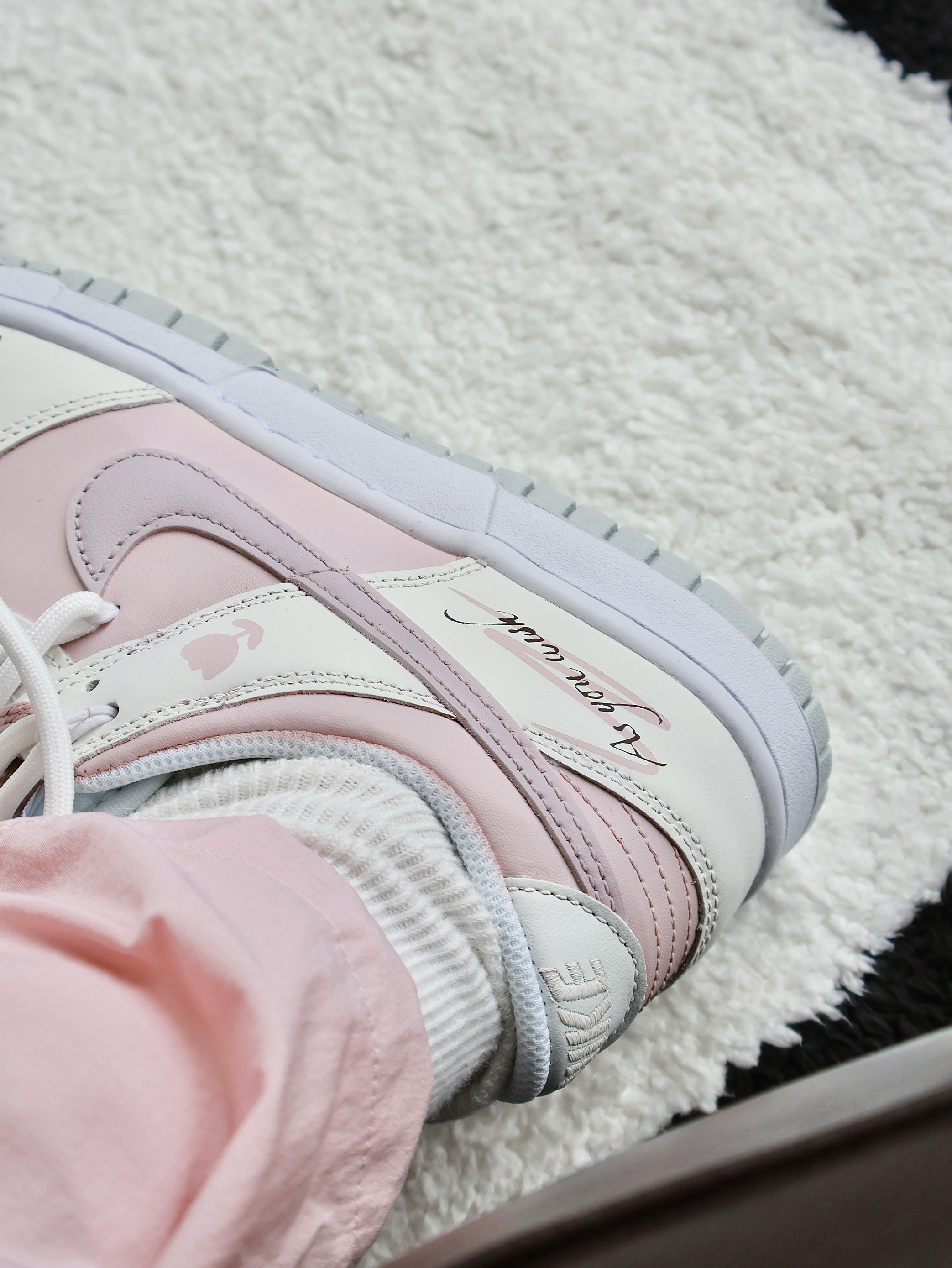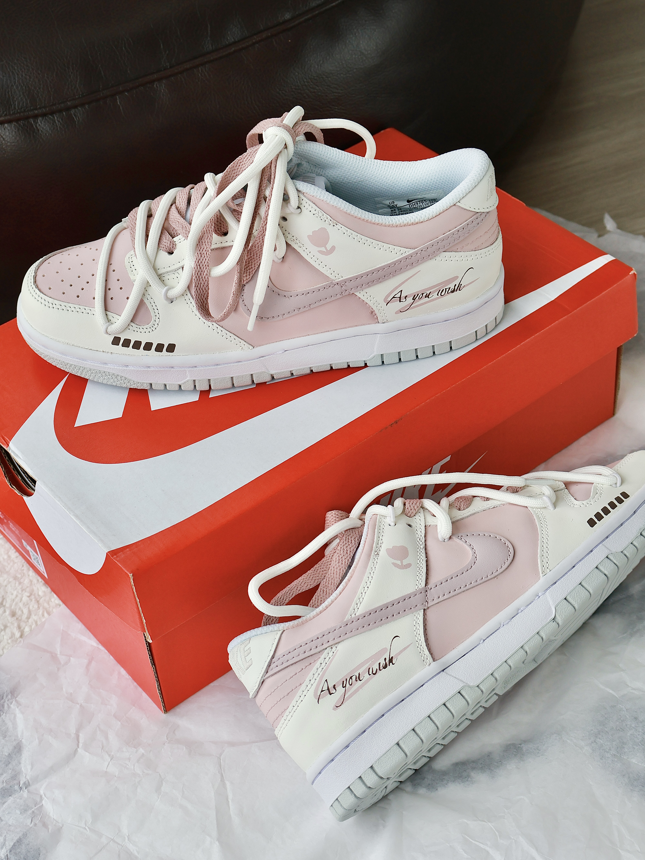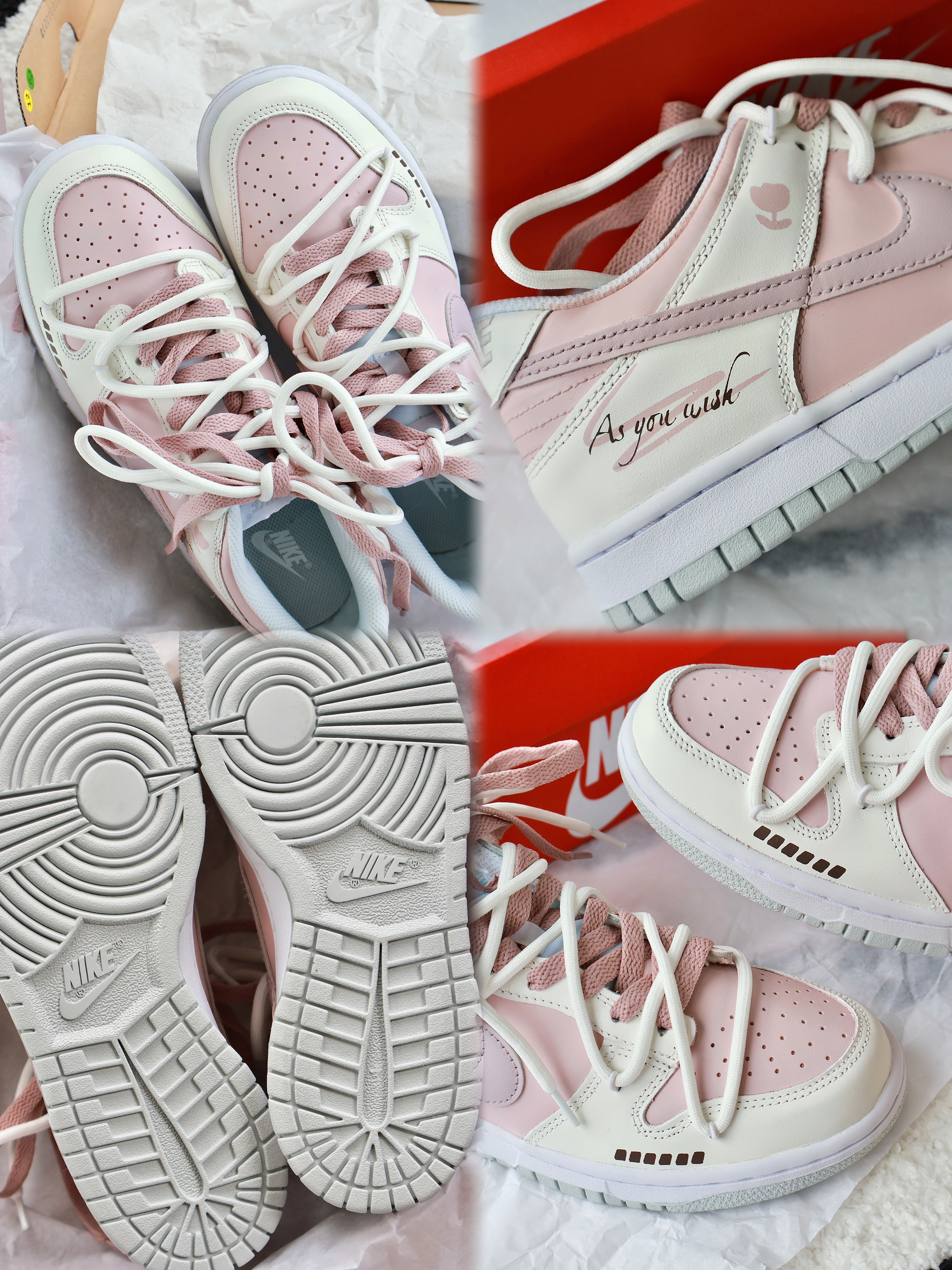 法式奶油质感的dunk~真的会一眼就爱上! 草莓粉色好温柔 💓 鞋面上还有一颗郁金香🌷 这个细节我也很喜欢! 正好七夕快到了 还没想好送什么的 可以考虑看看这个 也是不错的选择!