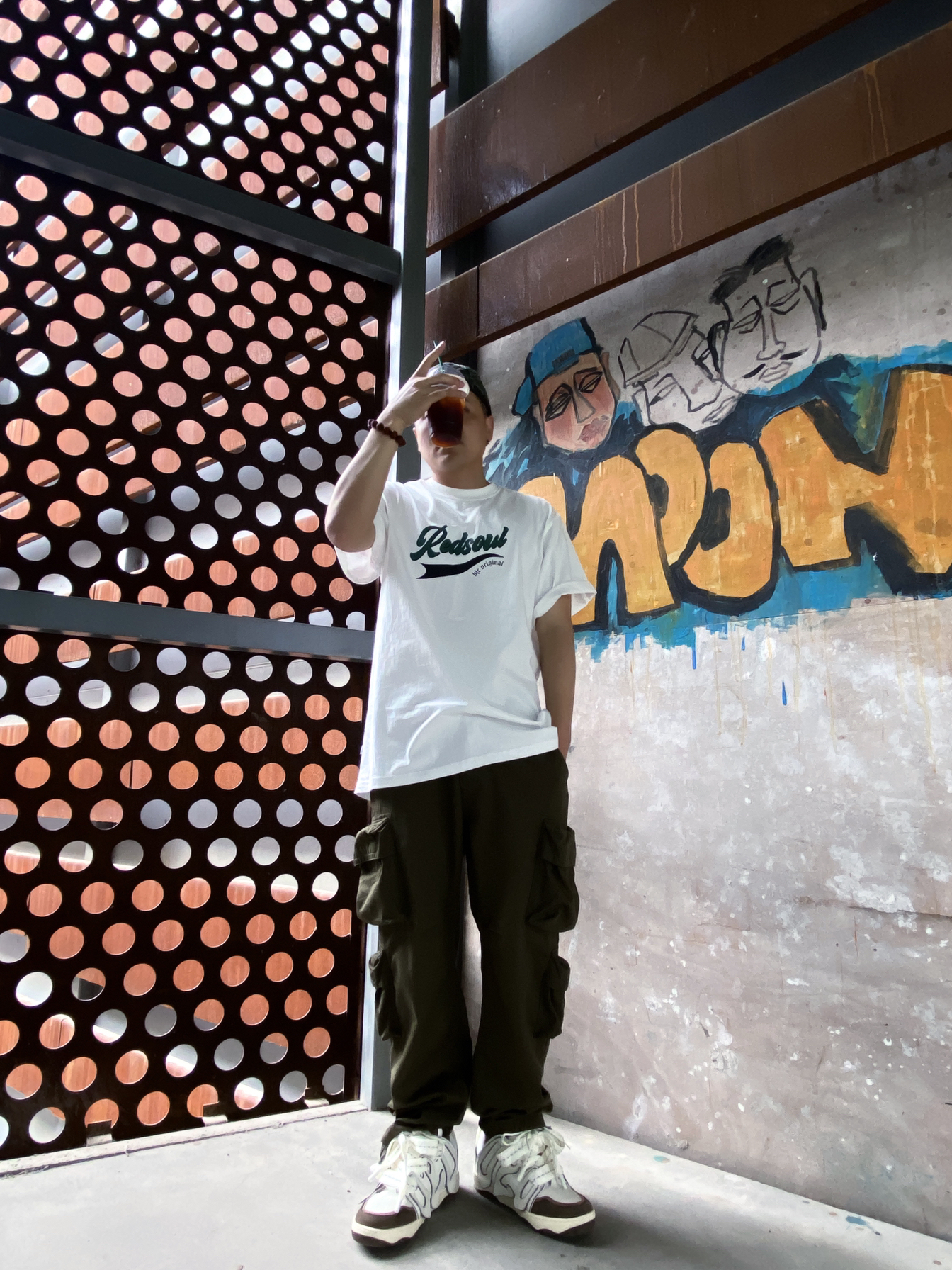 冰美式真是夏天的神水🧊 🧍♂️ 穿搭风格:美式街头 👔 上衣:REDSOUL赤魂 👖 下装:远东 👟 鞋子:oldorder 🎩配饰:Flex fit
