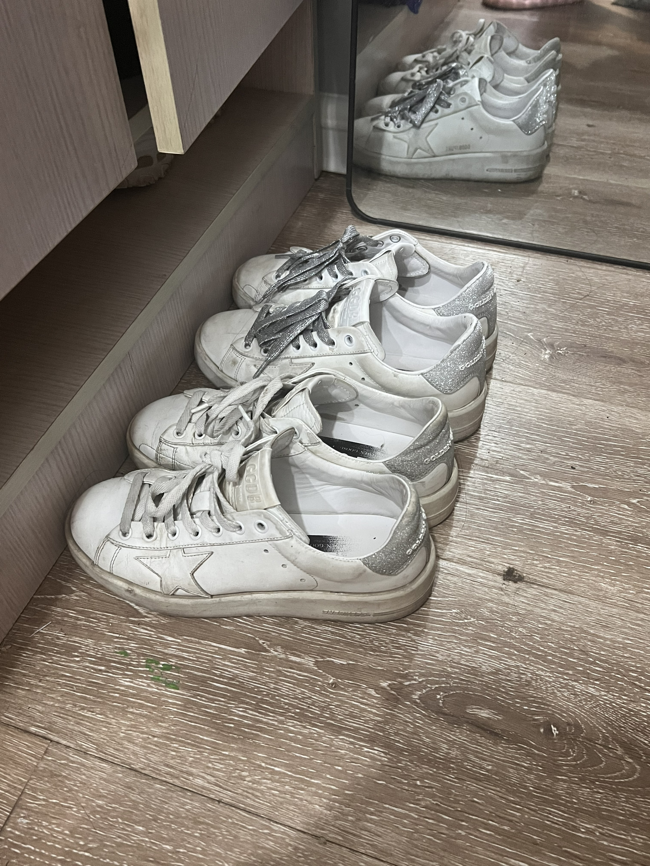 👟球鞋名称:ggdb purestar银尾,ggdb小白鞋银尾 🔍分享理由: 1. 鞋型非常适合国人的宽脚 2. 有3cm内增高,视觉上拉长腿长~ 3. 舒适度非常可!由于适合宽脚,舒适度比亚历山大的小白鞋更舒服! 4. 好打理,湿巾一擦即净 🤔整体感受: 真的很值,所以买了两双换着穿哈哈哈哈哈哈哈哈 正码正拍,姐妹们可以放心冲哈!