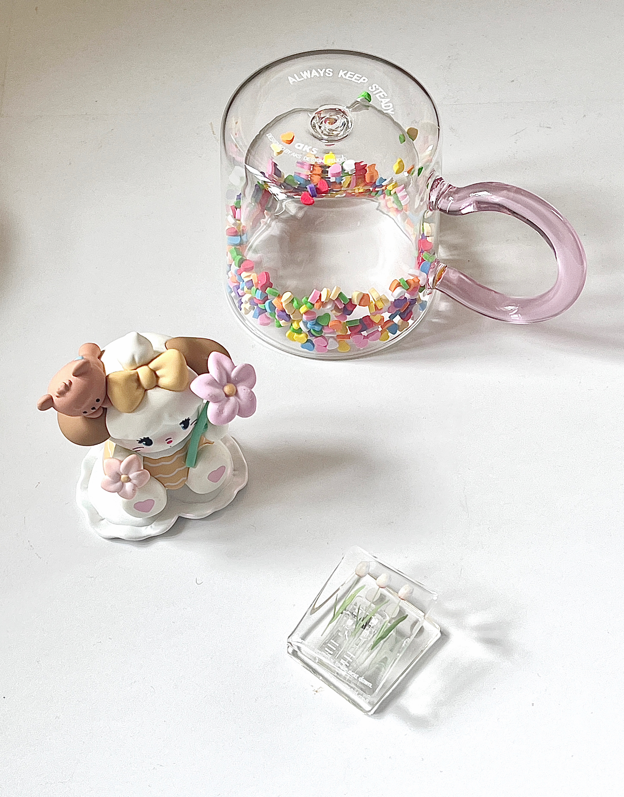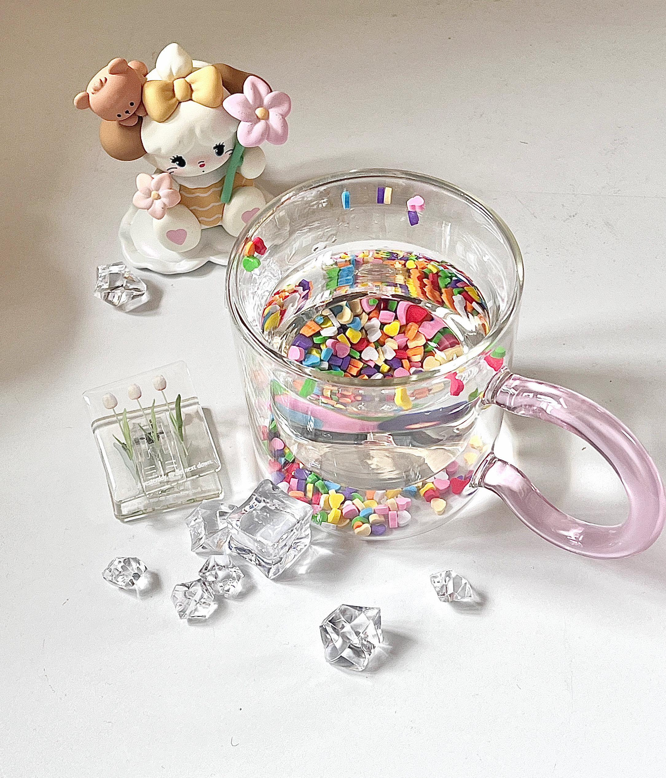 这么可爱的杯子! 五彩斑媡的配色太好看啦 玻璃杯装水质感超级好