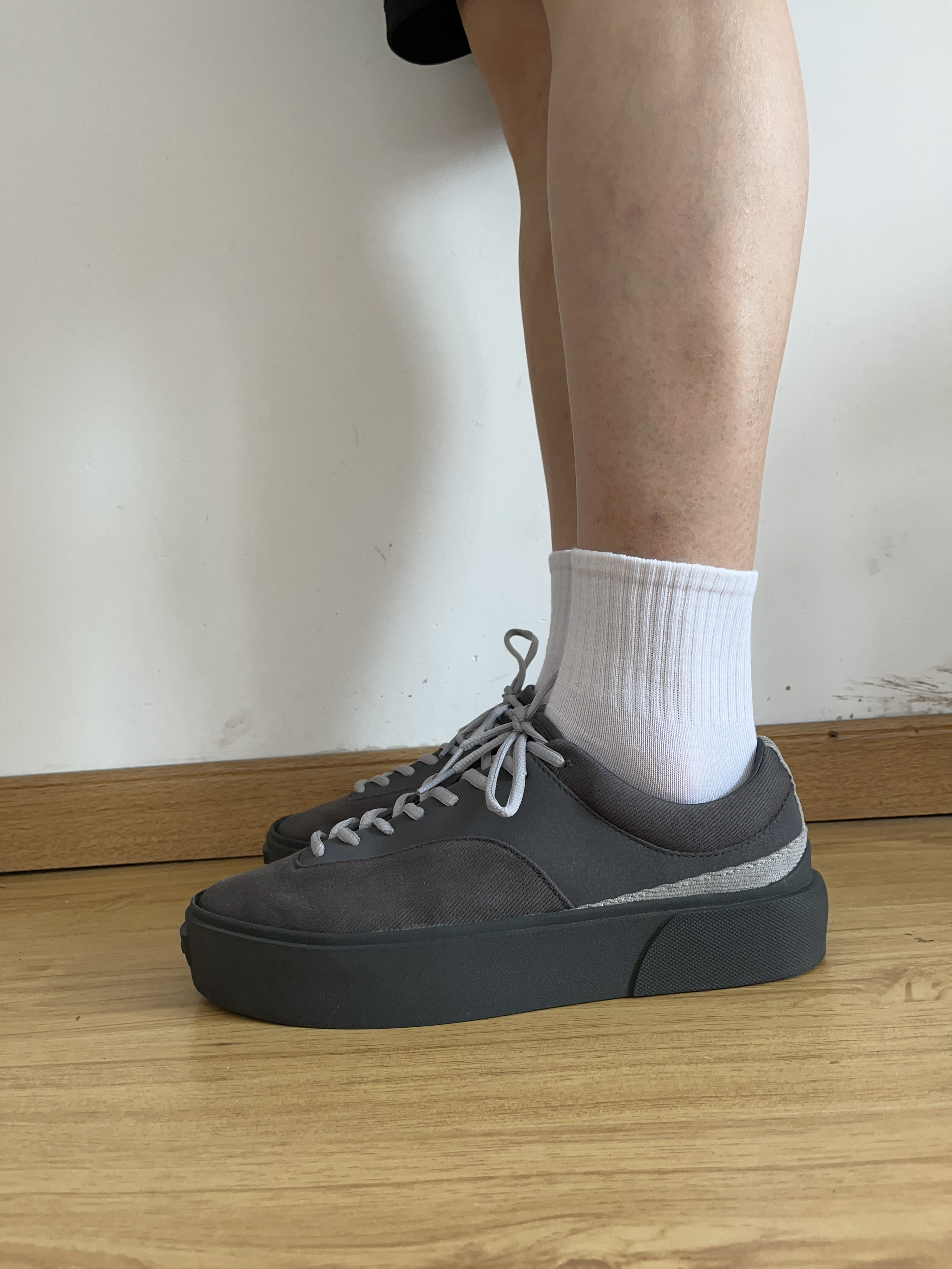 👟球鞋名称:草牌板鞋 🔍设计亮点:增高、脚感柔软、不累脚 ⛹️实战感受(缓震/包裹/抓地力):满足日常通勤,搭配性十足 📃总结评价: