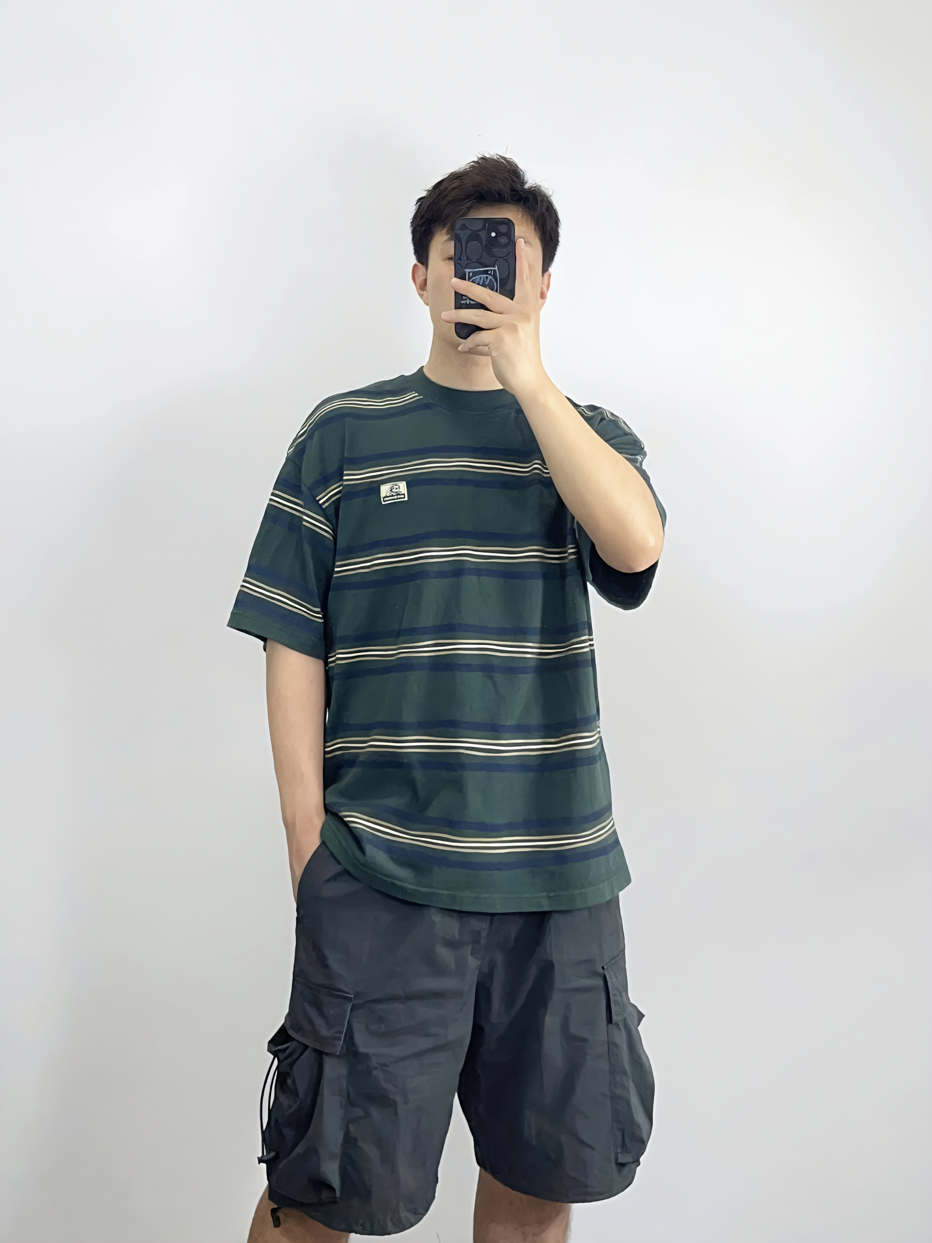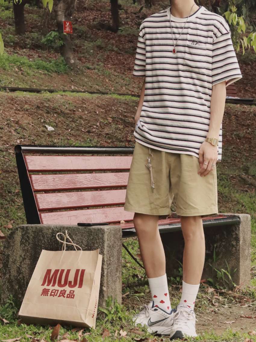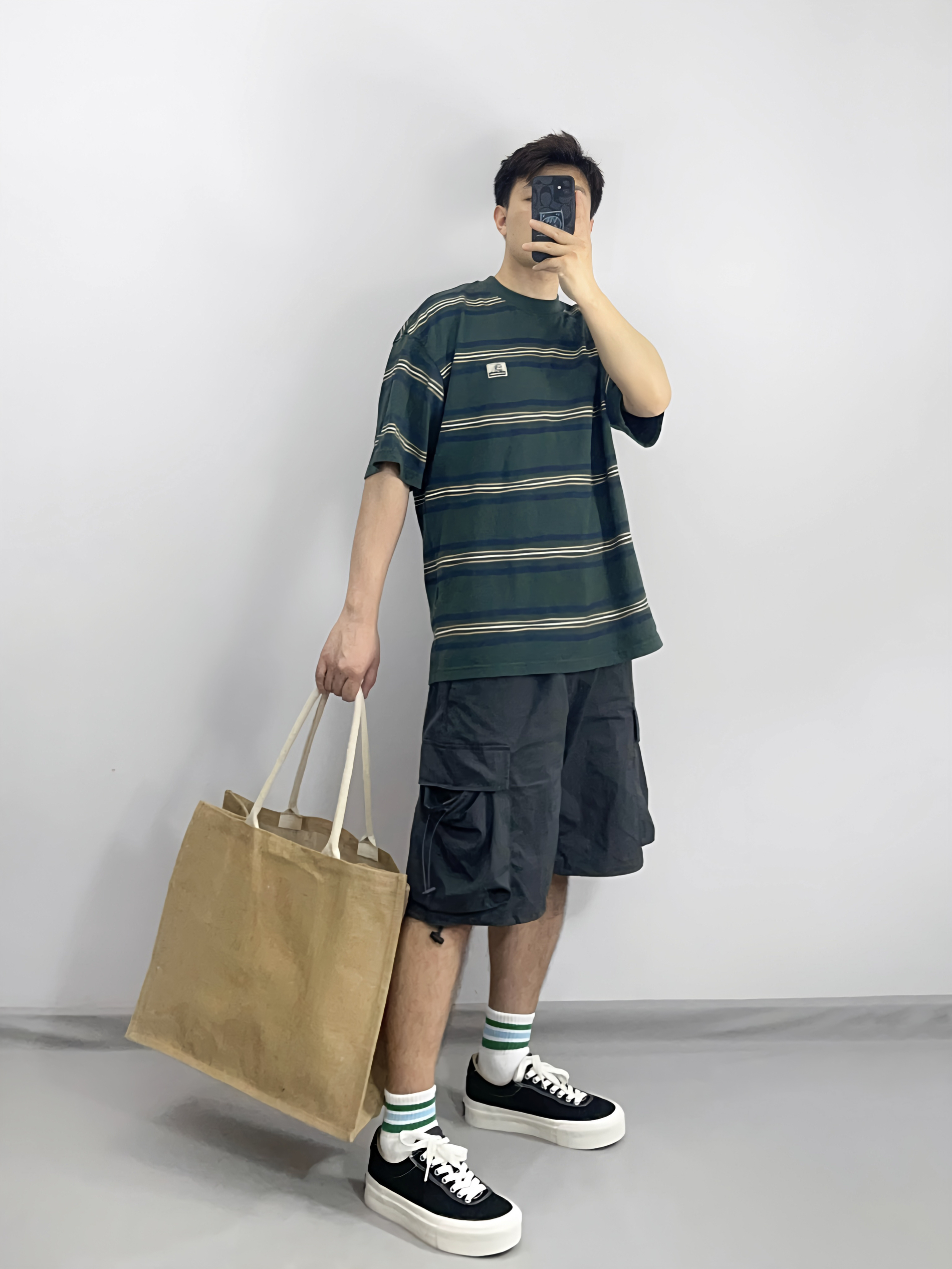 日系条纹短袖搭配工装短裤 给人一种休闲轻松自在感觉 同为宽松版型穿着体验更佳 - 170cm/67kg 分享男生的日常穿搭OOTD -