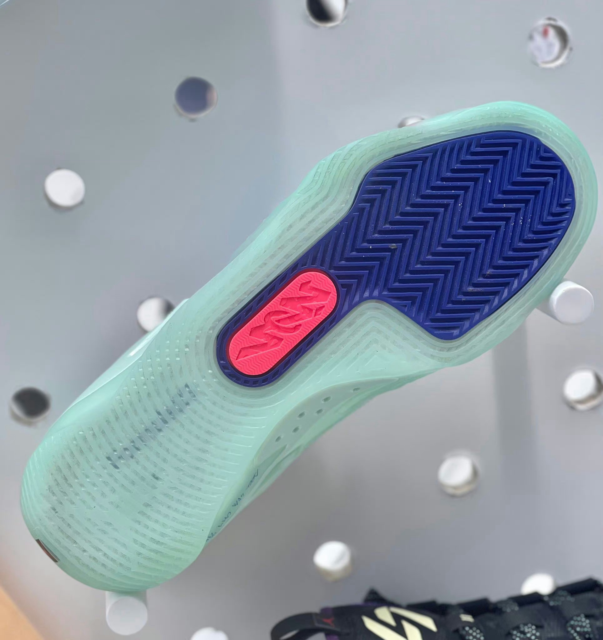 锡安的运动表现在NBA里独树一帜,灵活的同时充斥着暴力美学。不同于前两代签名鞋,Jordan Zion 3的设计更加轻盈灵动。新一代签名鞋运用了全新的中底结构以适应锡安高爆发打法带来的巨大冲击力。嵌入式中底搭载了Formula 23高性能泡绵,前掌部位则采用了Zoom Air气垫单元,嵌入式中底也进一步降低了缓震结构的厚度,以加强场地感。这种设计既能为球员提供快速的缓冲反馈,又能帮助他们在运动中更好地控制身体平衡。外底鱼骨纹路的抓地设计有助于快速移动和控制,而锡安签名系列中标志性的设计语言“Z”字图案则颇具巧思地通过一块凸起的TPU材料得以呈现,同时起到了提升横向控制的作用。