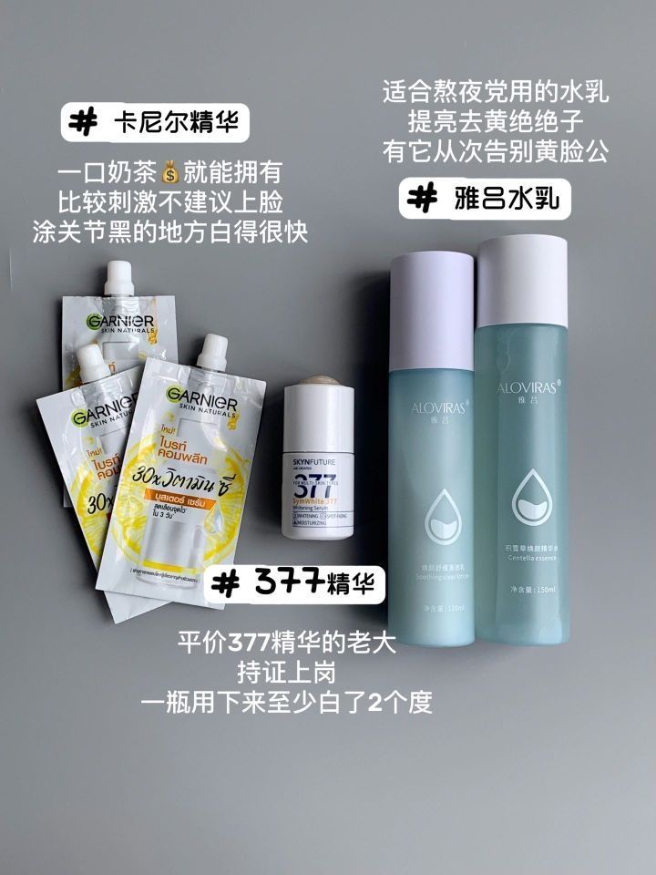 本篇笔记关联了Garnier/卡尼尔 精华液 美白淡化痘印 柠檬亮白、雅吕 积雪草提亮补水控油护肤套装 精华水150ML+乳液120ML等商品,为用户提供真实的使用体验和购买参考。