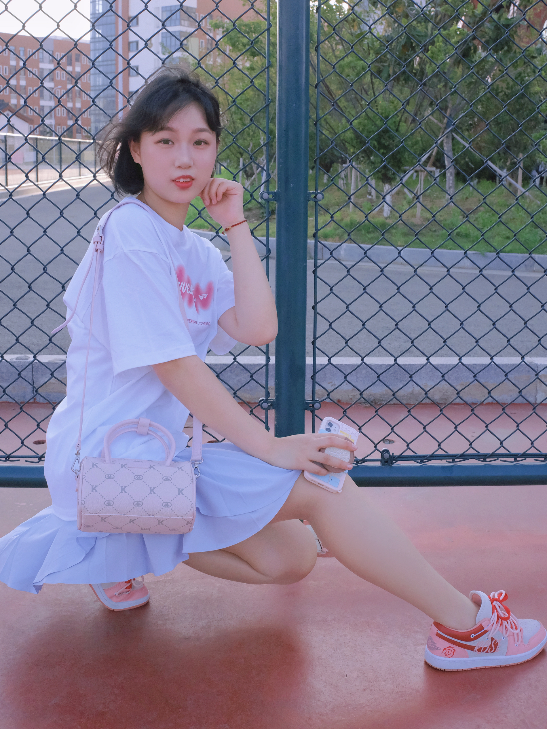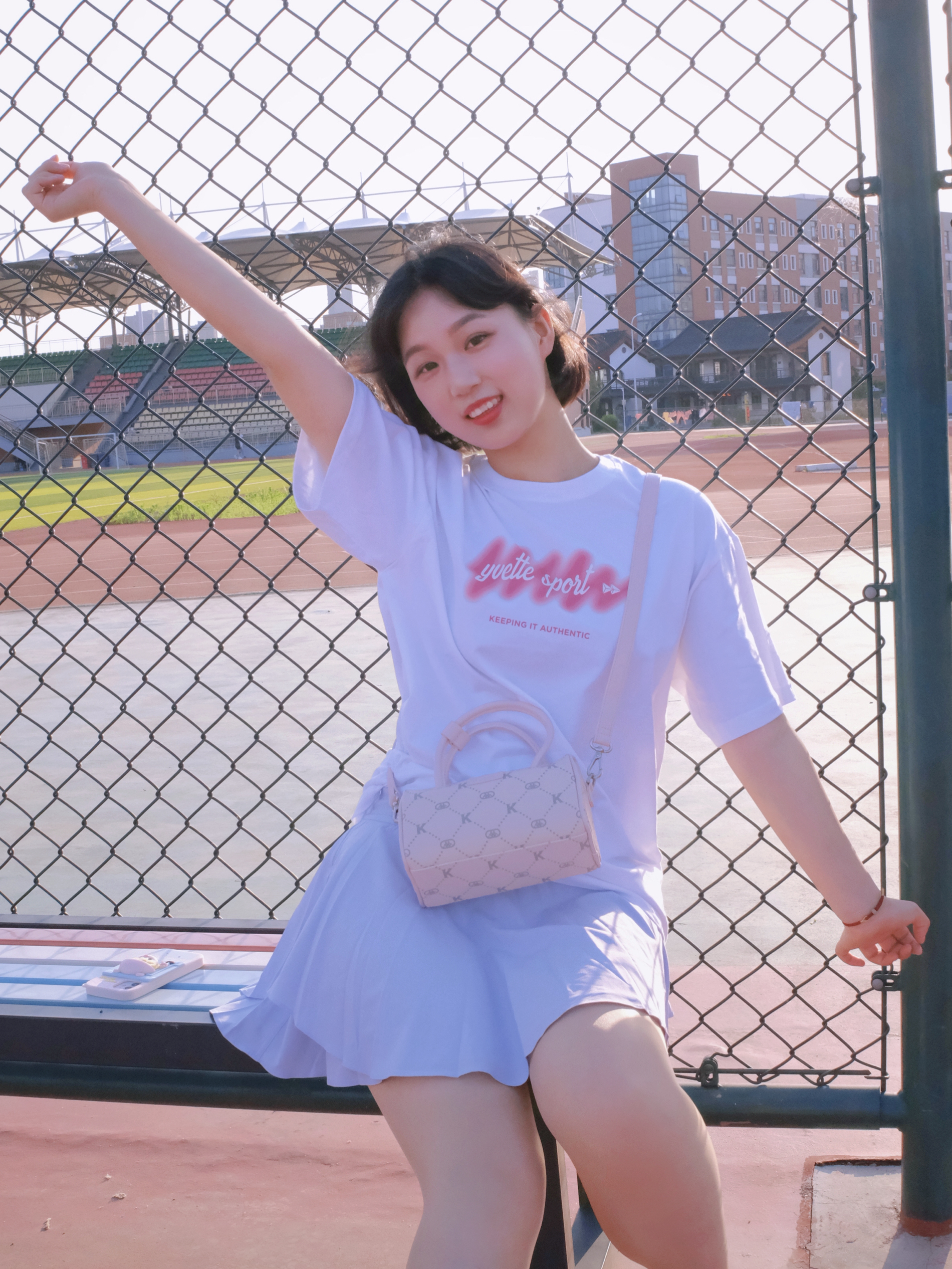 ☁️“那些看似不起波澜的日复一日, 会在某天让你看到坚持的意义。” 学生党夏日春游怎么穿? 一身清爽的浅色系是我的首选 凉爽又舒适的休闲风 是我夏季的标配 白T➕网球裙 青春可爱的感觉😊 搭配新入的粉色包包 这款水桶包让我心动很久啦 粉粉嫩嫩的颜色超喜欢 Kappa的浅灰色印花 软皮轻巧的材质 背上很舒服 小水桶也可以放很多东西 手拎或者斜挎都很好看😍 包: Kappa 👔: Yvet...