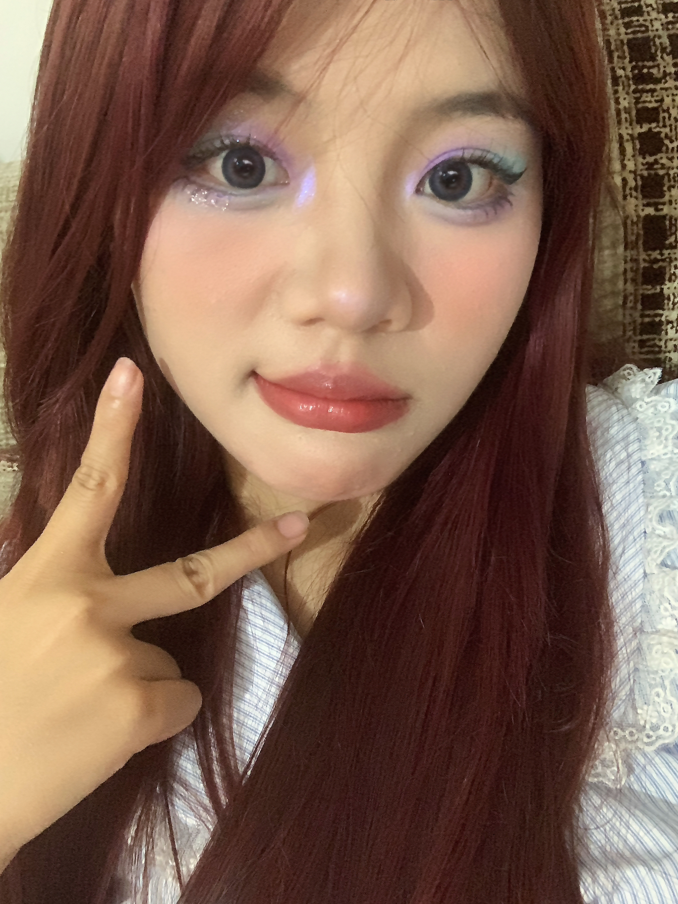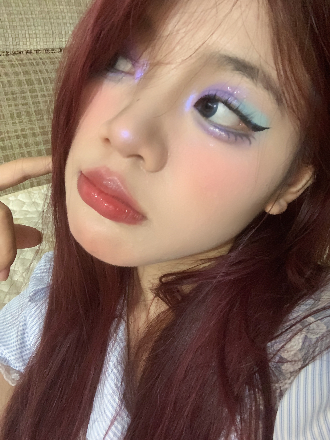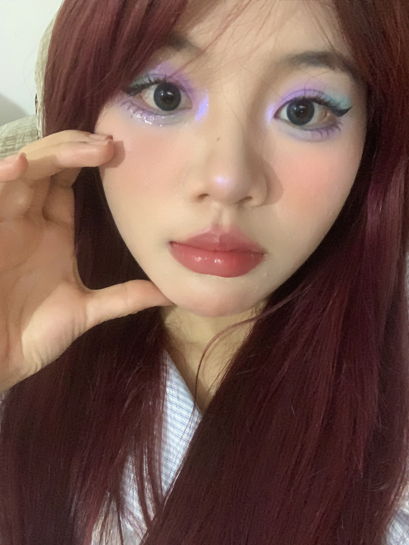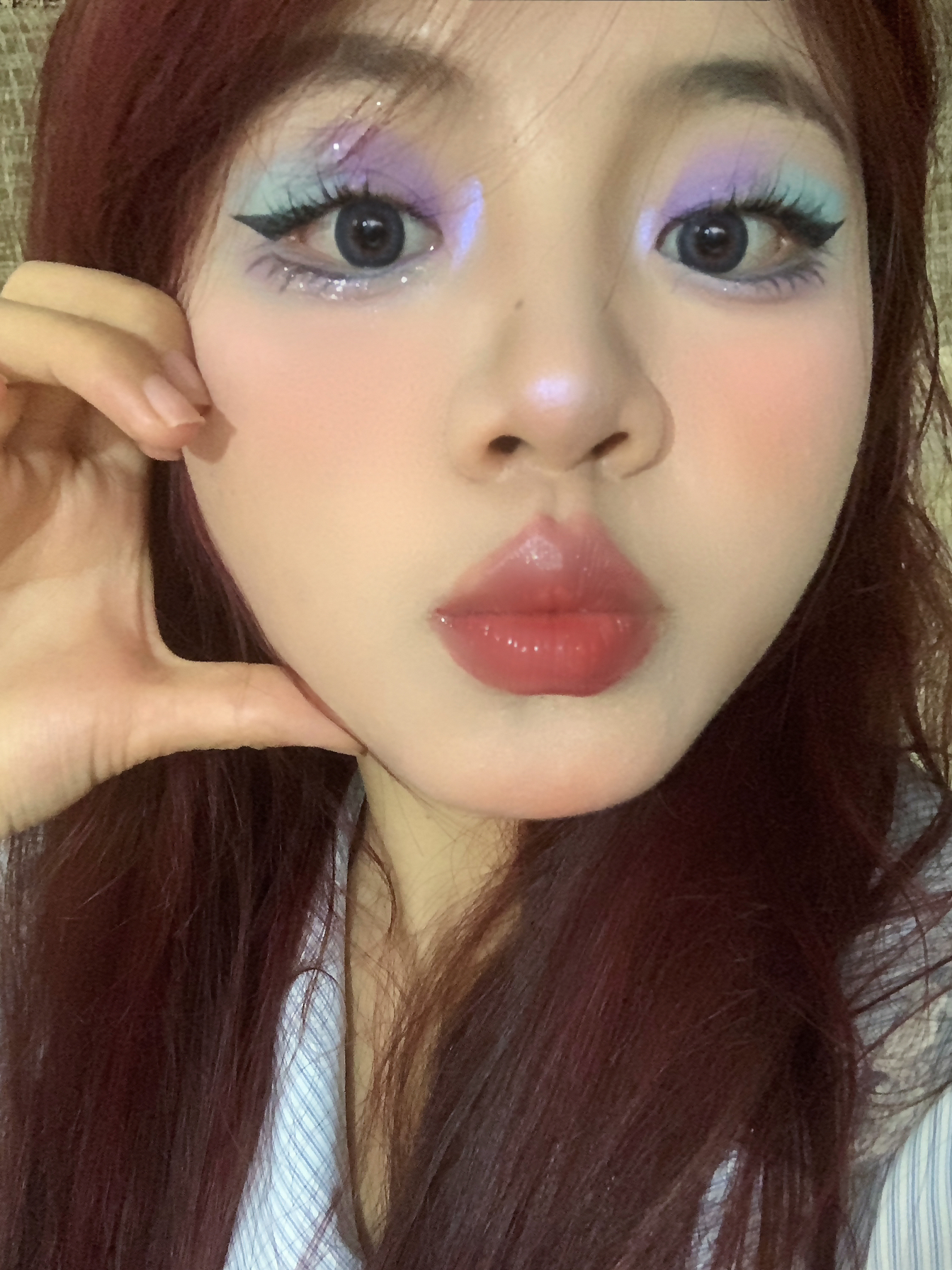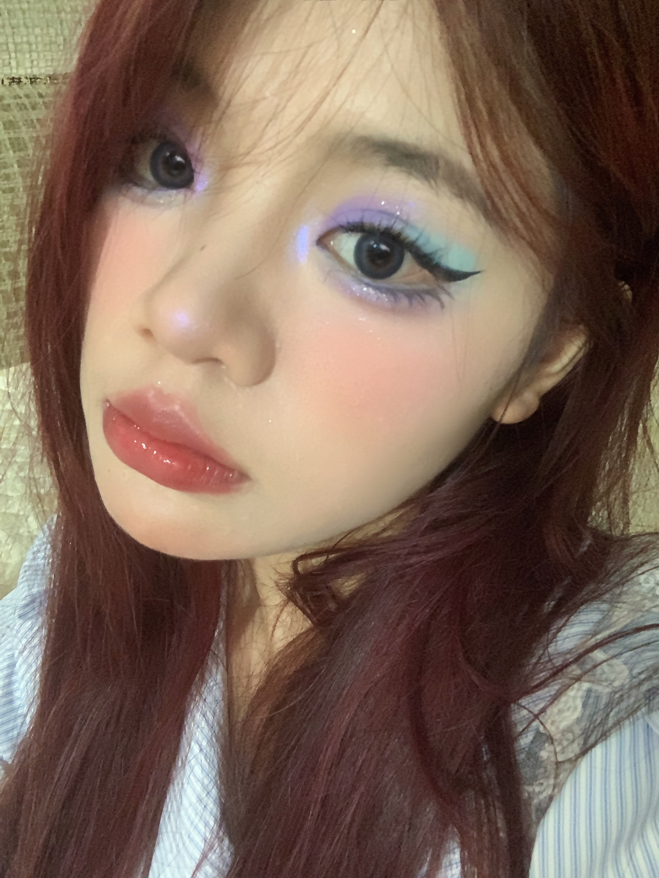 滴解锁🔓夏日薄荷葡萄🍇妆容 🌷用到了一个彩色眼影盘 不得不说彩色眼妆真的很适配夏天 🌷深瞳显得眼睛👀更加有神 🌷口红还是晶莹剔透的唇釉 才是夏天该有的色彩搭配