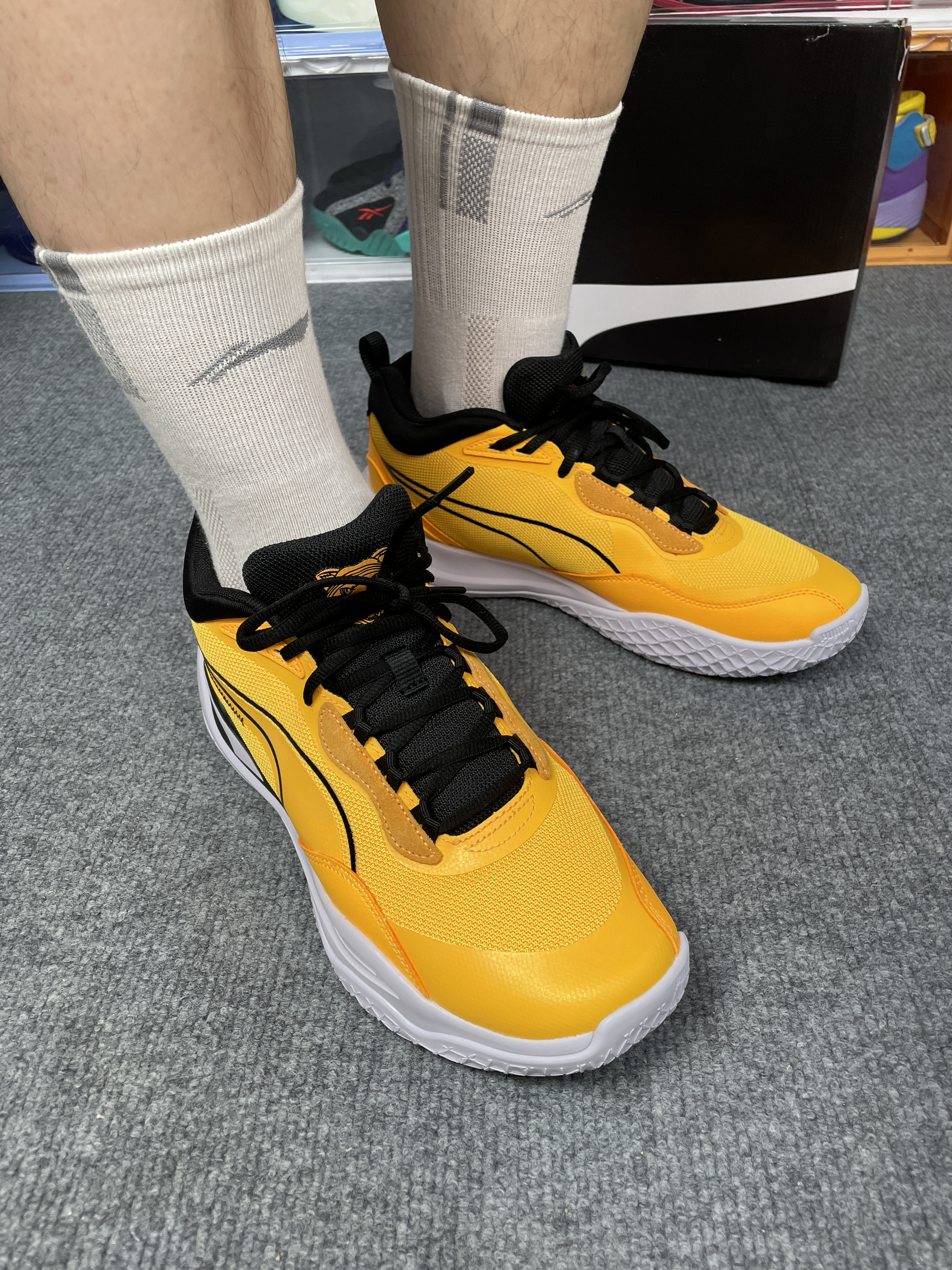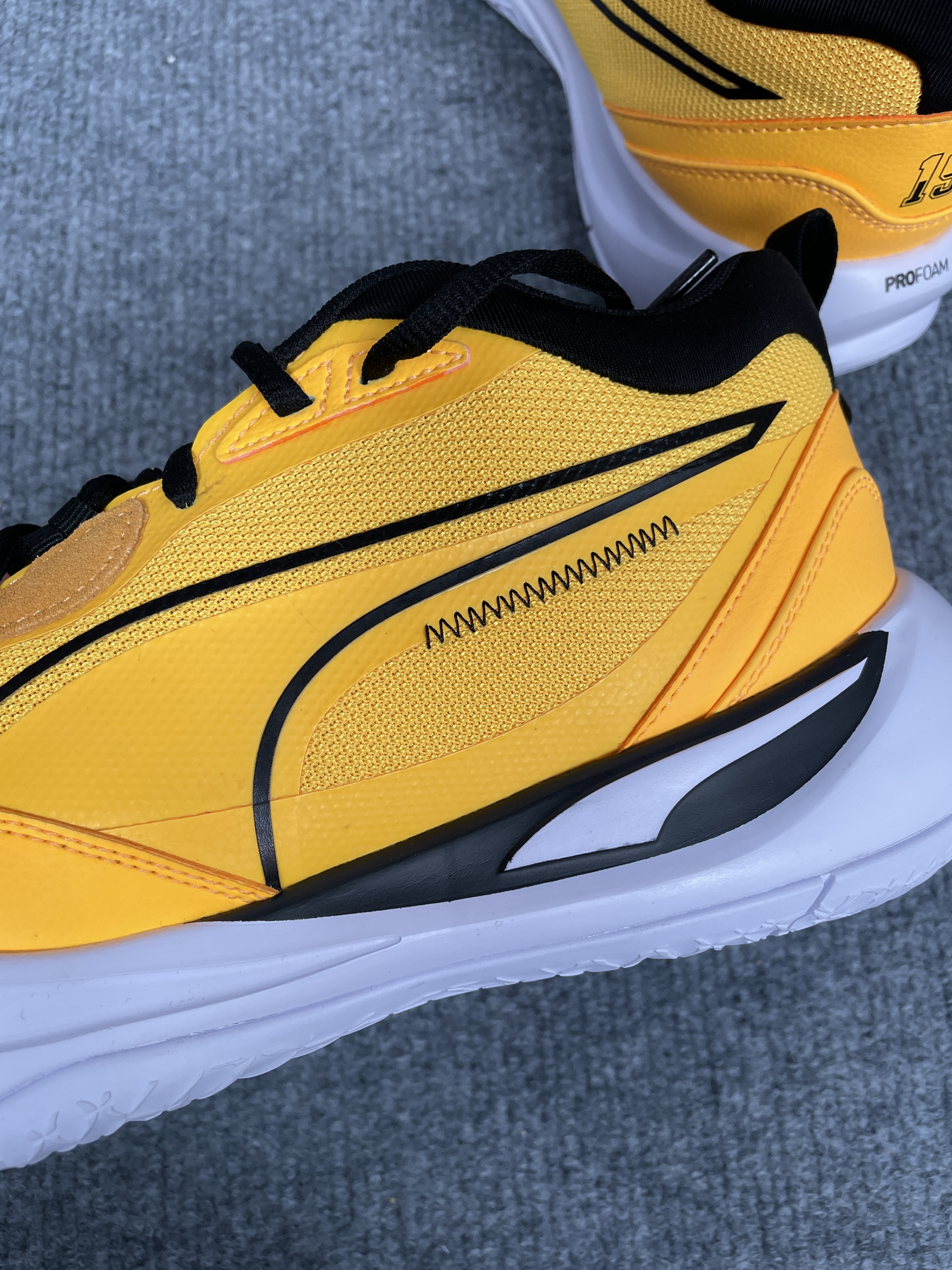 这款puma的篮球鞋也太亮眼了吧 亮黄的配色,穿上它你就是球场上最靓的仔😎 中底是puma当家技术pro foam 韧弹的感觉真的很棒 缓震极限较高,大体重也能穿☺️