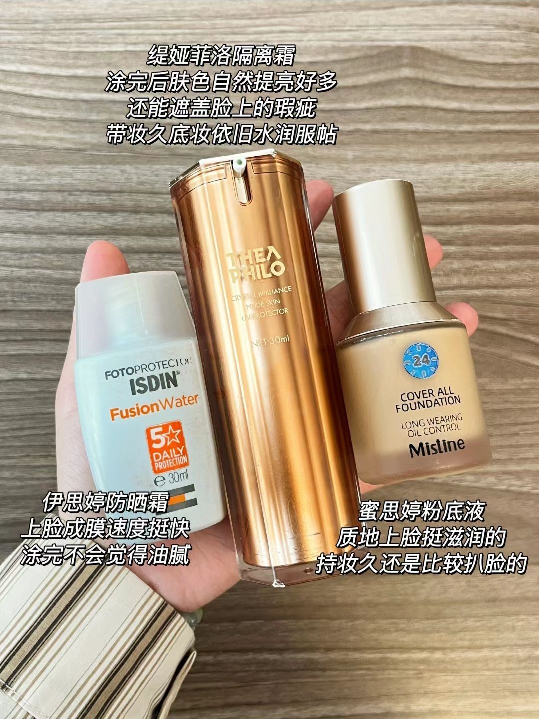 本篇笔记关联了THEA PHILO/缇娅菲洛 晶透裸妆隔离霜 #40 紫色、戈戈舞 丝感薄纱微笑遮瑕定妆粉饼 干皮油皮 9g 602 自然偏白 自然白皙肤色、PRAMY/柏瑞美 多维定妆喷雾 24H持久控油防汗雾面保湿补水 经典版 柔焦雾面 油皮/混油肌肤等商品,为用户提供真实的使用体验和购买参考。