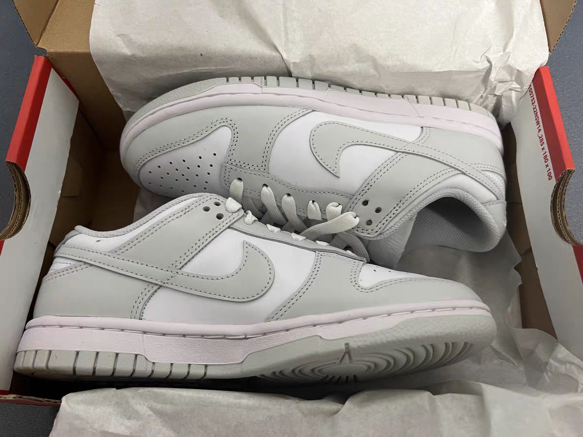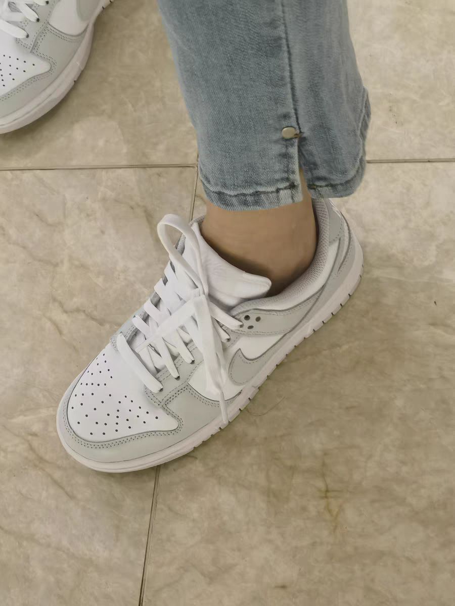 实物绝美!灰白Dunk!又一双仙女必入!灰白 Dunk拿到手了!“photondust实物真的美炸了!很明亮!又是一双绝美女鞋,真的好看!可能稍微稍微有点单调!但是绝对是一双小白鞋不二之选! 细节:鞋带有不明显的细闪,灰是有点偏绿的。