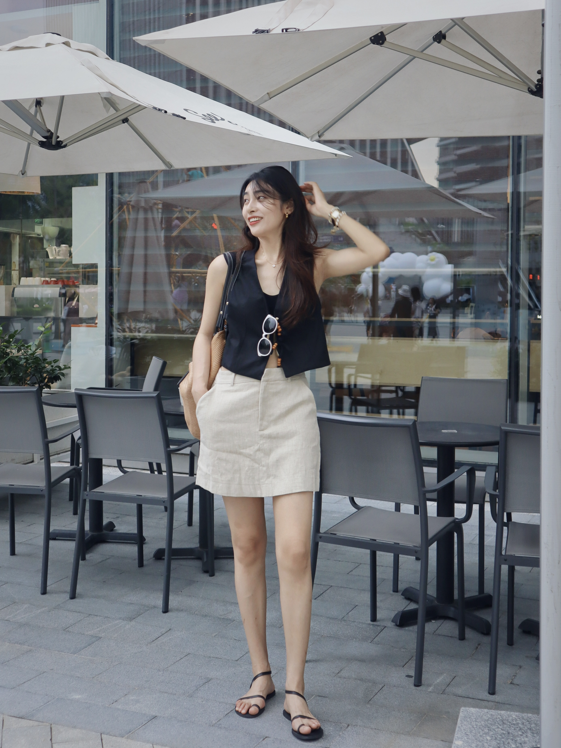 马甲+短裙、清爽活力的好搭档、出门吃个下午茶~