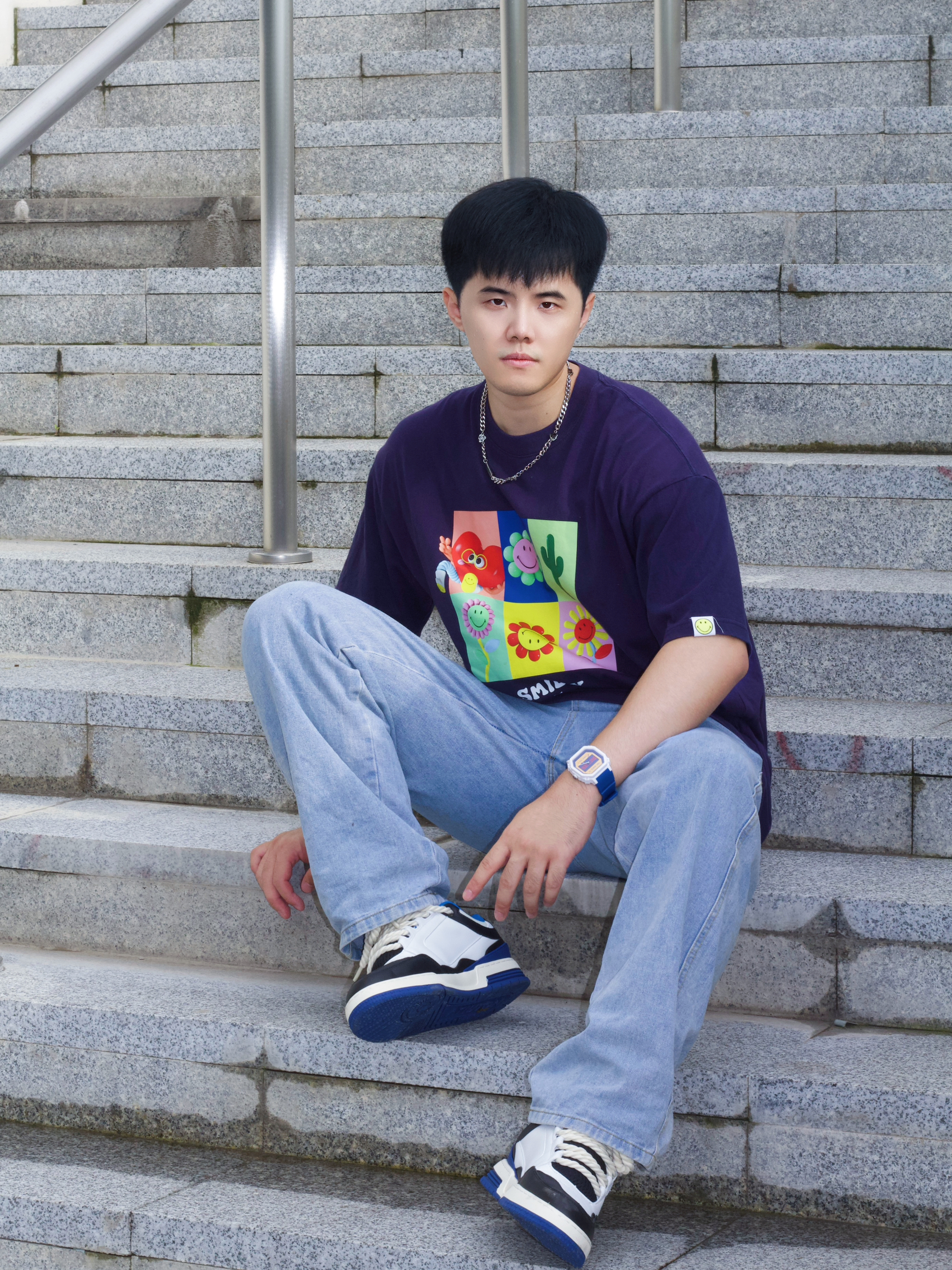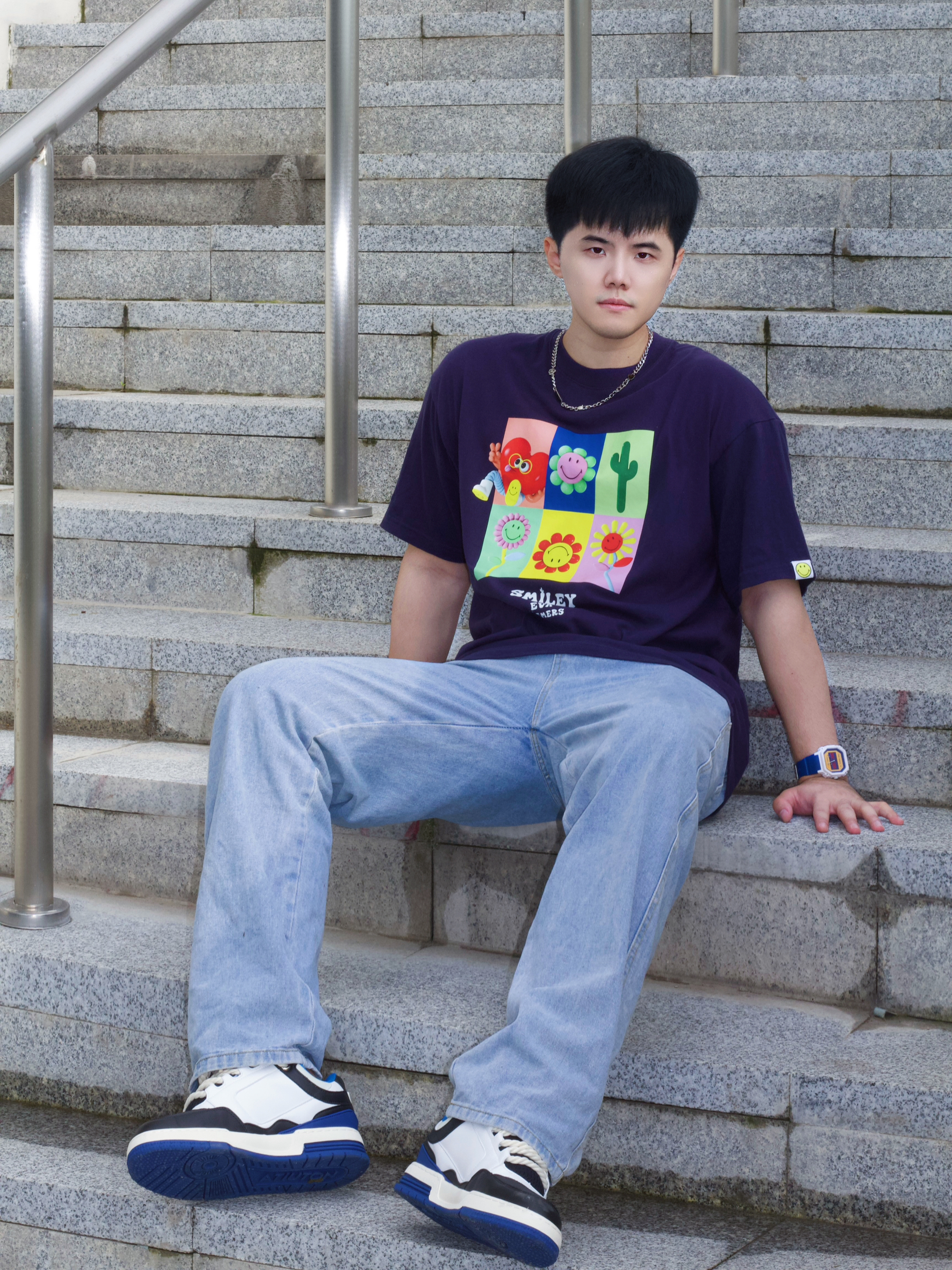 👋Hi,这里是闪电歪⚡️ ⛱️夏天到了,来一套蓝色多巴胺穿搭真的不仅活力满满又好看! 🎽上衣是一件白露同款的圆领短袖,深蓝色非常显白,整件衣服也偏可爱风➕👖浅蓝色复古牛仔裤,宽松而且版型非常正➕👟一双休闲低帮板鞋,黑蓝的配色非常酷炫 ⌚️手表作为穿搭的点睛之笔,我选择了迪克斯小霸王系列手表,整体蓝色还有黄白撞色,颜值上非常加分,上手后会感觉青春感满满!可以说是大男孩必选手表。 👔:SMILEY...
