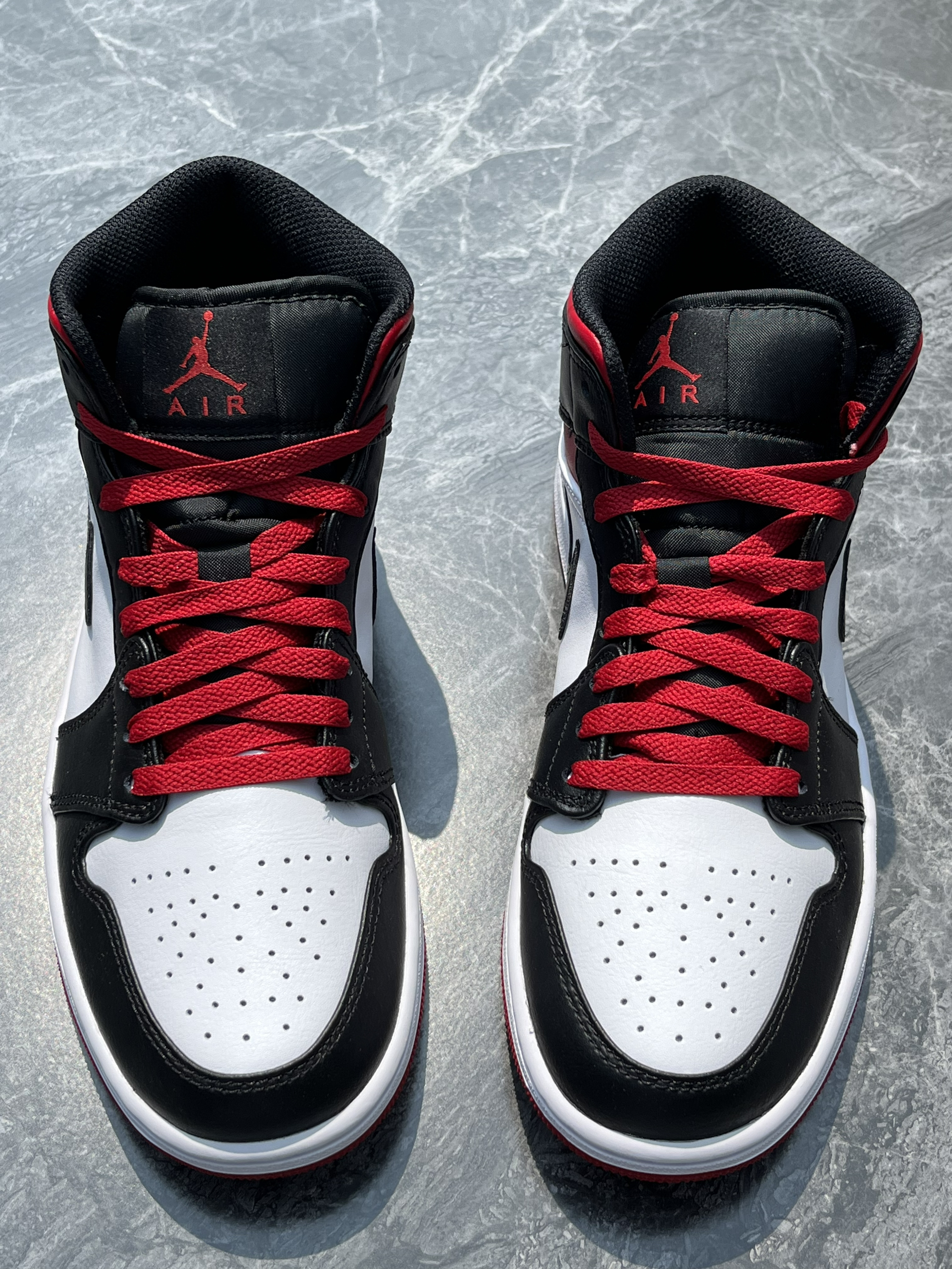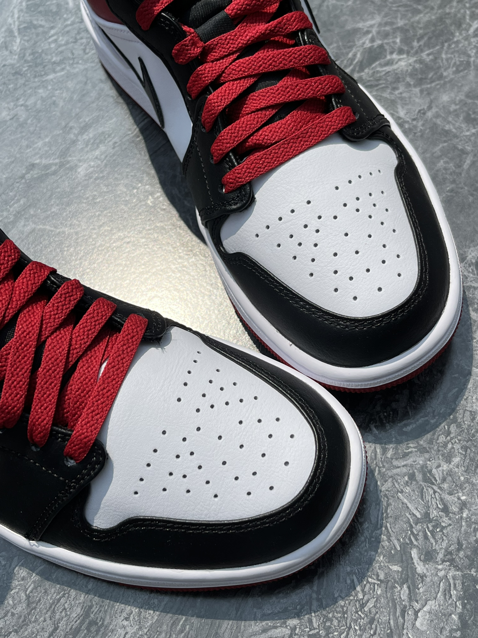 今年的新款AJ1真的太多了 这双AJ1黑白红也是我超喜欢的一双 推荐给大家 这双鞋子的颜值真的超级棒 简约的配色呈现出不一样的高级感受 这双鞋子很像曾经的黑脚趾配色 看起来很简约 但却十分百搭 黑白为主色调 加上少许红色的点缀 提升整体色彩饱和度 不过鞋面的皮质依旧和其他的中帮AJ1一样 都是合成革材质 穿久了容易有折痕 而鞋底白红的配色也略显清新 与鞋身的配色相呼应 这双鞋的尺码是不偏码的 所有...