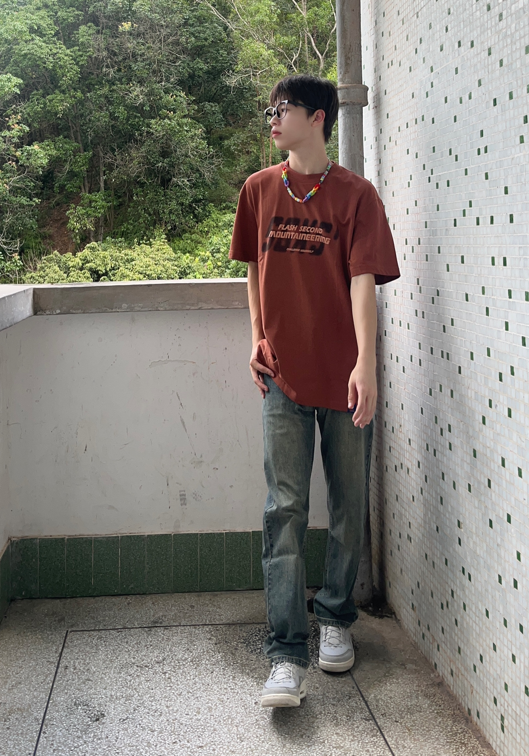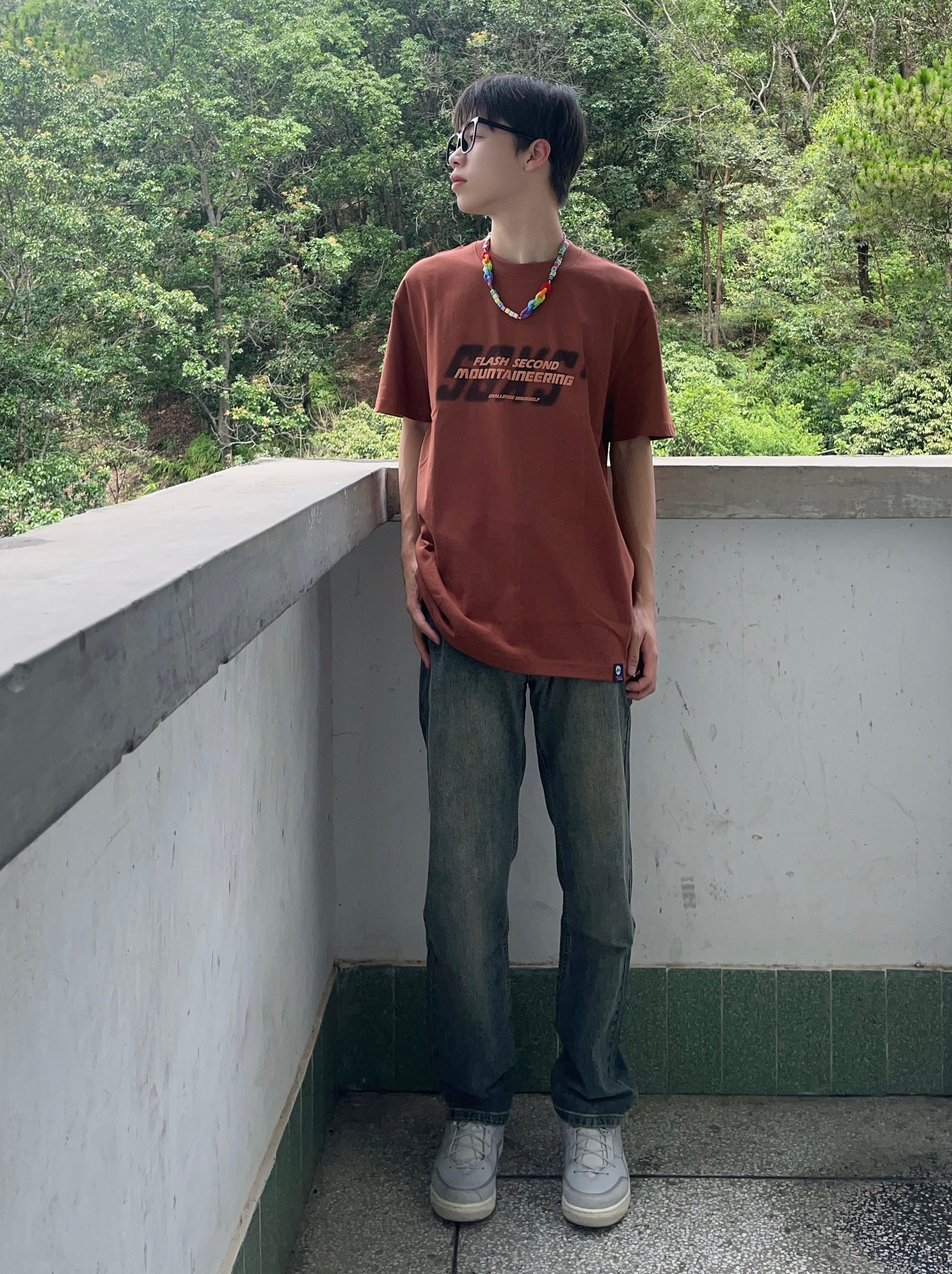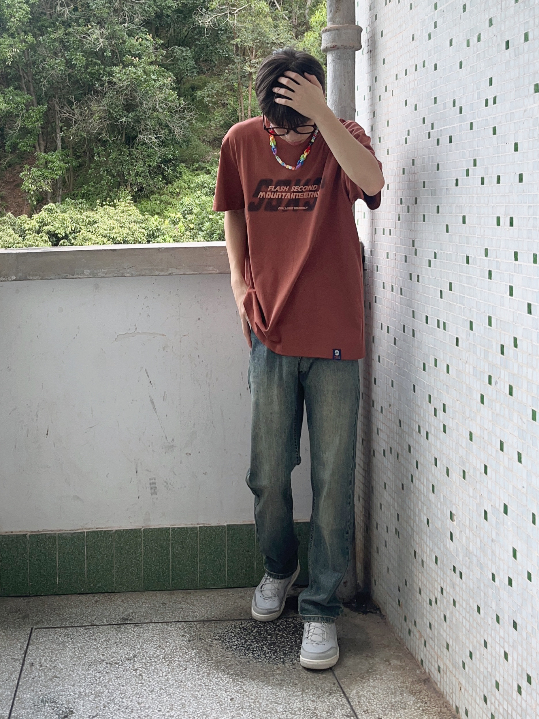 今天带来的是夏日放假穿搭分享 - 橘红色美式印花短袖搭配复古蓝牛仔裤 彩虹项链点缀 再搭配一双灰色复古板鞋 一套下来 百搭又好看 -