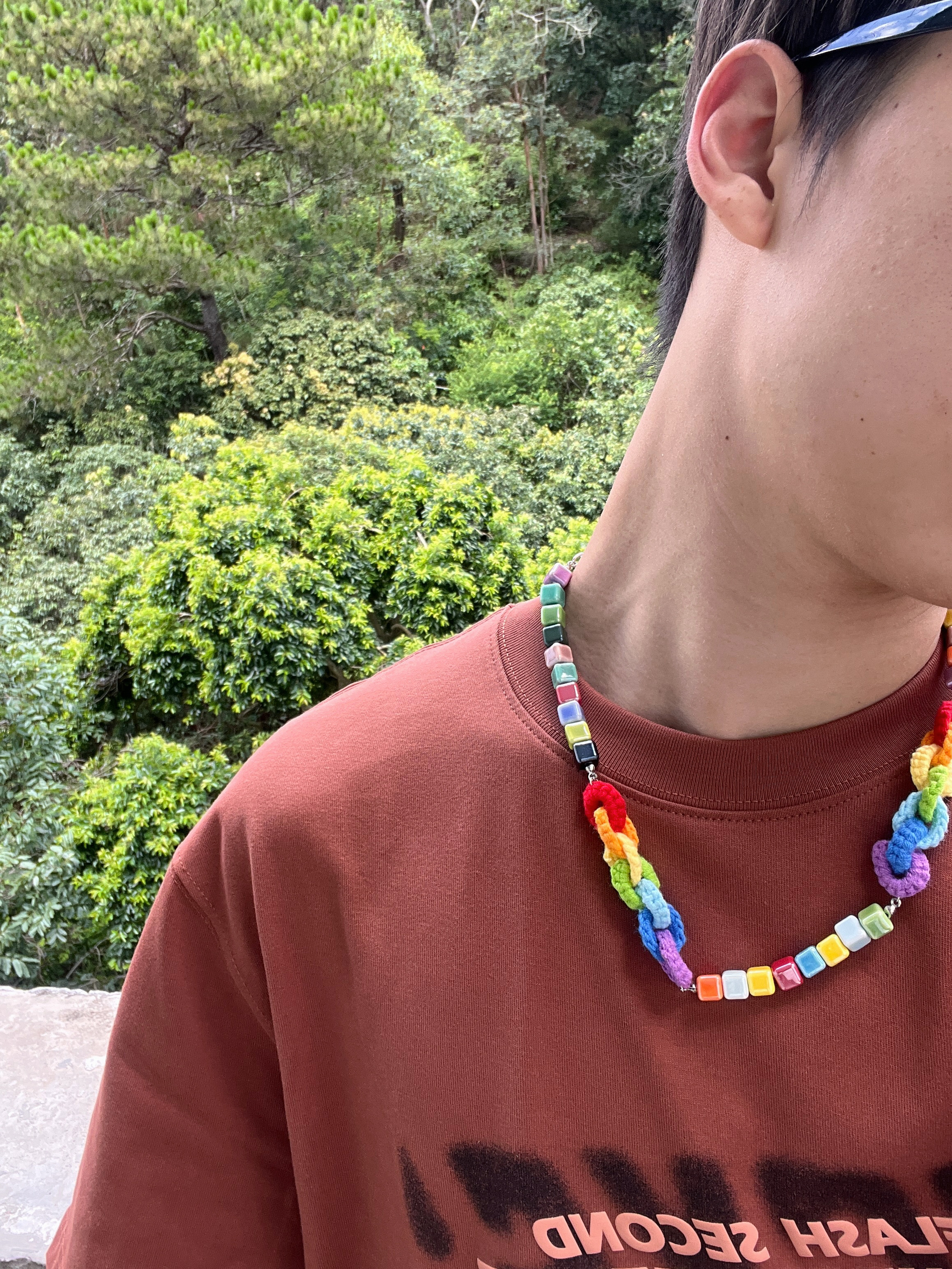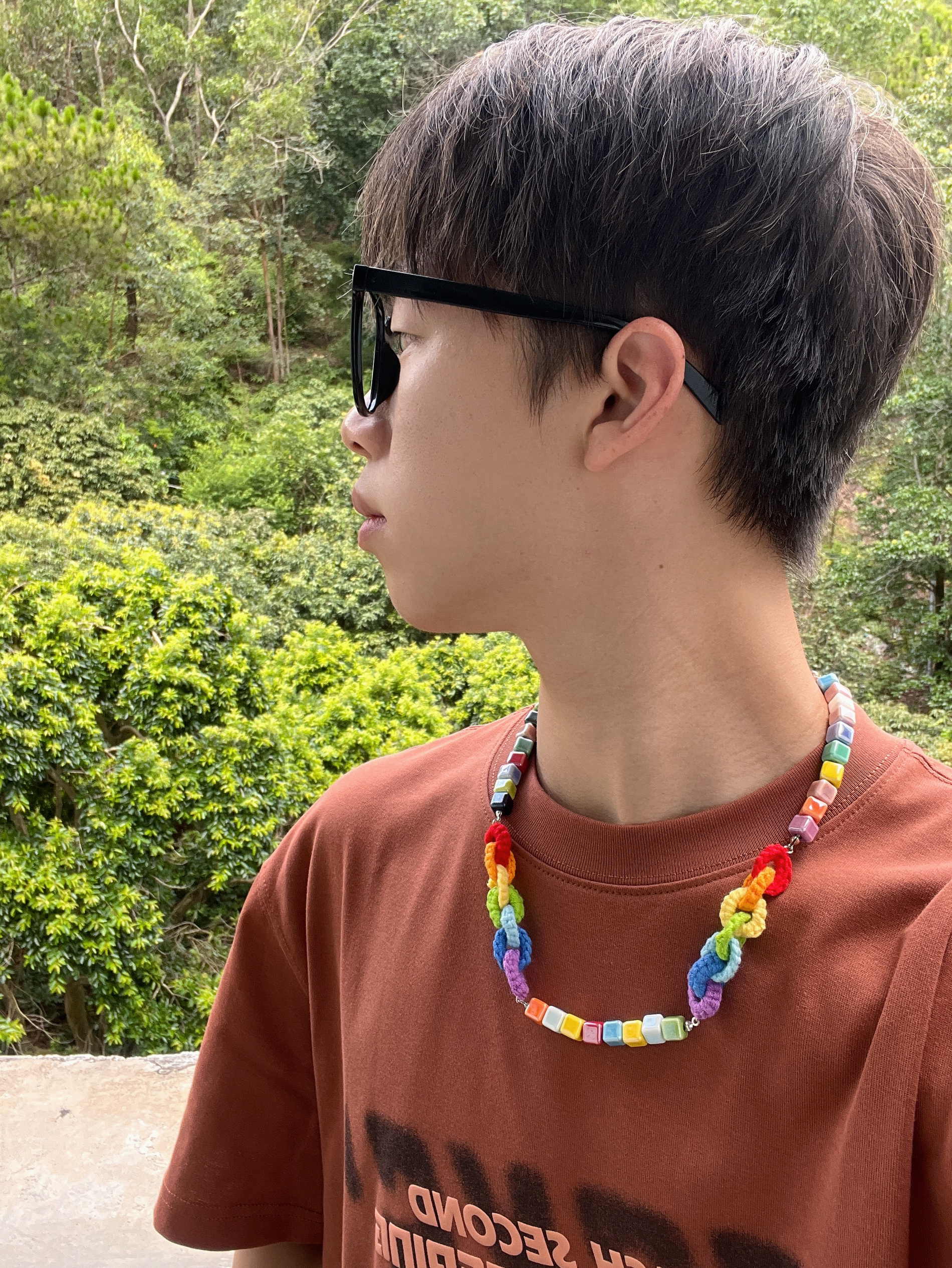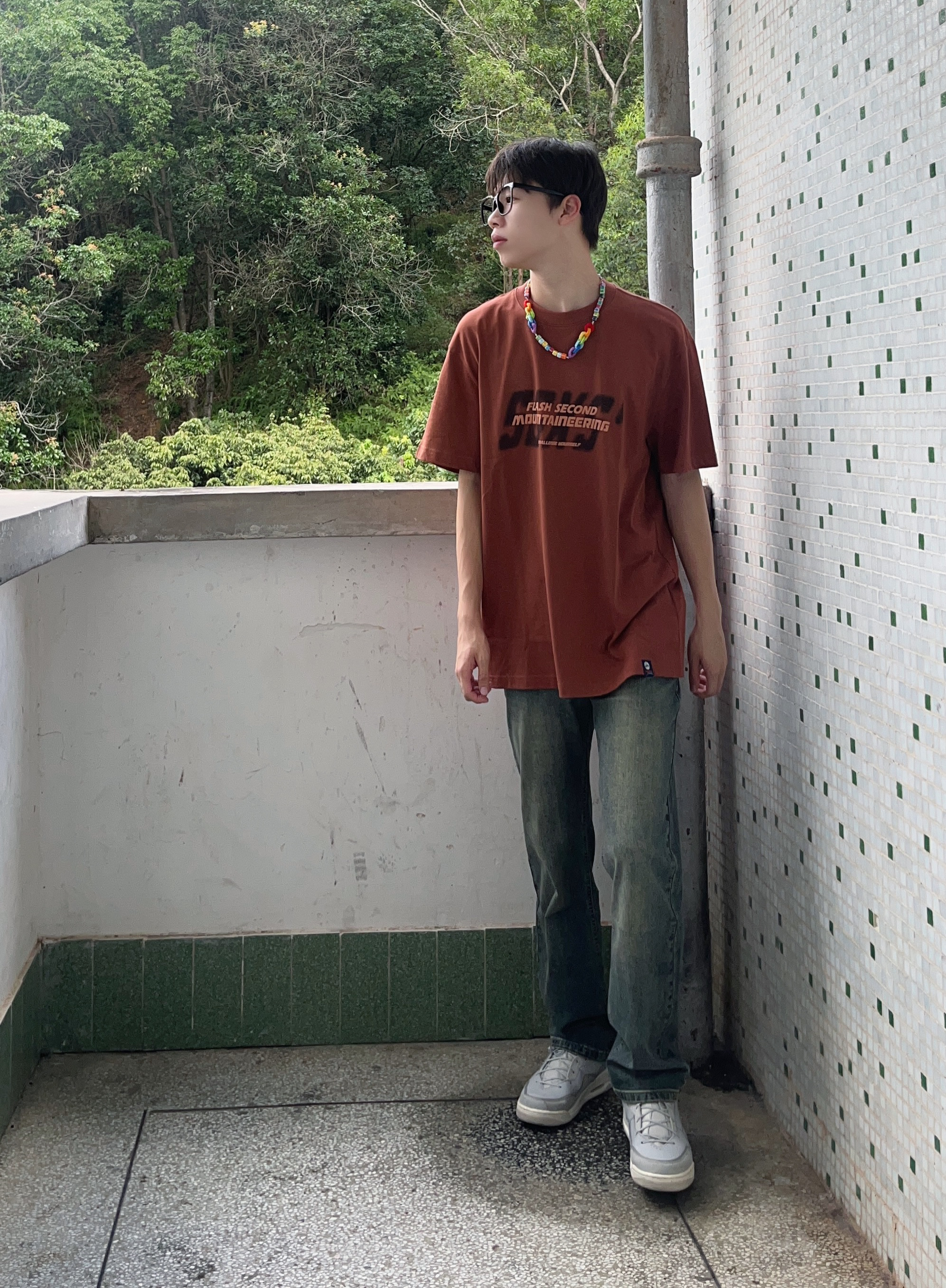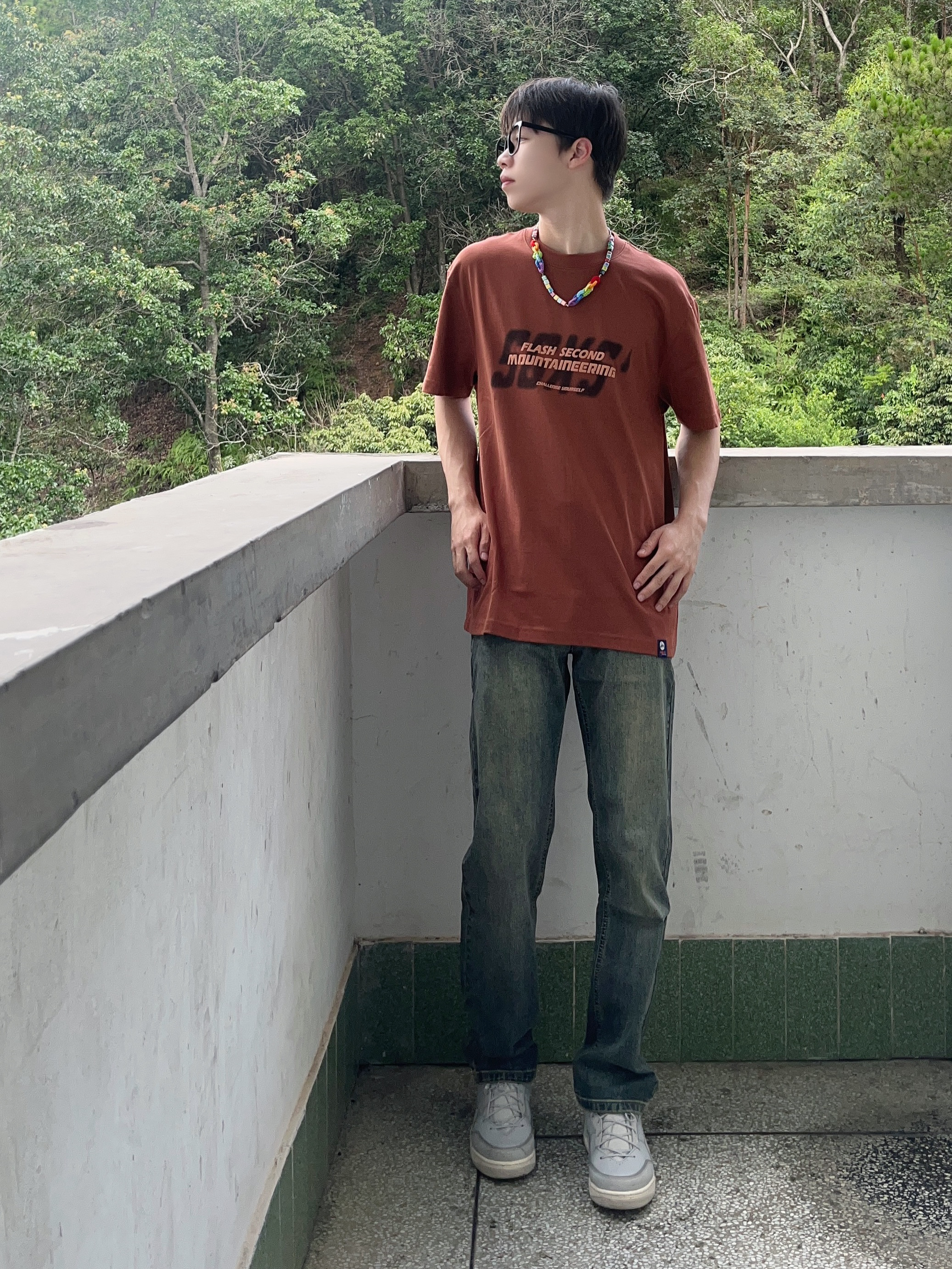 今天带来的是夏日放假穿搭分享 - 橘红色美式印花短袖搭配复古蓝牛仔裤 彩虹项链点缀 再搭配一双灰色复古板鞋 一套下来 百搭又好看 -