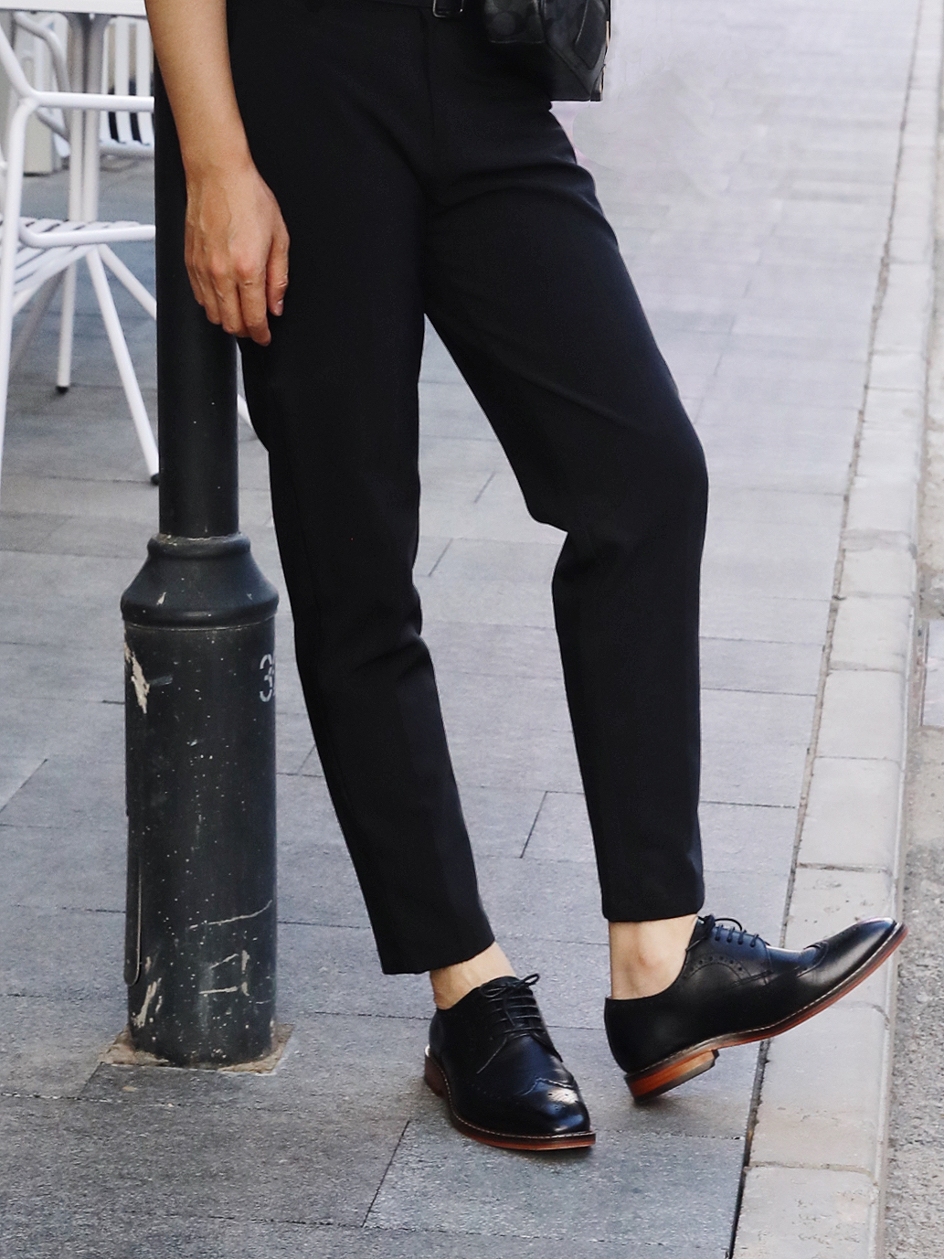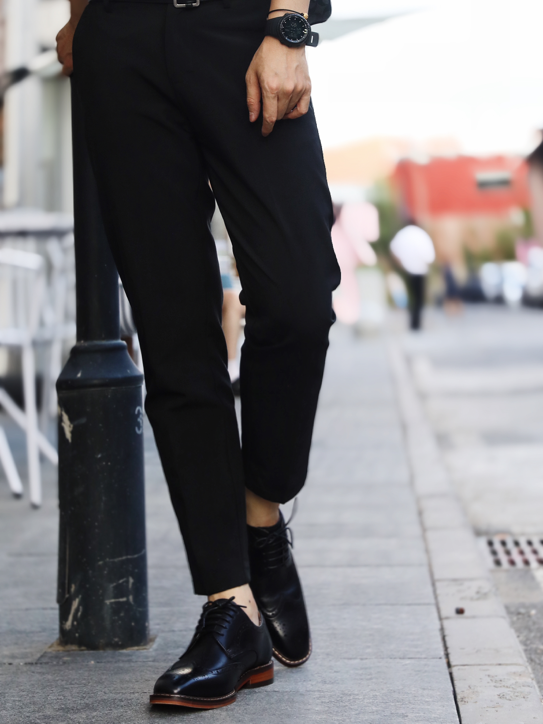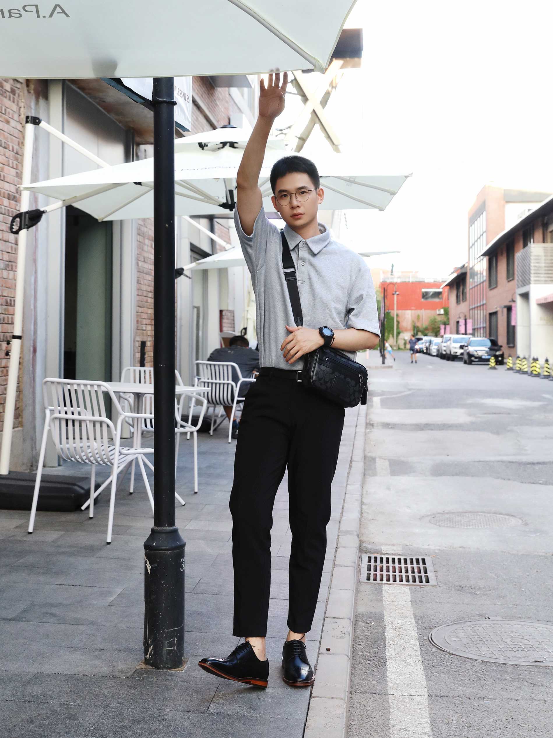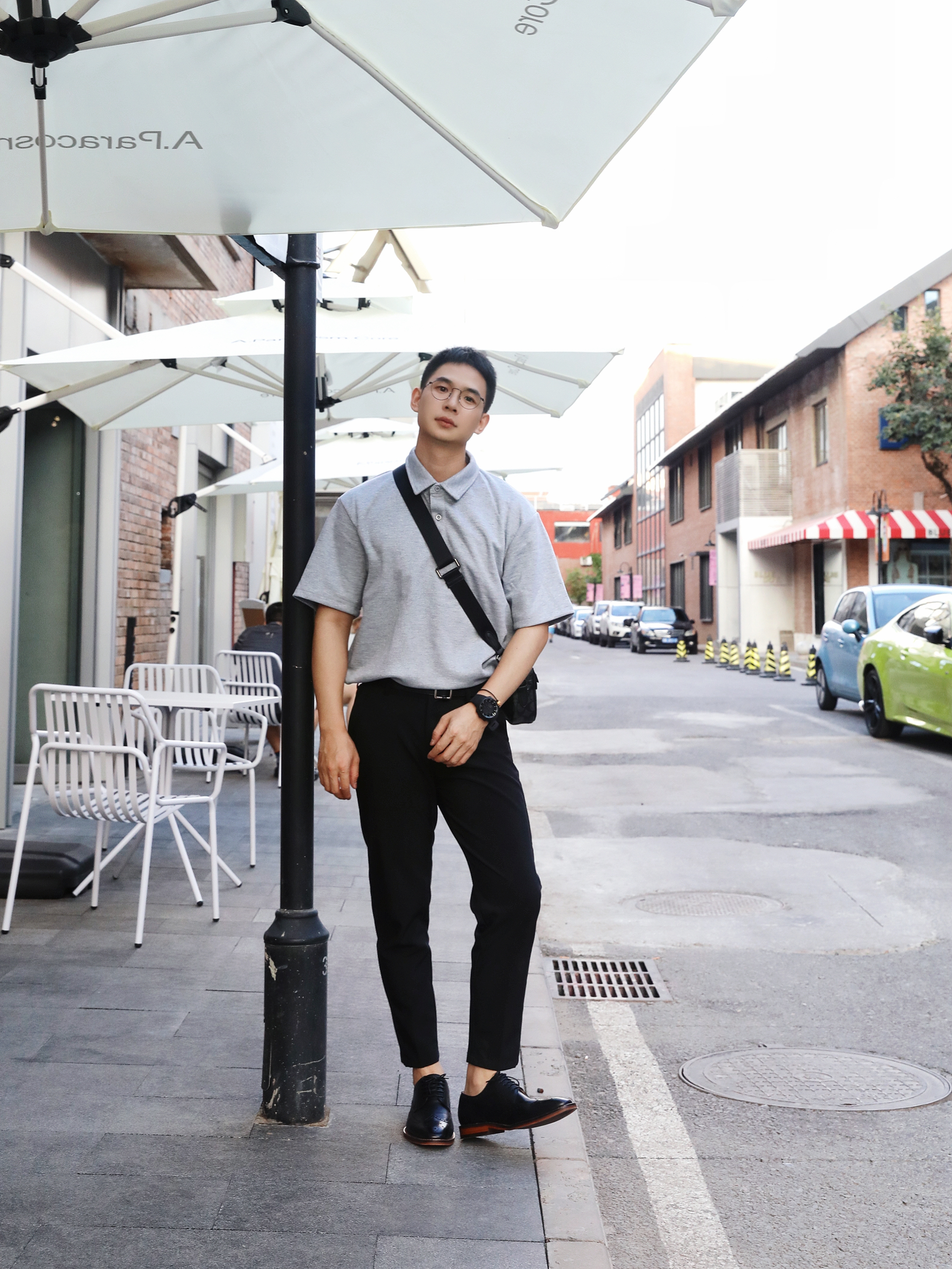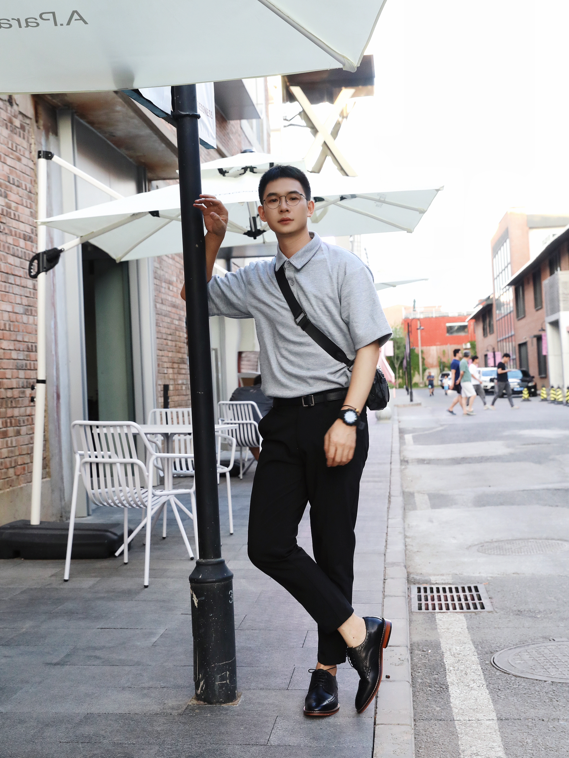 今日和朋友去园区玩耍,出门这身搭配有点儿轻熟风💌️ 上衣是一件灰色Polo衫➕黑色的西装9分长裤,搭配这双黑皮鞋,精致感简直拉满! 这双鞋子真的太适合,鞋子的包裹感很好,不累脚而且时尚感超级强,没想到日常出街也这么搭❤ 宝子们可以冲哦!