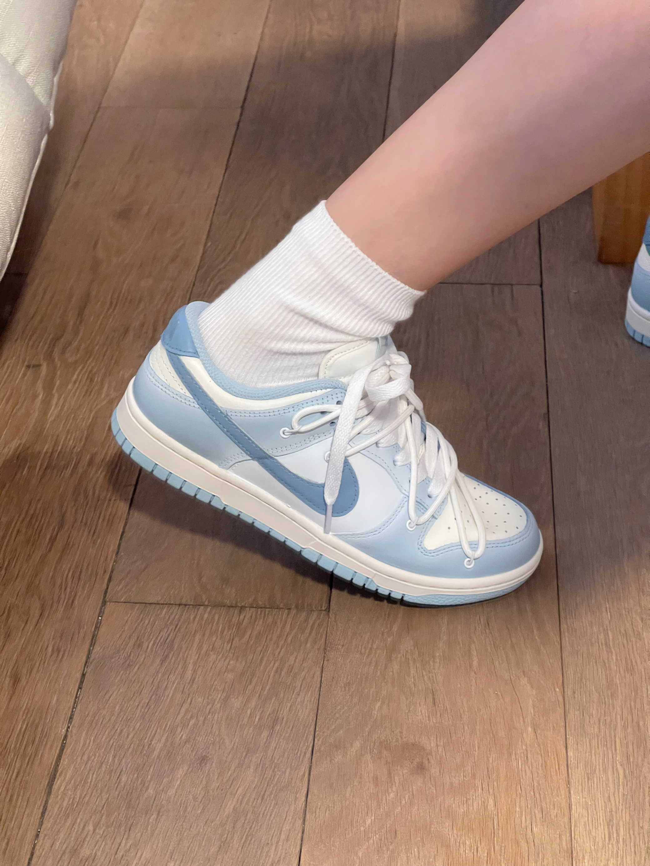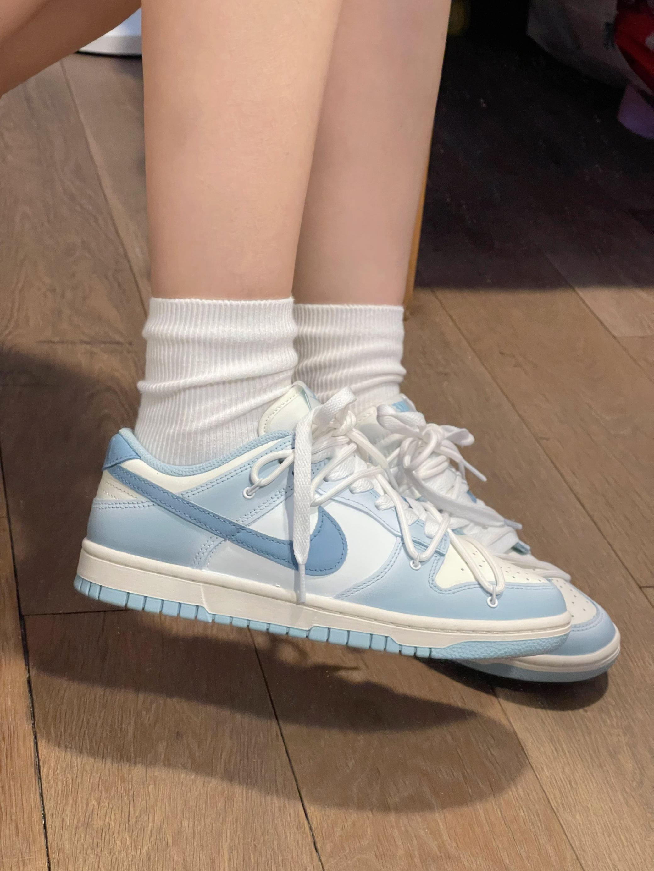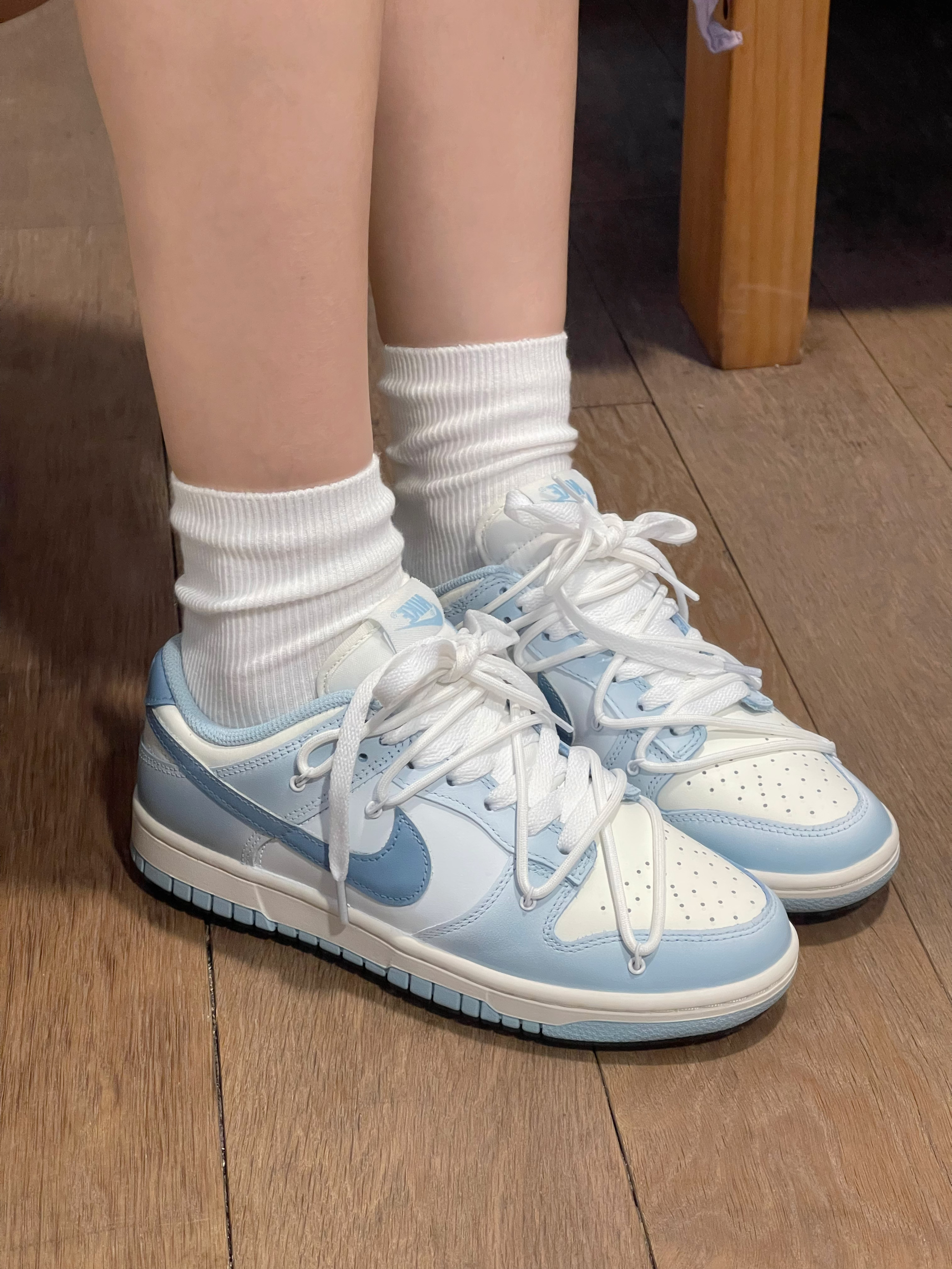 好喜欢这双dunk烟雨幻境啊!!! 到手真的惊艳到我了~海盐渐变蓝好清新的感觉!! 喜欢蓝色的朋友们有福啦~这双尊滴好好看诶🥺 日常爱穿黑白灰衣服的,搭配这个完全ok! 干净又清爽~很难不爱🥰