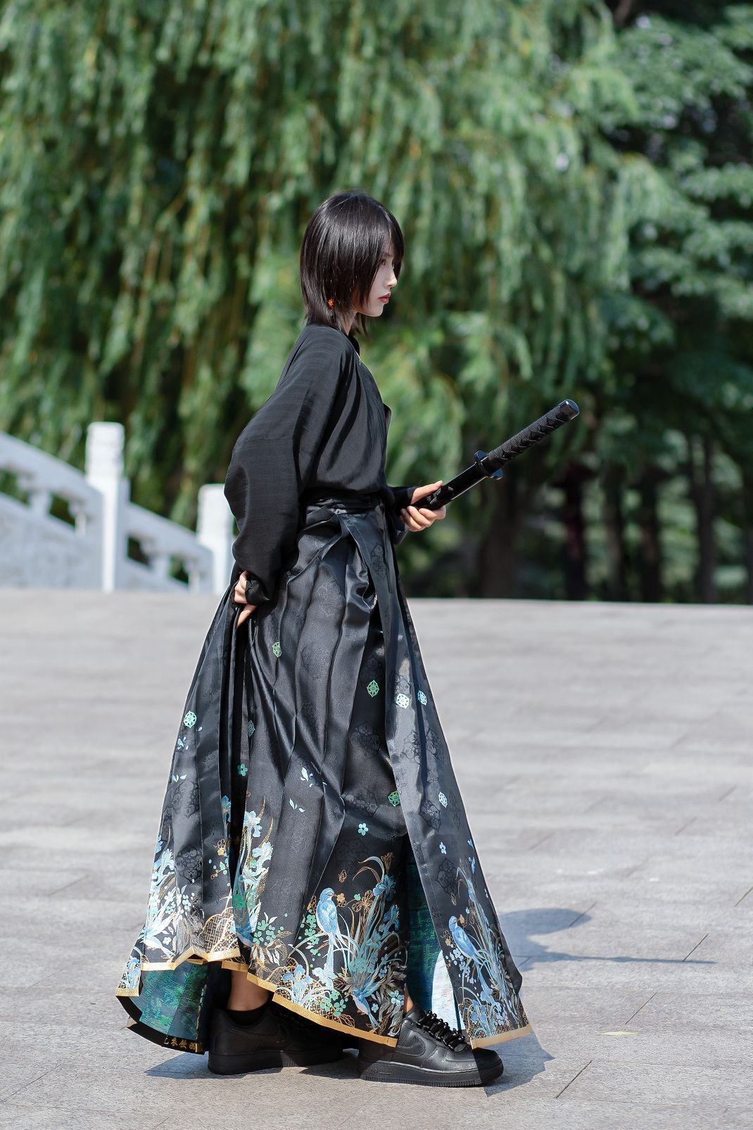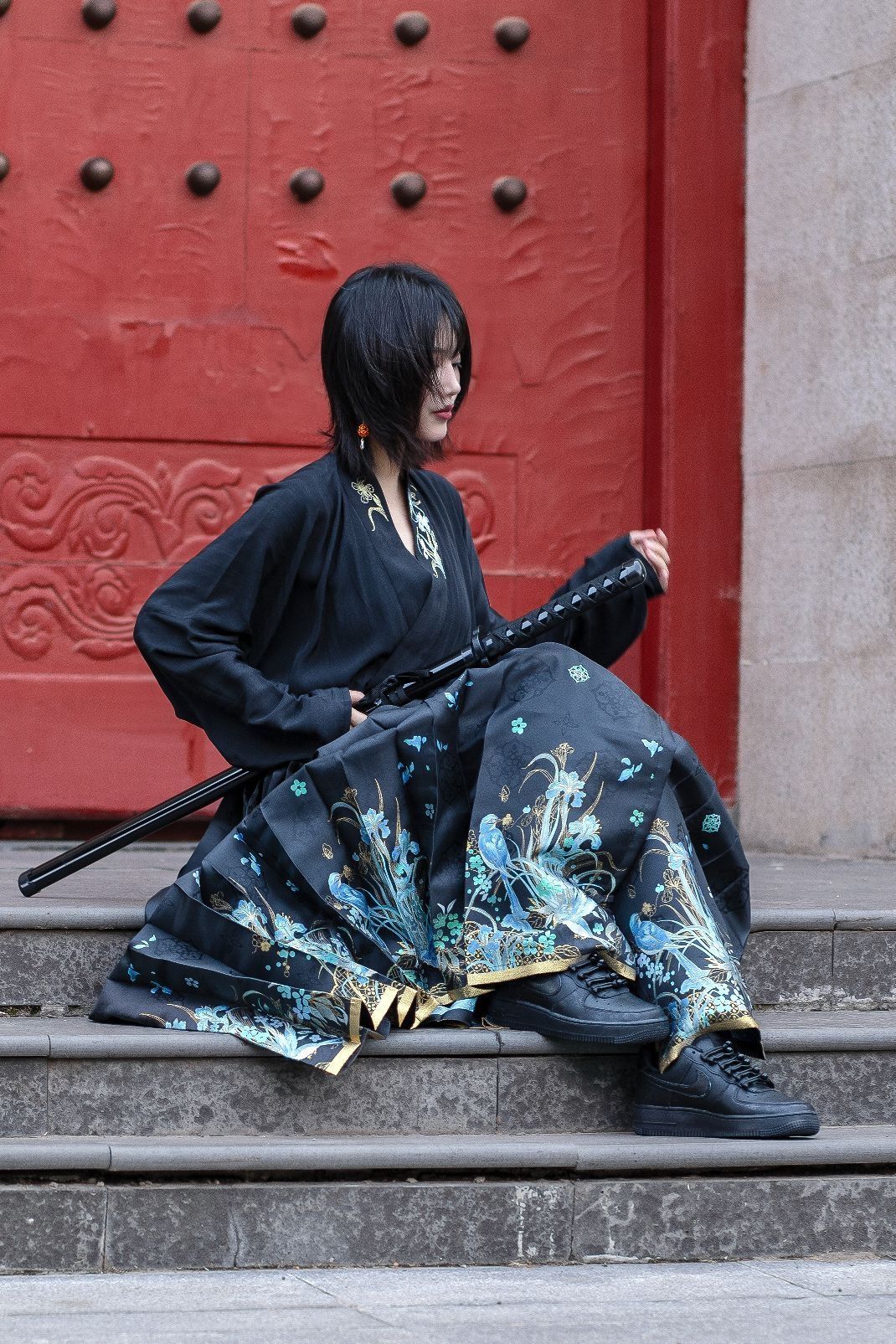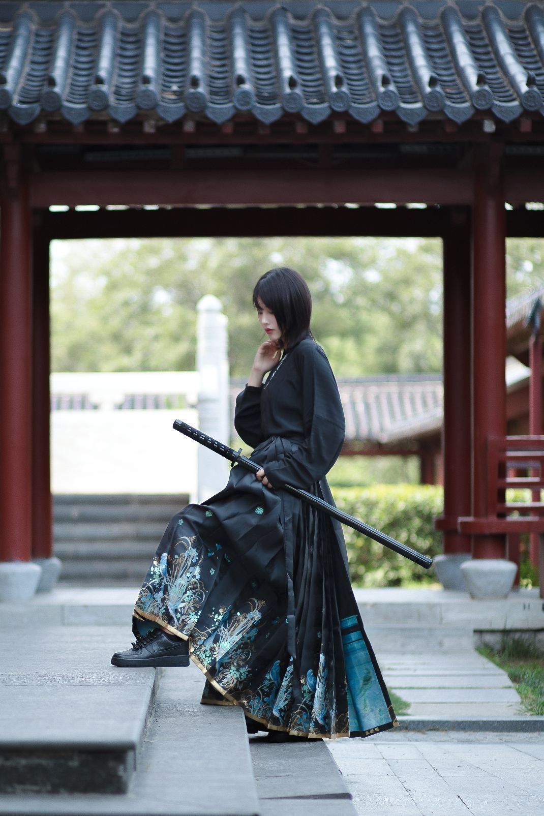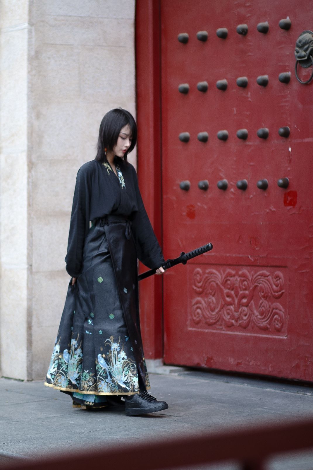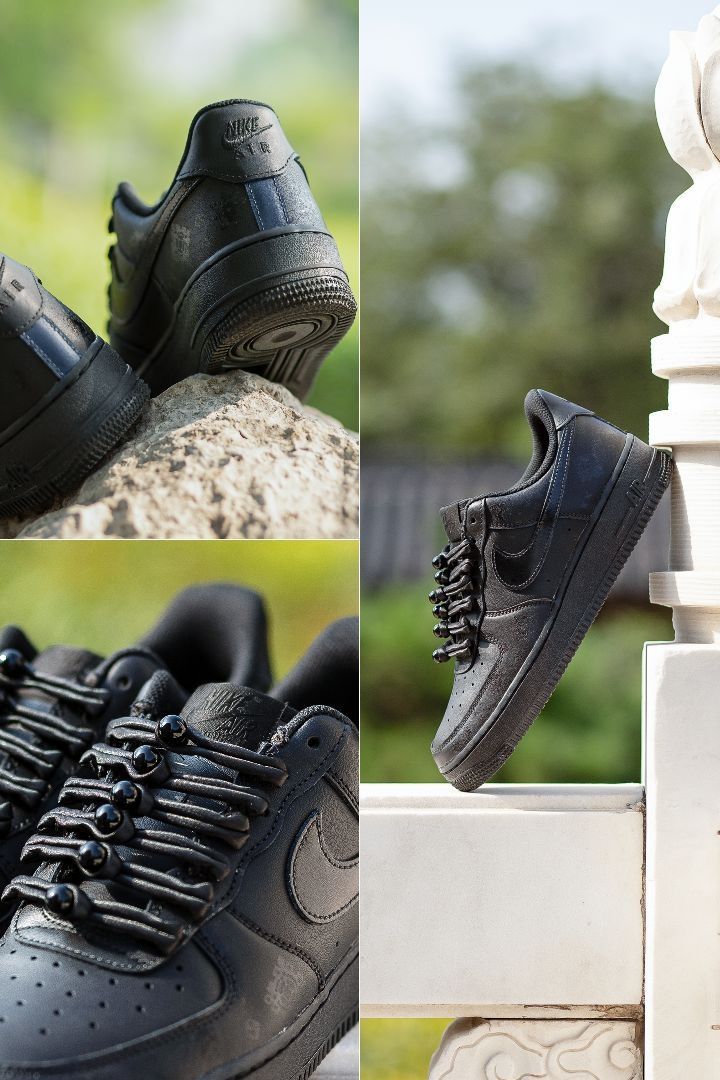 自古尼克的纯黑配色基本都是倒闭的状态,确实!不过对于定制球鞋来说,纯色系真的很适合二创! 🔺今天分享的是一款以纯黑AF1为基础的“锦衣卫”风格定制球鞋~ 这双鞋子中国风满满,鞋身手绘了丝绸的图案,隐约的花纹设计简单又精致~ 鞋带是传统的盘扣设计,太特别了! 附赠了常规鞋带,日常穿搭也很可~ 质感很好,低调又个性真的爱了 😍宝子们,你们觉得我这身球鞋穿搭帅吗???