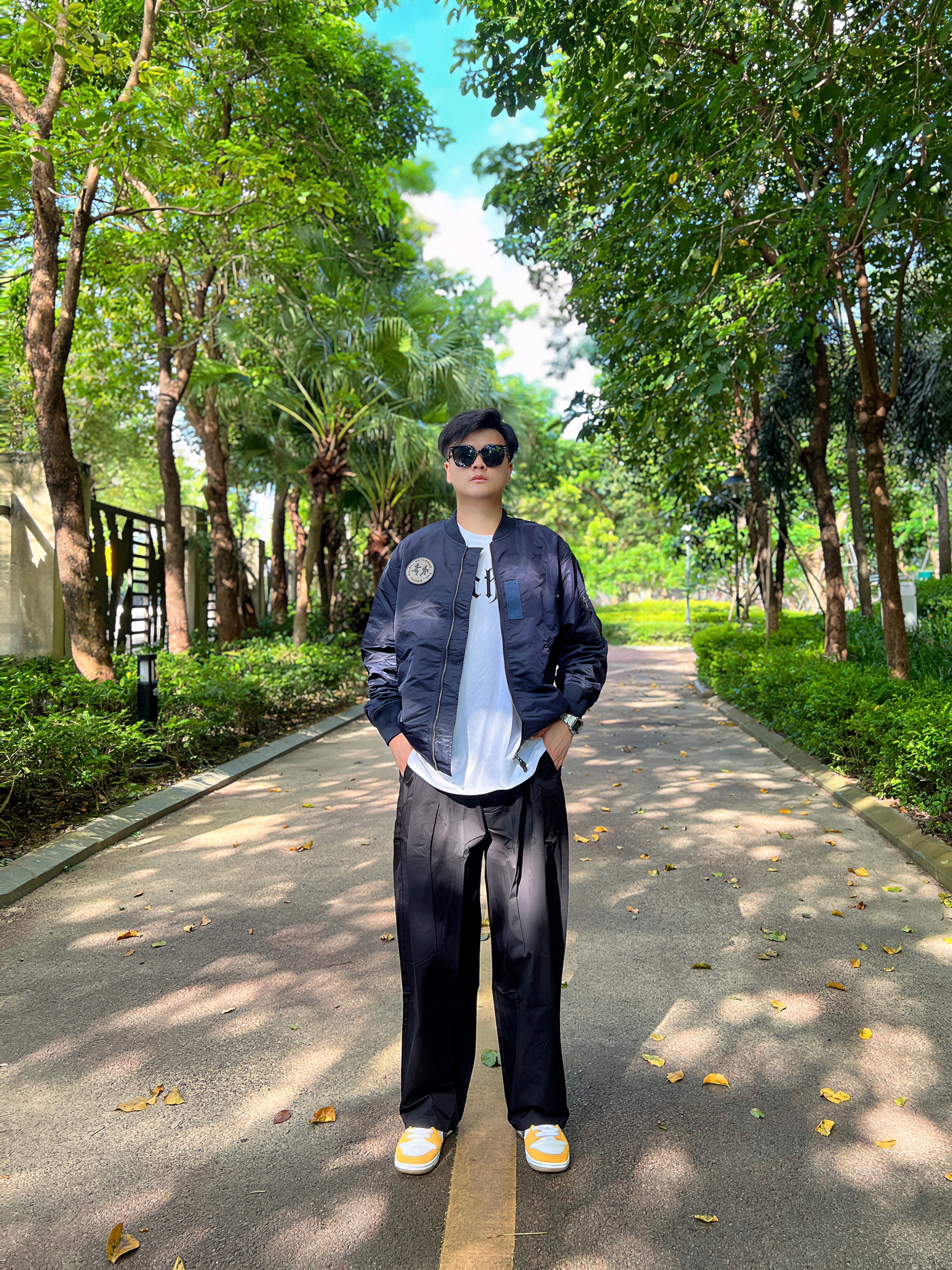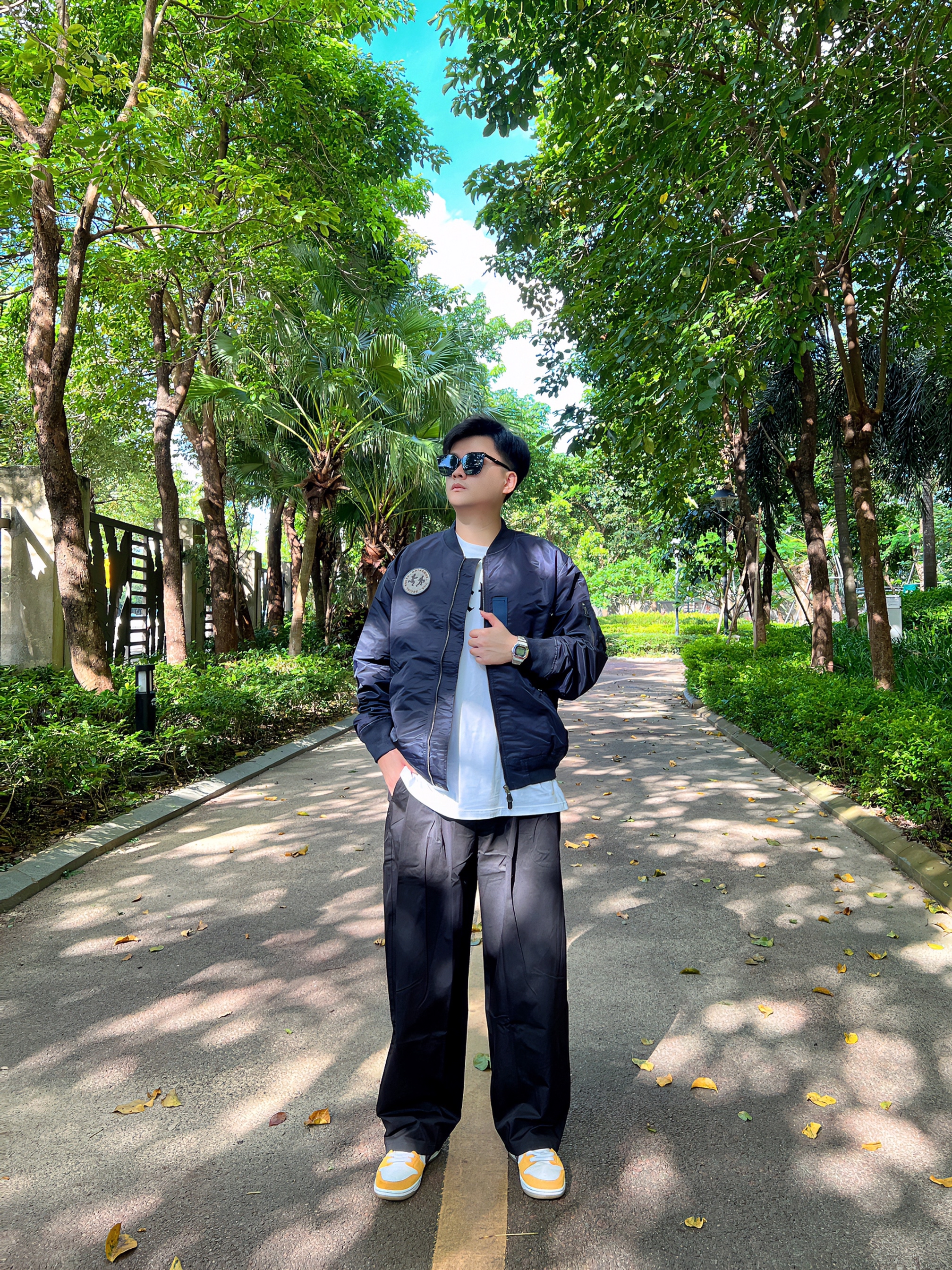 ✨hello,这里是阿b仔 那~看看我的潮男穿搭look⭐️ 👔白色打底+NOTHOMME的藏青色夹克外套 上身潮流帅气,质感满满很nice‼️ 👖NOTHOMME的黑色工装长裤 上身宽松舒服,休闲嘻哈feel我很爱‼️ 👟NIKE的湖人紫金配色dunk板鞋 上脚酷炫时尚,脚感也是棒棒哒‼️ - 参考尺码:身高180cm,体重155斤⭐️ 棒球服XL码👔,工装裤XL码👖,板鞋XL码👟