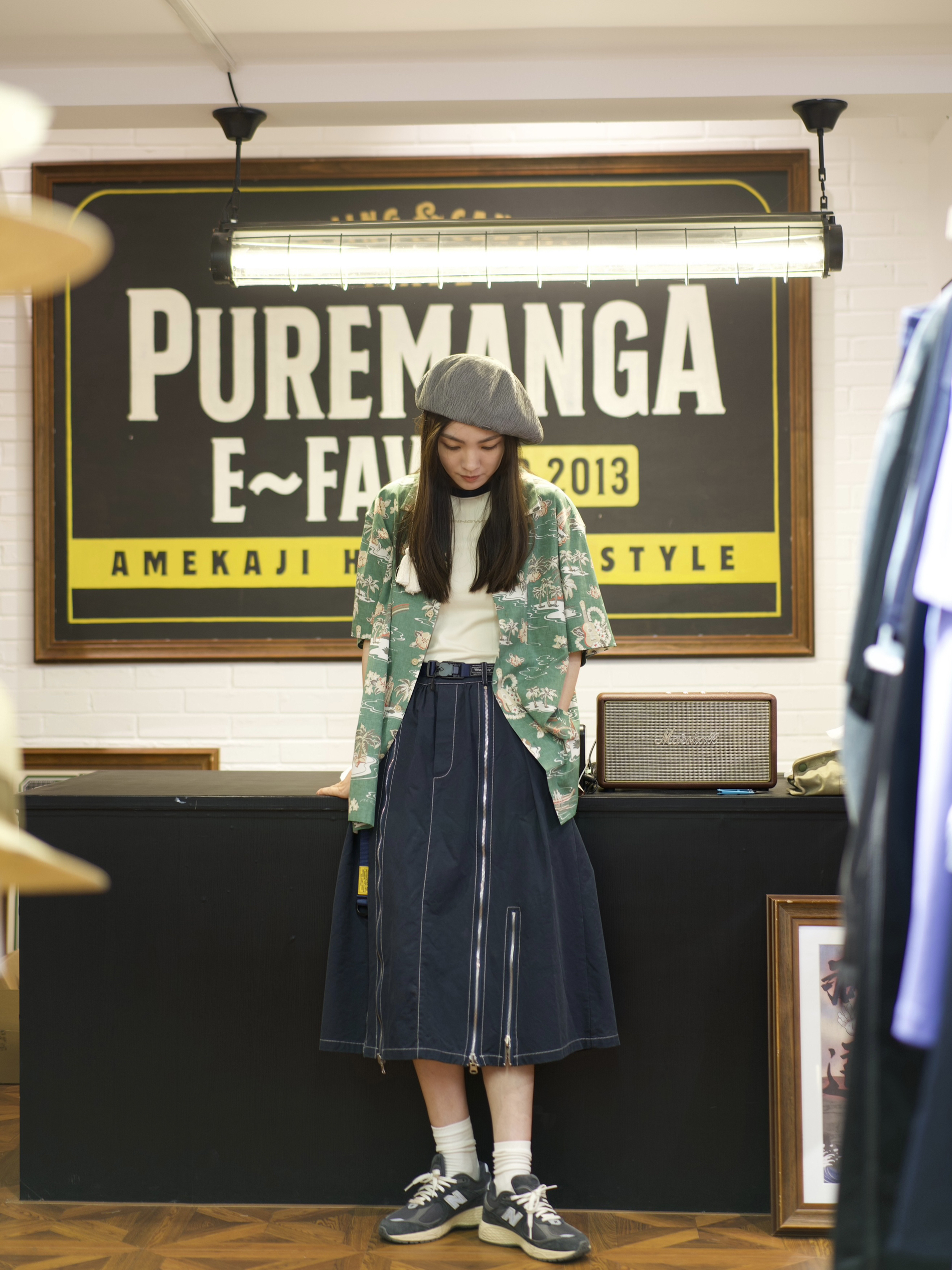 尝试下 newvintage! 一些看起来旧旧的,又全新的复古搭配! 水洗感的绿色印花村衫+牛仔半裙。