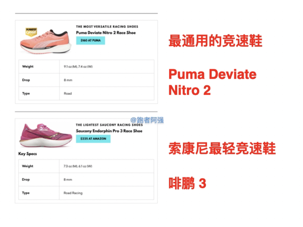 2023年6月13号,世界上最权威的跑步杂志《跑者世界》发布了2023年最佳跑步鞋名单,跟着我快来看看有没有你心仪的鞋子吧? 这是第二篇,包含竞速跑鞋、稳定支撑和越野跑鞋 第一篇查看点击头像,主页哦! 🏃🏻🏃🏻竞速鞋: 1️⃣最佳竞速鞋: Nike Vaporfly 3 2️⃣最佳马拉松跑鞋: Nike Alphafly Next 2% 3️⃣最通用的竞速鞋: Puma Deviate ...