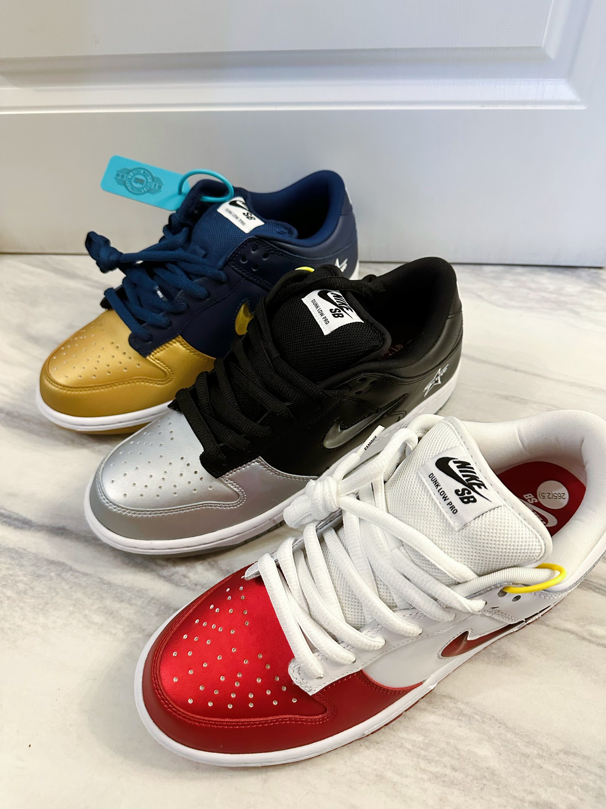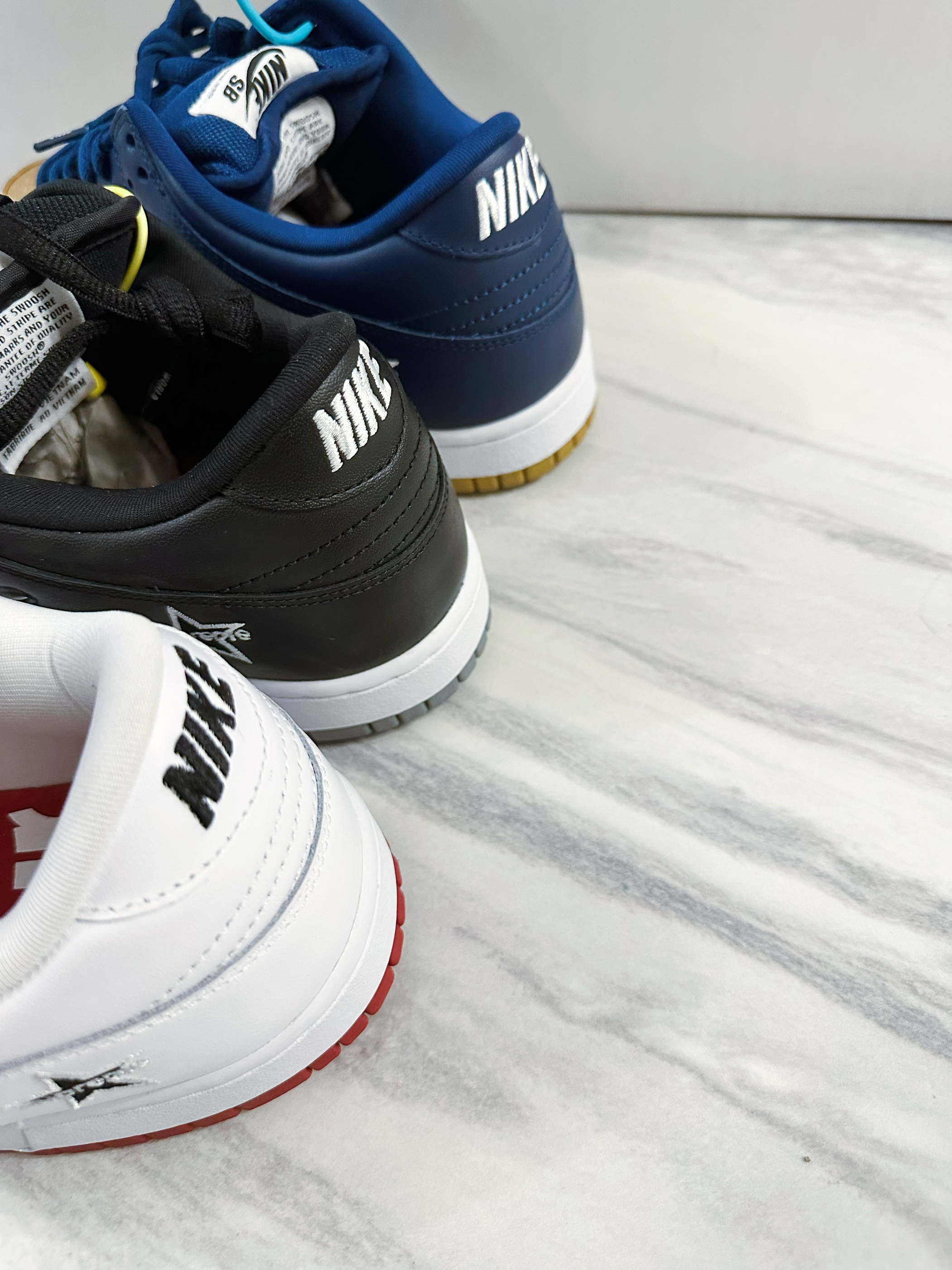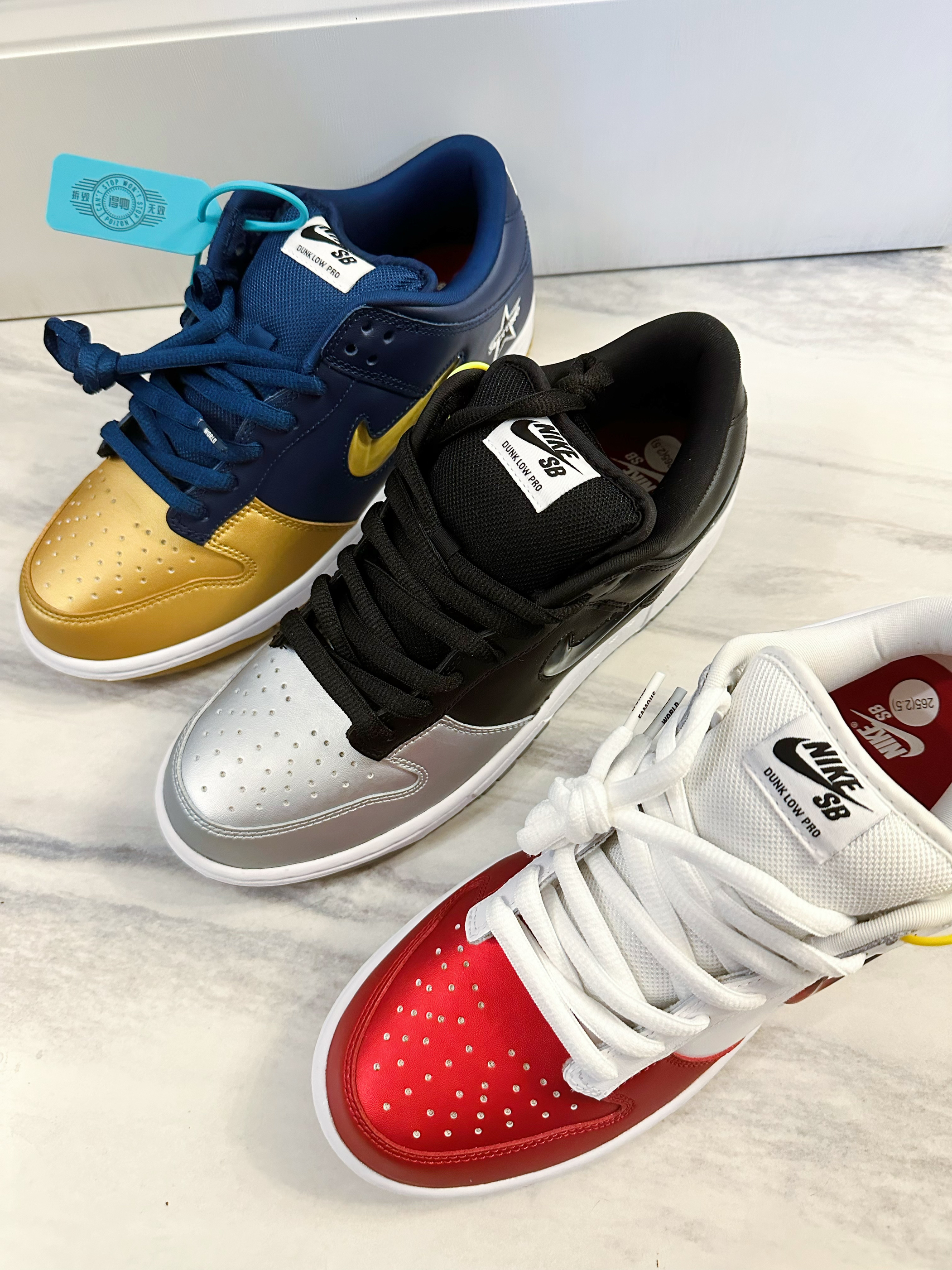 sup在潮流圈可以说是佼佼者了,很多单品受到潮人的追捧,这次和nike的联名则已Dunk SB鞋型为蓝图分别出了三种配色,三种配色都是撞色的设计,分别为白红,黑银和蓝金三种配色,每种配色的辨识度都非常高,可以根据自己喜好和穿搭进行选择。最特别的设计在于迷你的果冻swoosh,并且包括大底的配色都是以脚面的主配色为主,分别是红色,银色和金色,后跟的是sup的五角星刺绣彰显联名,而鞋垫则都是采用sup...