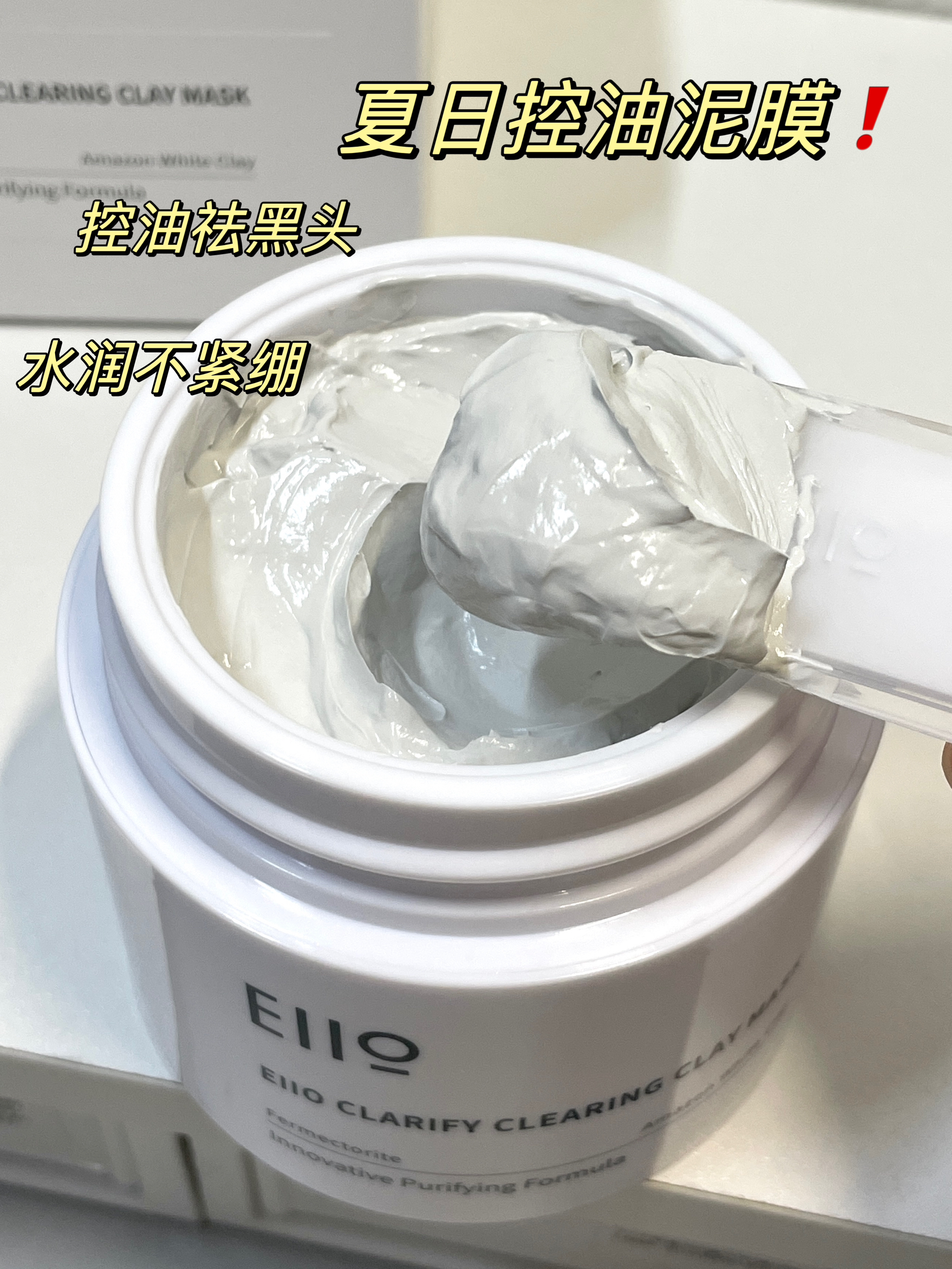 夏天皮肤经常油油的姐妹注意啦! 来看看eiio第二代清洁泥膜 皮肤出油多➕经常化妆 鼻子下巴总是有很多小白头 泥膜的质地是像酸奶一样 很丝滑 在脸上很好推开~ 敷完15分种以后 脸上没有紧绷感 洗完以后脸蛋变得水水润润的 也会浮出来一些小白头 可以用棉签轻轻刮掉 再敷一下保湿水 一周敷一次全脸再清洁一次t区 脸上的出油状态和浮粉状态好转了很多