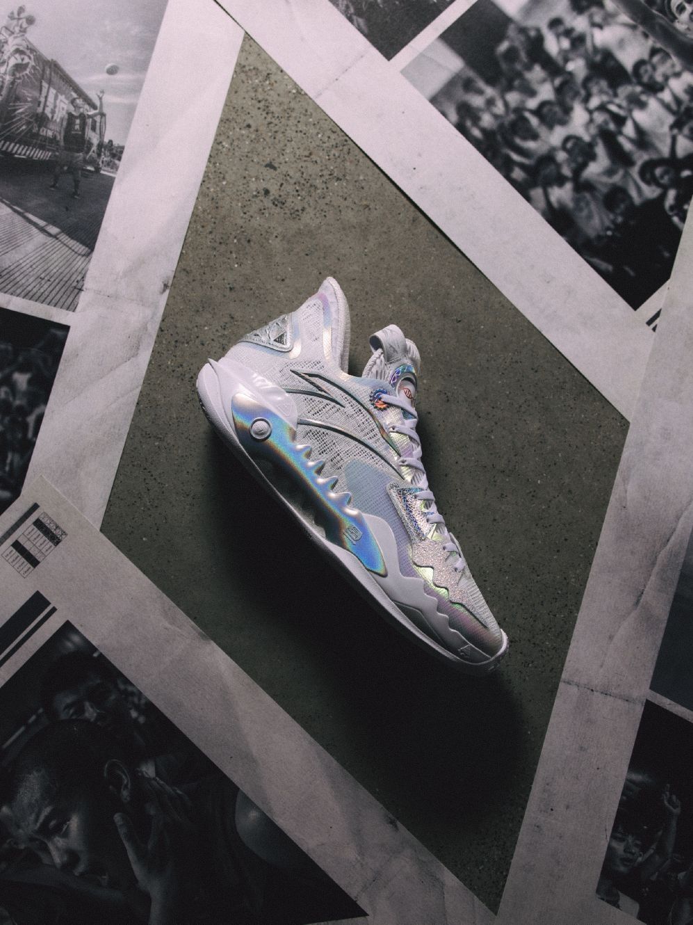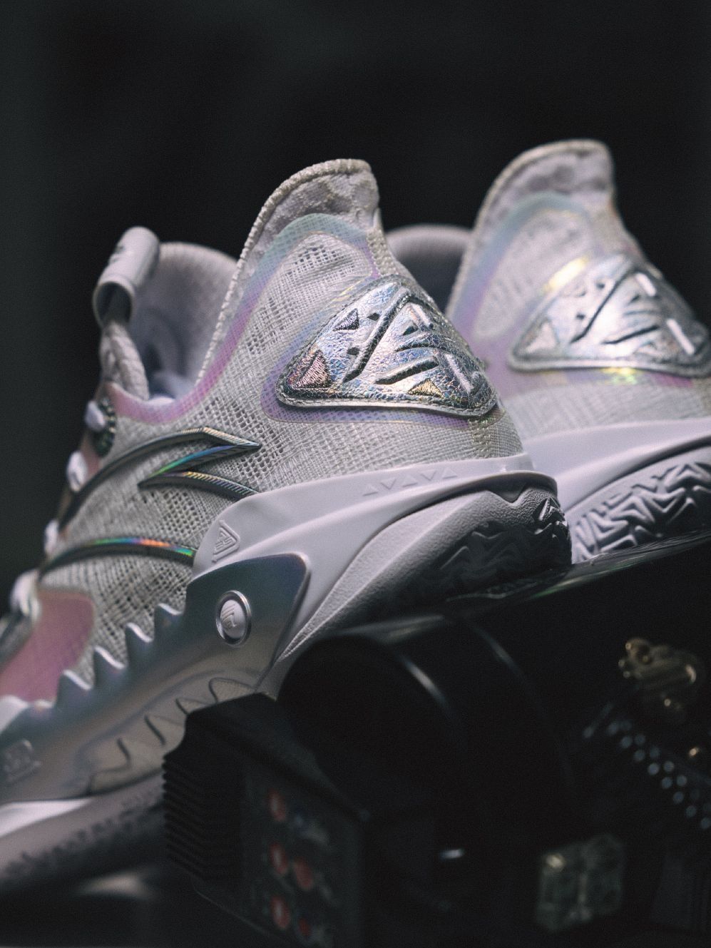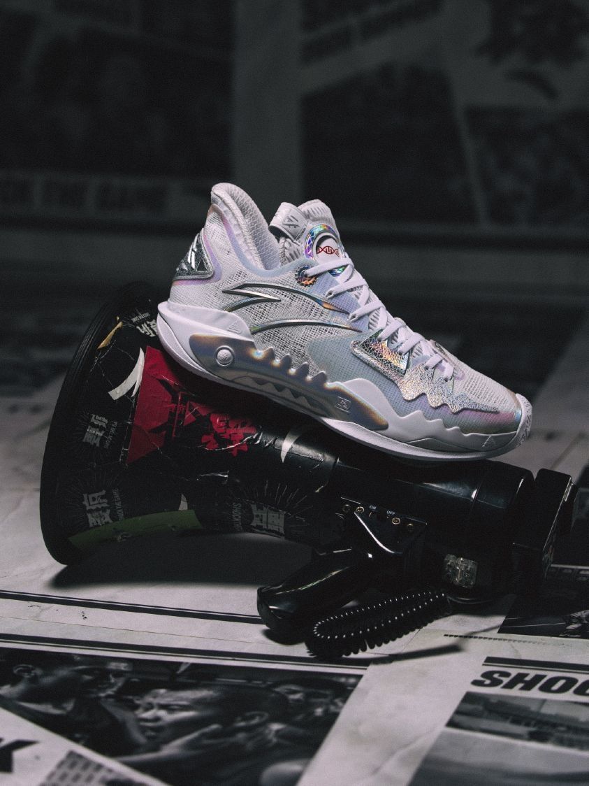 挑战,磨砺,考验 目标,决心,拼劲 刻在基因里的「疯劲」 此刻传承! 狂潮5「传承」元年基因 经典白色覆盖鞋身主体 镭射反光装点细节 复刻经典素净高雅风格 见证外场的闪光时刻。