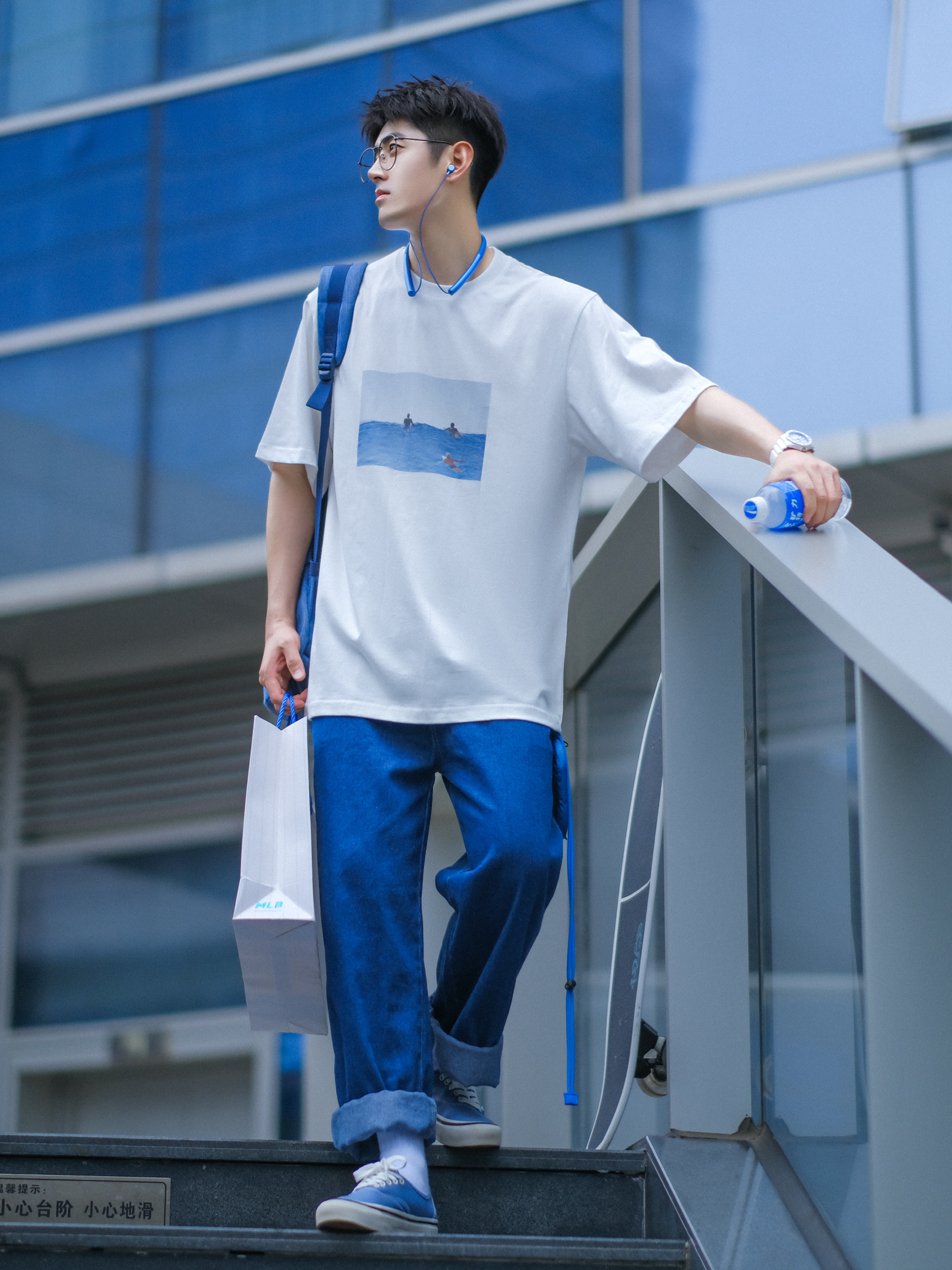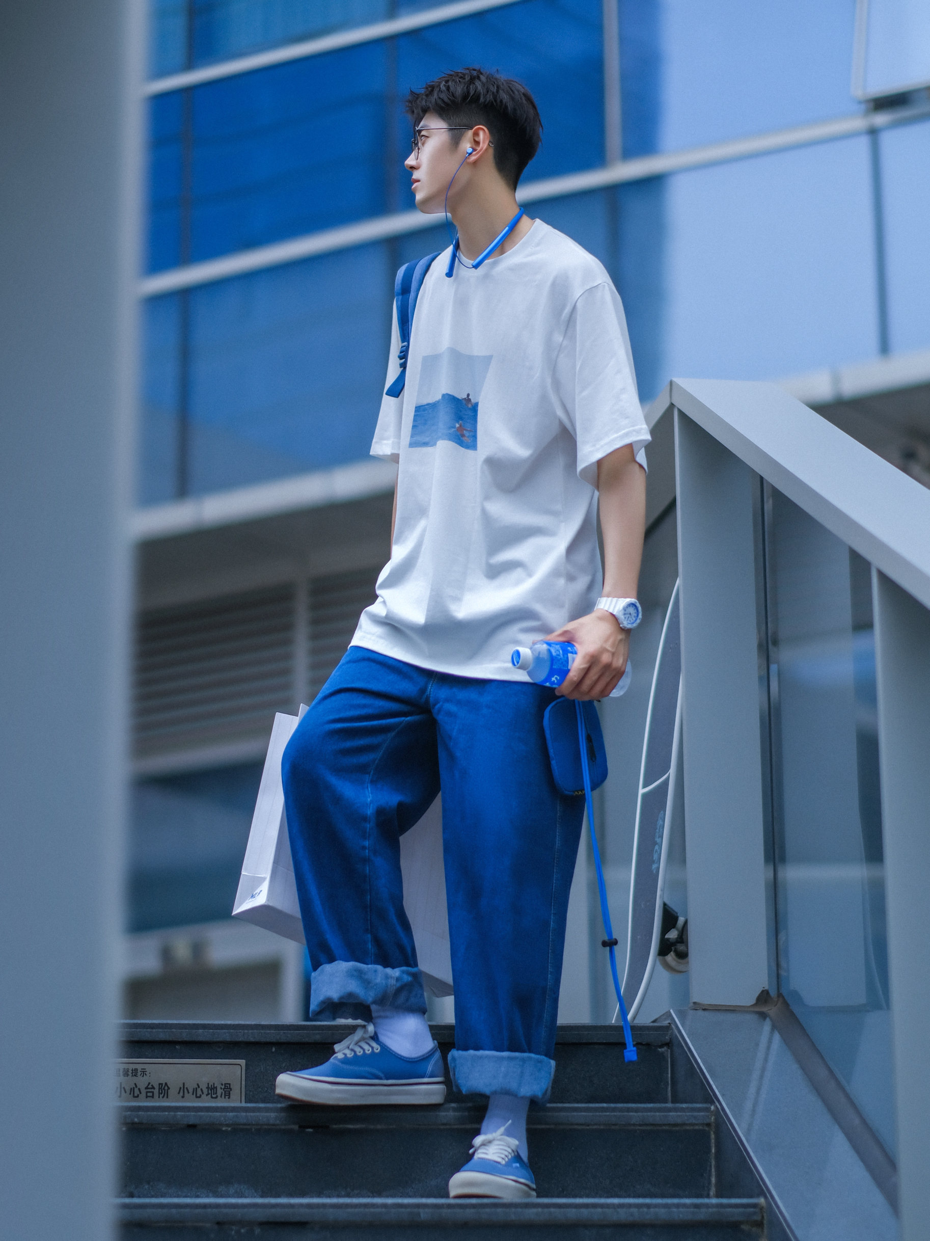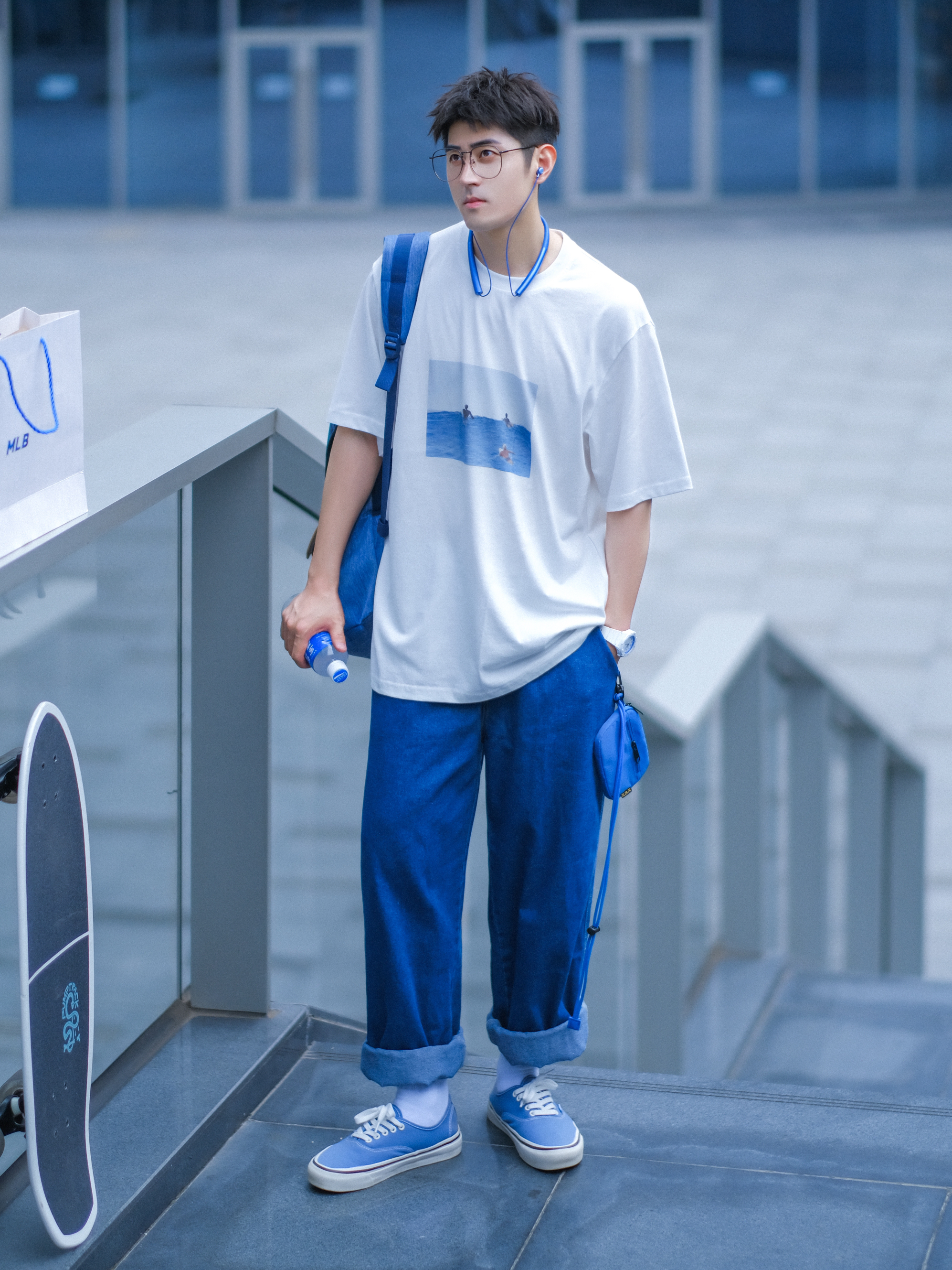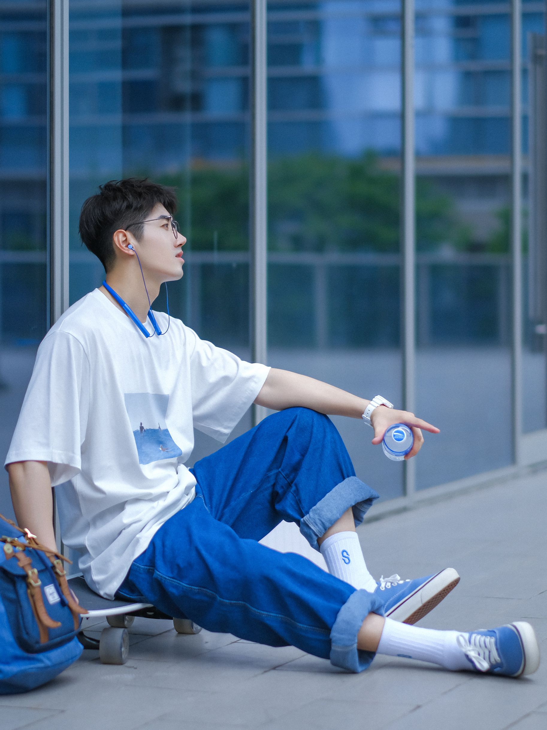 🔹没什么好说的,夏天,就是喜欢“白色T恤”!☁️🌀💤…… — ⚠️本人身高|体重:176CM|61KG(🉑️参考) — 🔹今天分享一套“夏日OOTD”—⚪️🔵“白蓝”少年感穿搭!简简单单!舒舒服服!1⃣️一件【白色】T恤,☁️✨……2⃣️一条【蓝色】牛仔裤,👖✨……3⃣️一双【雾霾蓝】帆布鞋,🥏✨……4⃣️一只【牛仔蓝】旅行双肩包。💙✨……一整个“冰冰蓝蓝”的清爽色感!🧊✨……真的好适合男生夏季穿...