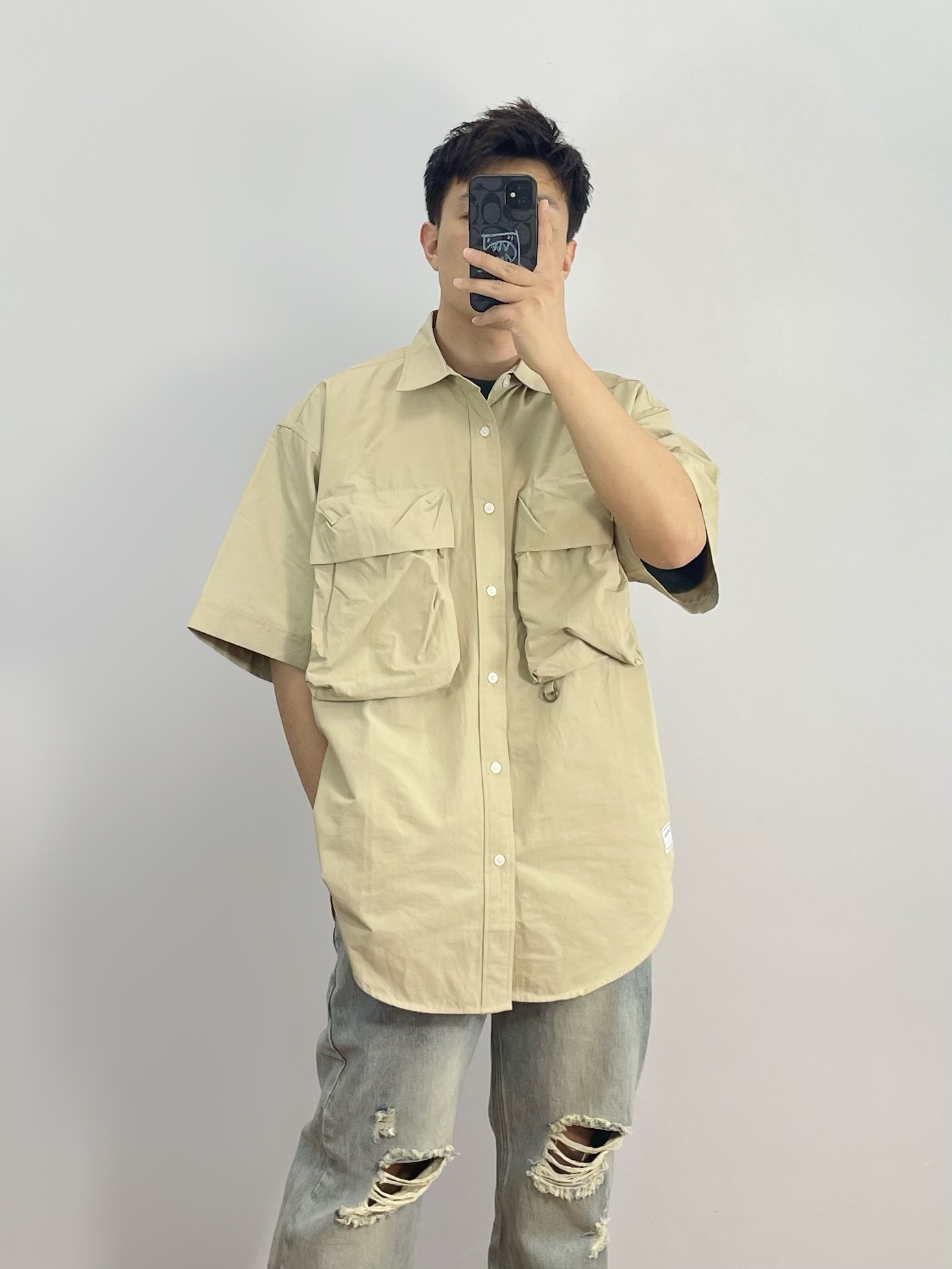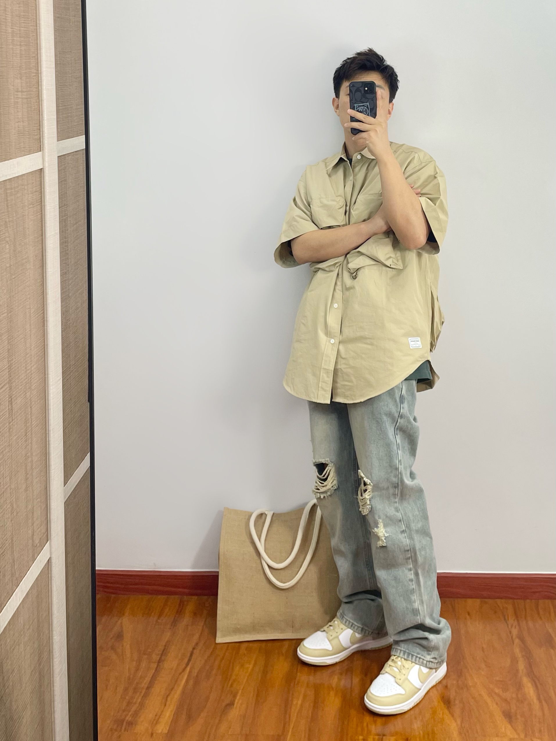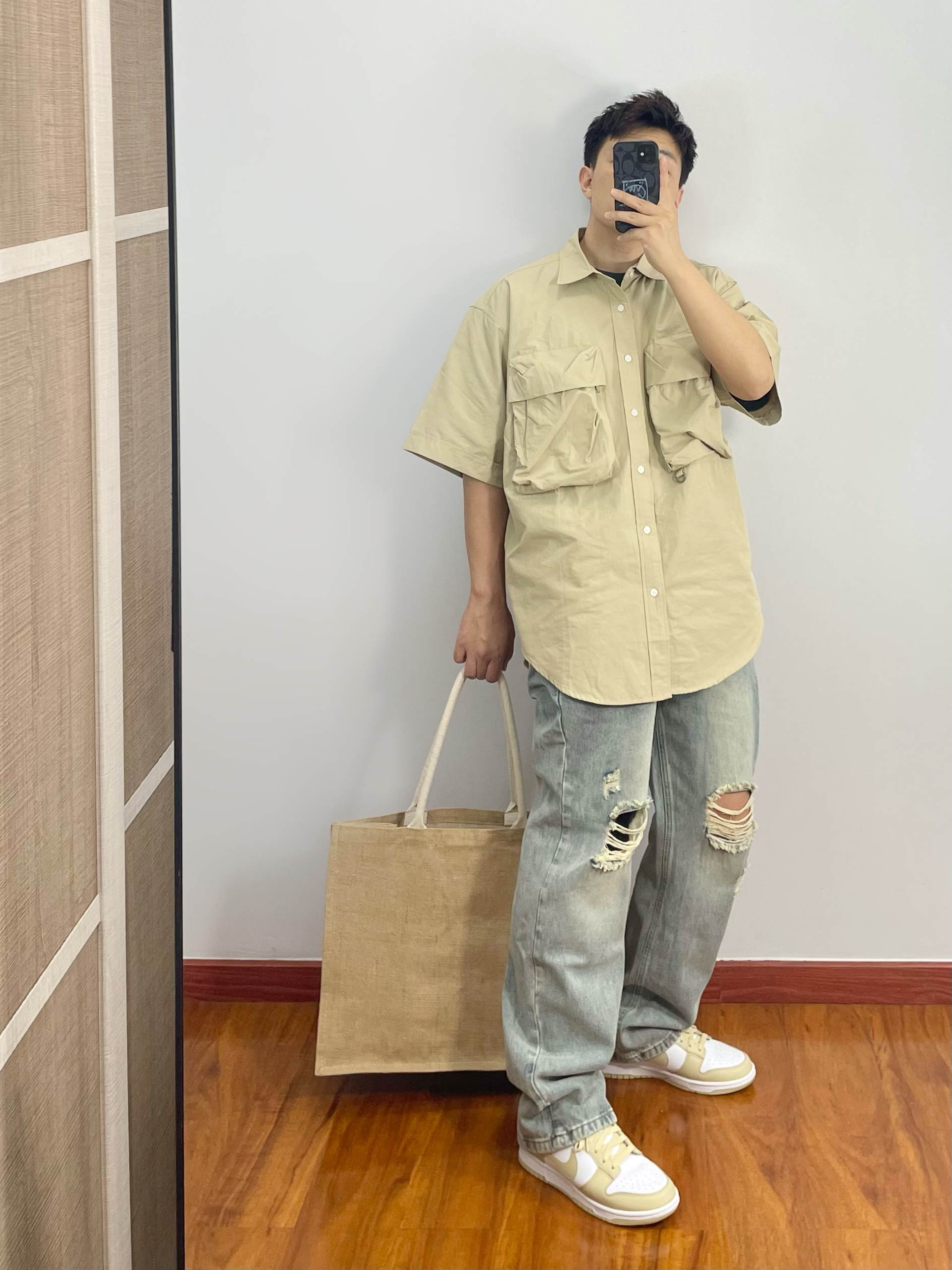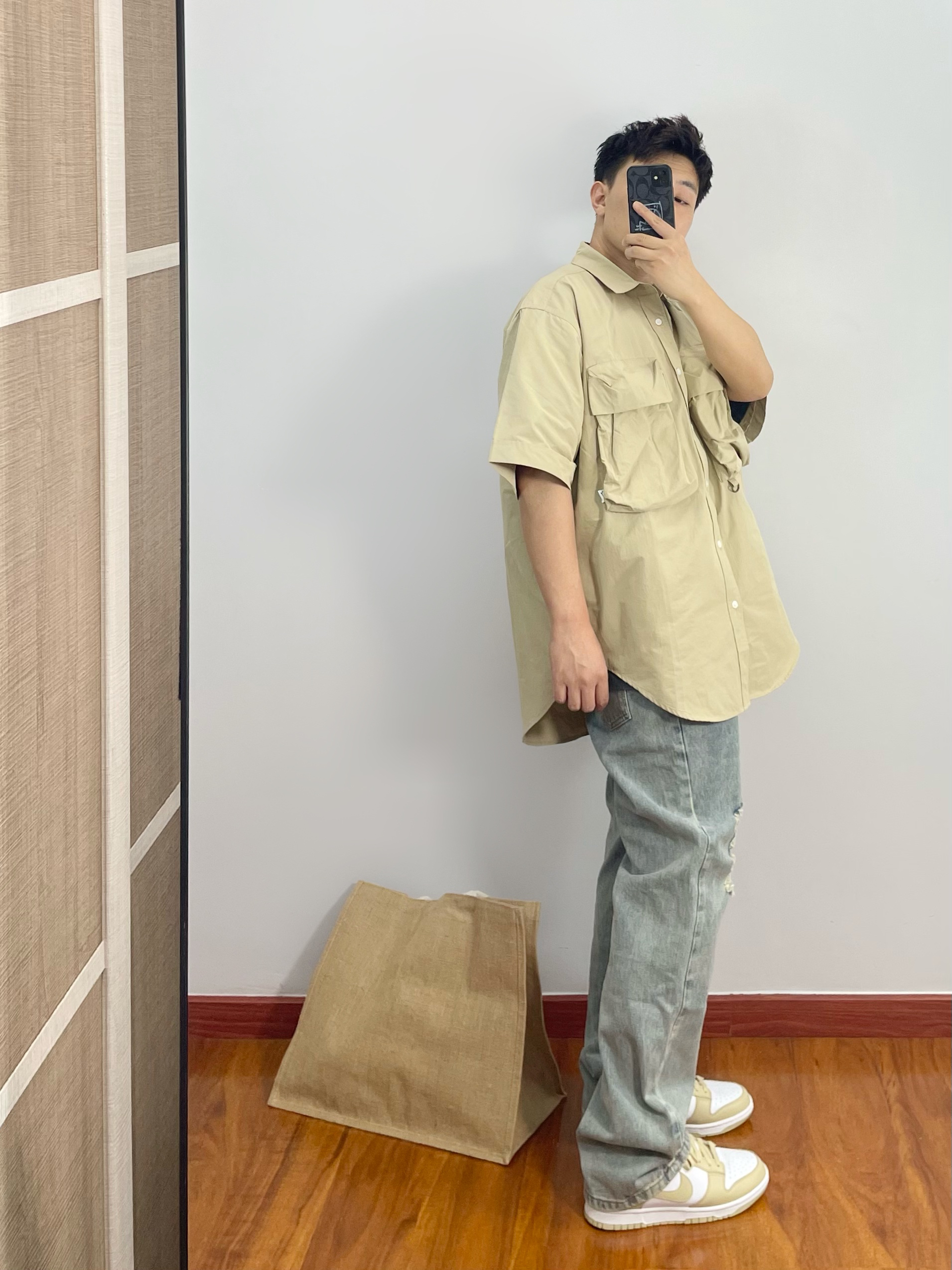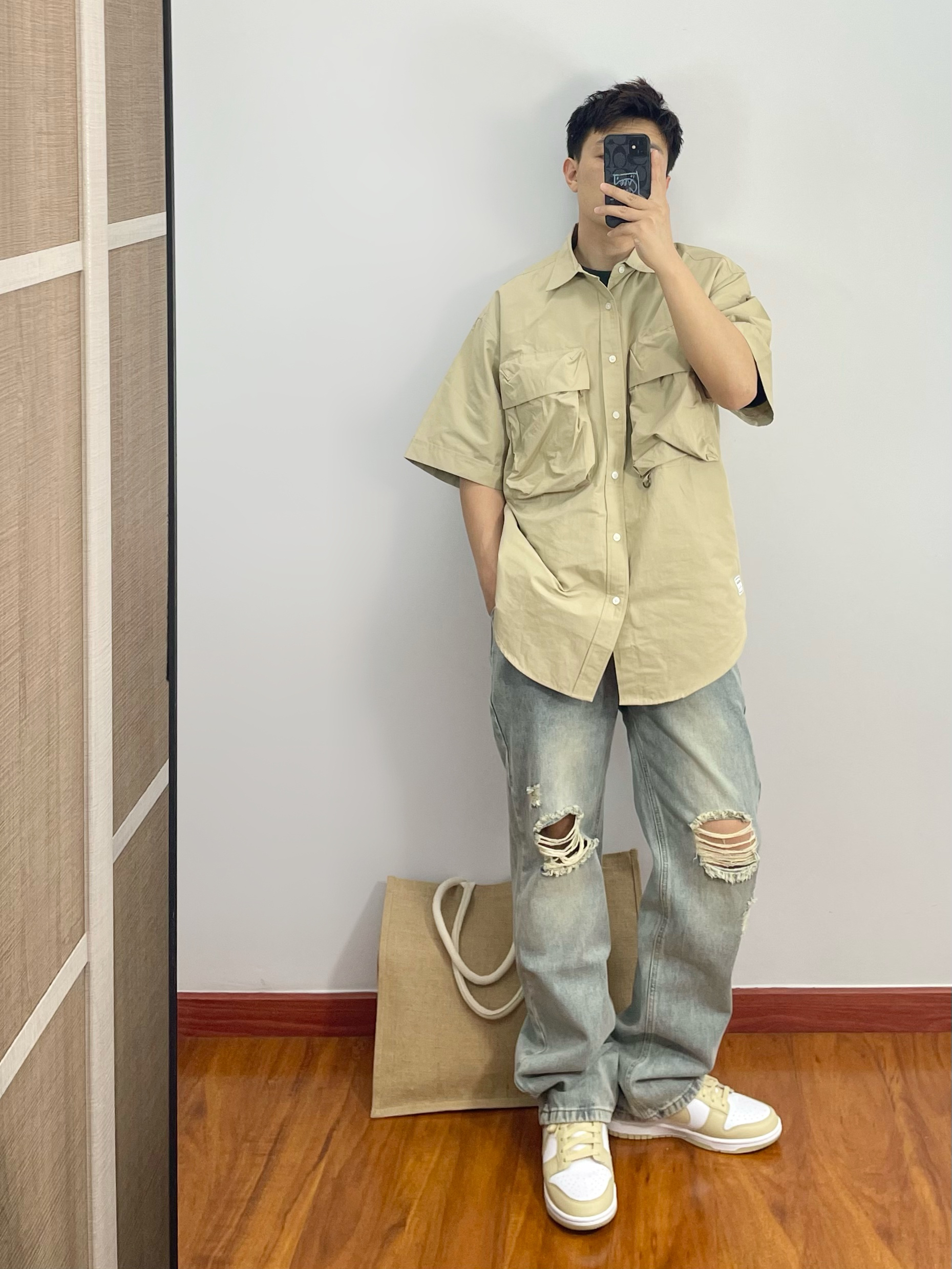 工装衬衫就是好看有造型 搭配破洞牛仔裤痞帅痞帅 脚穿与上衣同色系的dunk 整体搭配好看休闲又舒适 - 170cm/67kg 分享男生的日常穿搭OOTD -