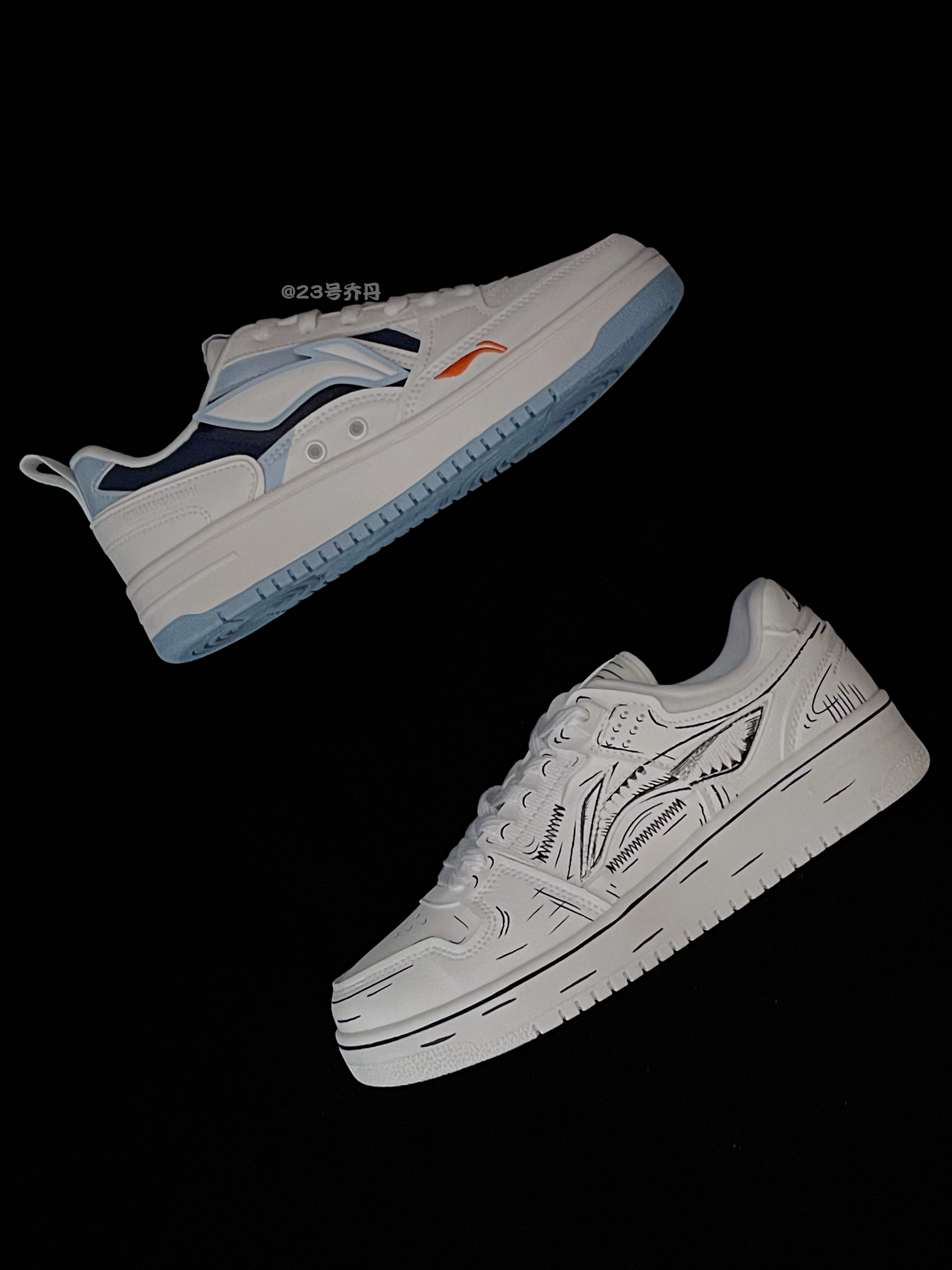 今天给大家分享两双颜值和性价比都不错的板鞋👟 李宁 海川系列『极光蓝』 天迹系列『二次元』涂鸦 白黑 🌟『极光蓝』采用了白色/浅蓝/海军蓝搭配 鞋面运用了易于打理的光滑皮革材质 鞋身外侧设计有魔术贴的白蓝色品牌Logo 鞋尾的提拉带设计方便日常穿脱 最后由白色的中底和浅蓝色橡胶大底收尾 🌟『二次元 白黑』运用了经典的白黑撞色设计 鞋...