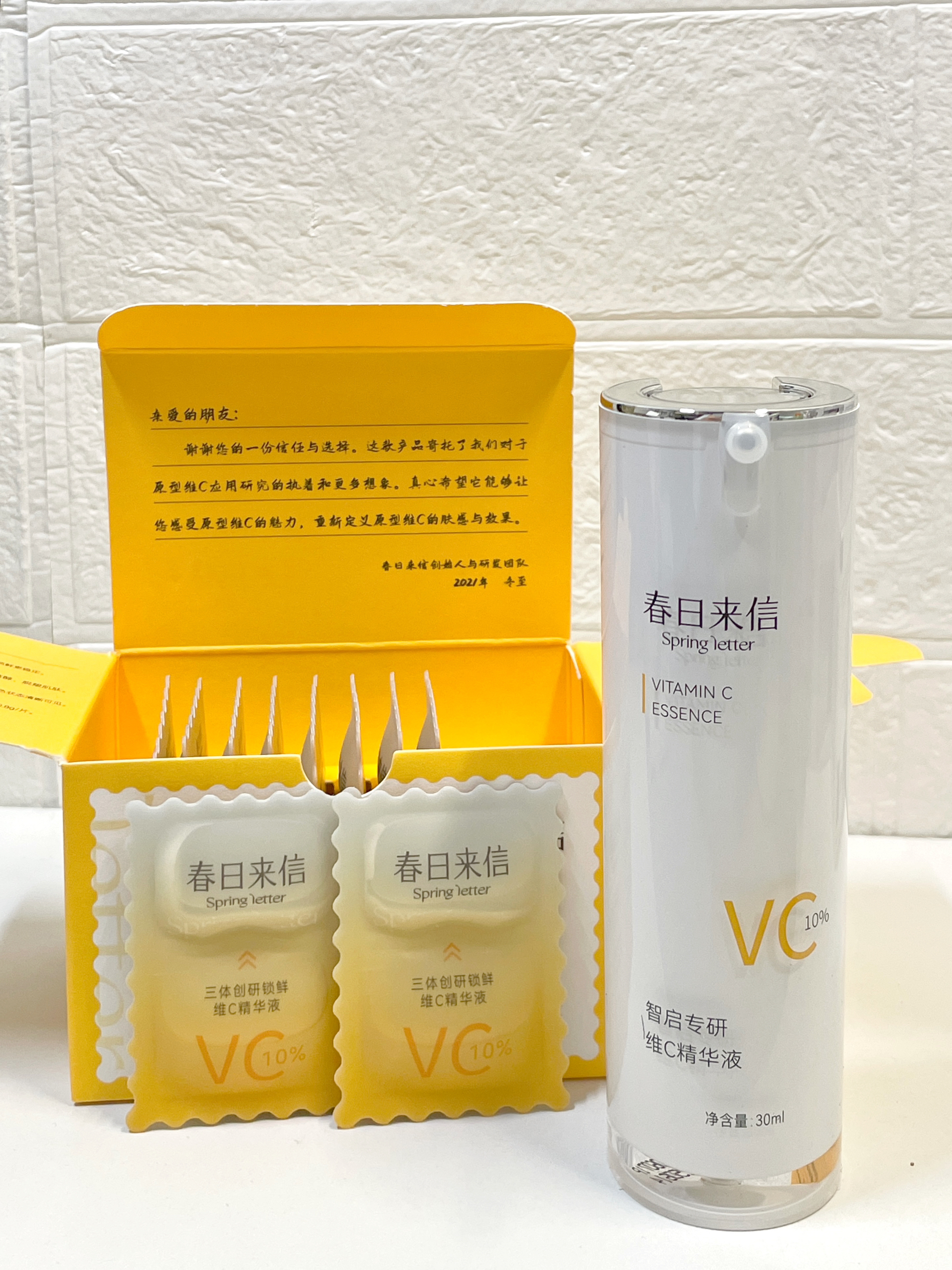 本篇笔记关联了Spring Letter/春日来信 特证美白VC精华液 抗氧化补水保湿祛斑紧致淡化细纹 10%VC等商品,为用户提供真实的使用体验和购买参考。