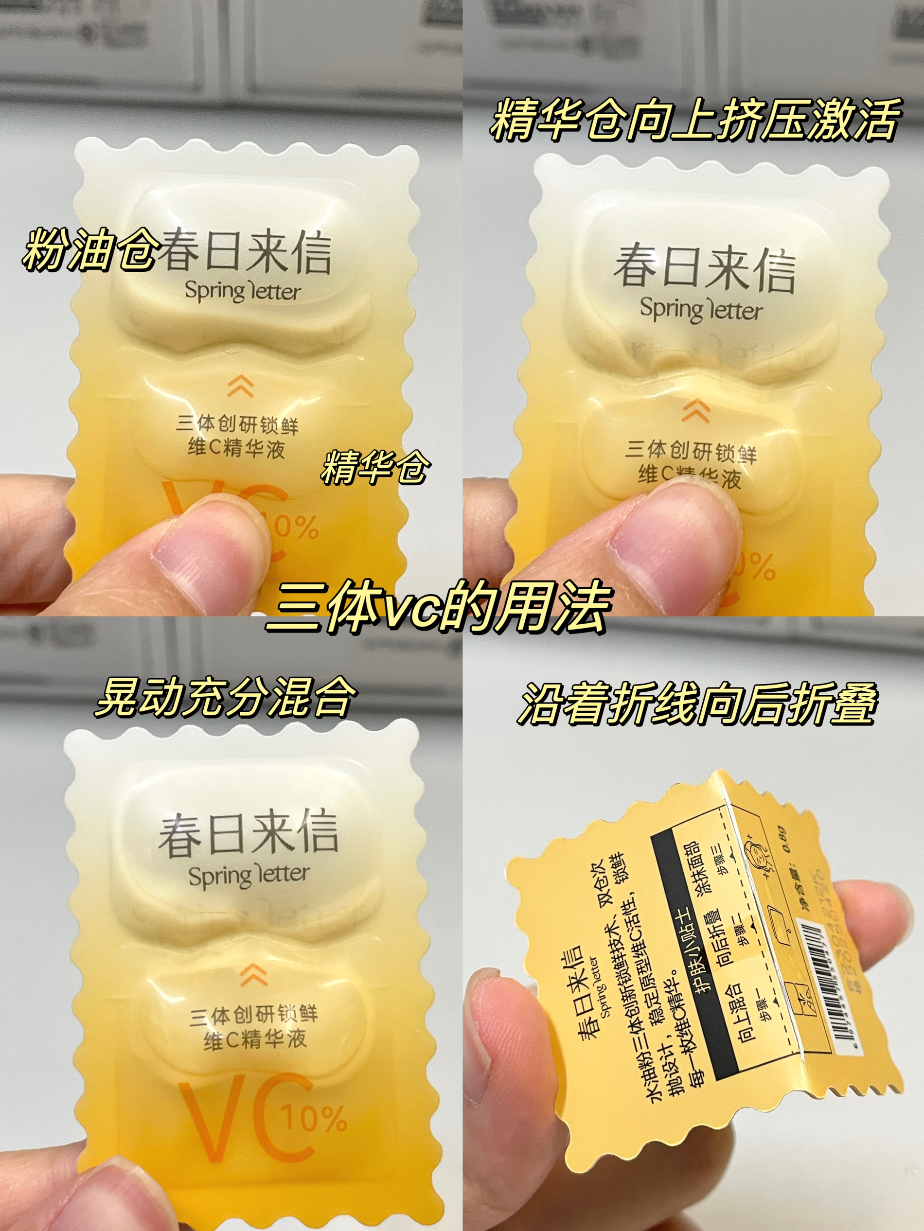 春日来信真的是懂原型vc的~ 尤其是爱熬夜的宝子 真的用一次亮一次 而且还很平价! vc精华出了瓶装版诶 按压设计很方便保存vc 肤感很舒服~上脸清爽不油腻 坚持使用真的会有提亮效果💡 次抛设计立体的vc出门玩的时候带也很方便 首次使用的姐妹们记得建立耐受期 夏天可以把vc放在冰箱不易氧化