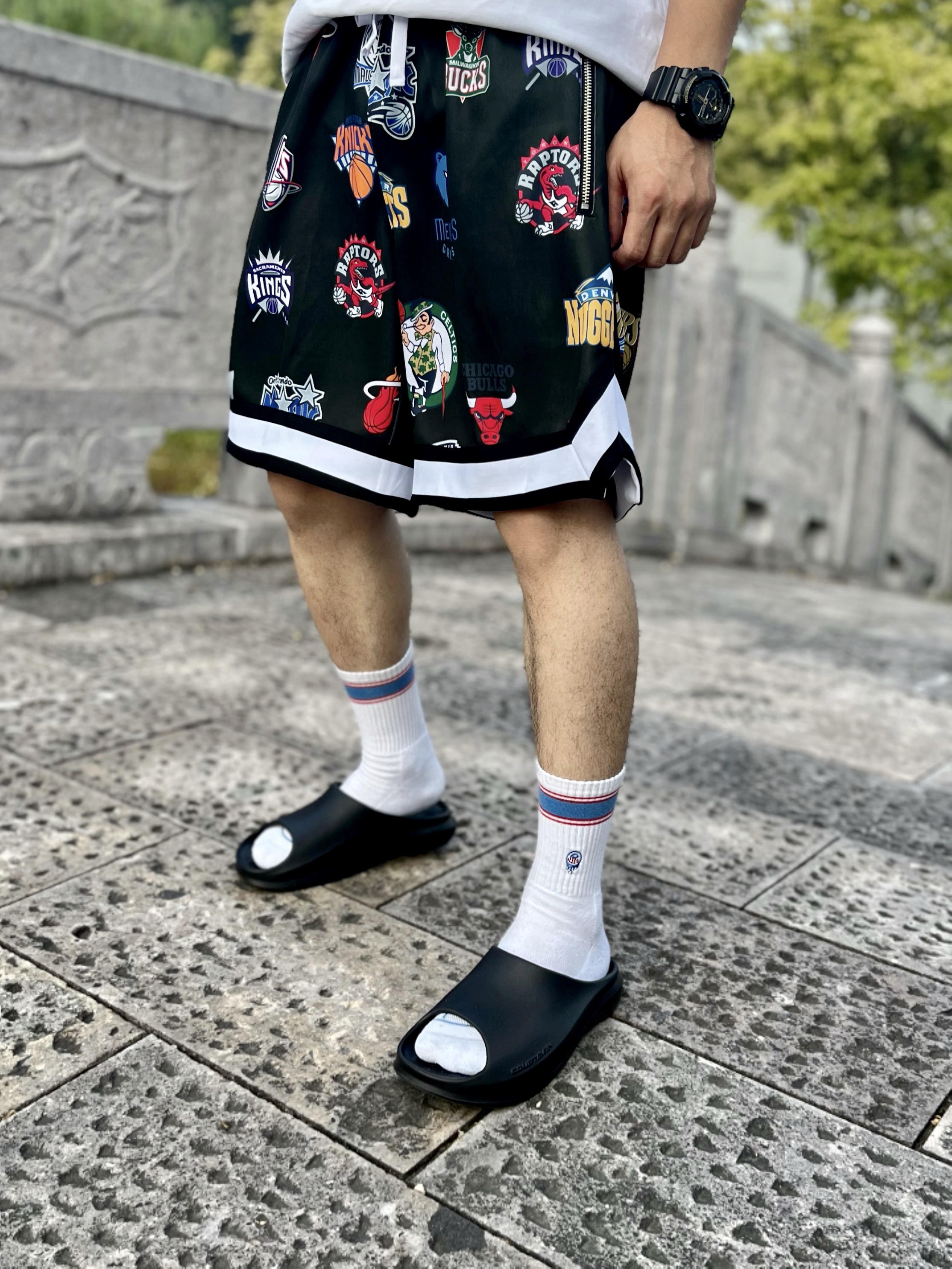 哈喽~大家好 我的夏季日常自然少不了球裤🩳和拖鞋🩴 相信很多男生也会和我一样 今天的这件裤子就比较个性话 印满了众多球队的logo 面料也很丝滑😎凉爽的嘞! 拖鞋的话也比较软弹是我喜欢的款式 一起分享给你吧! 🩳:XDFM 🩴:野球帝 尺码:173/65kg L 风格:运动/休闲