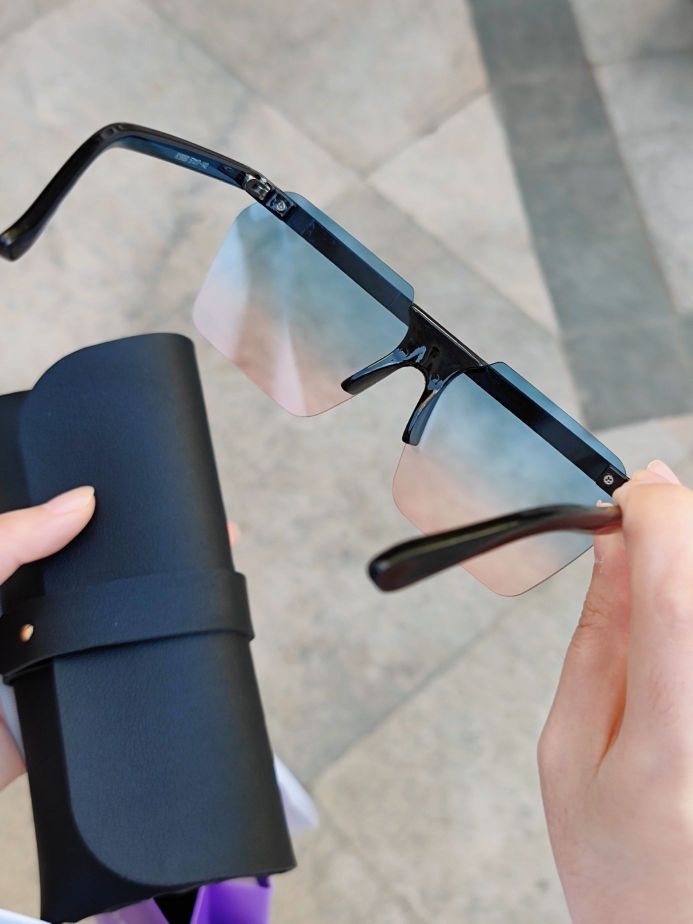 姐妹们!渐变色真的好好看哦, 我这款是CIROCCO家的偏光太阳镜🕶️, 很别致的黑框蓝粉渐变片, 在千篇一律的墨镜里面脱颖而出~ 夏天搭配出门👌🏻既能保护眼睛又有氛围感, 一整个又甜又拽! 简约的黑白色系穿搭就蛮合适, 很时髦高街既视感😎, 自带眼镜盒、便携包、礼品袋这些, 我觉得作为💝小众礼物送对象也是不错的选择~