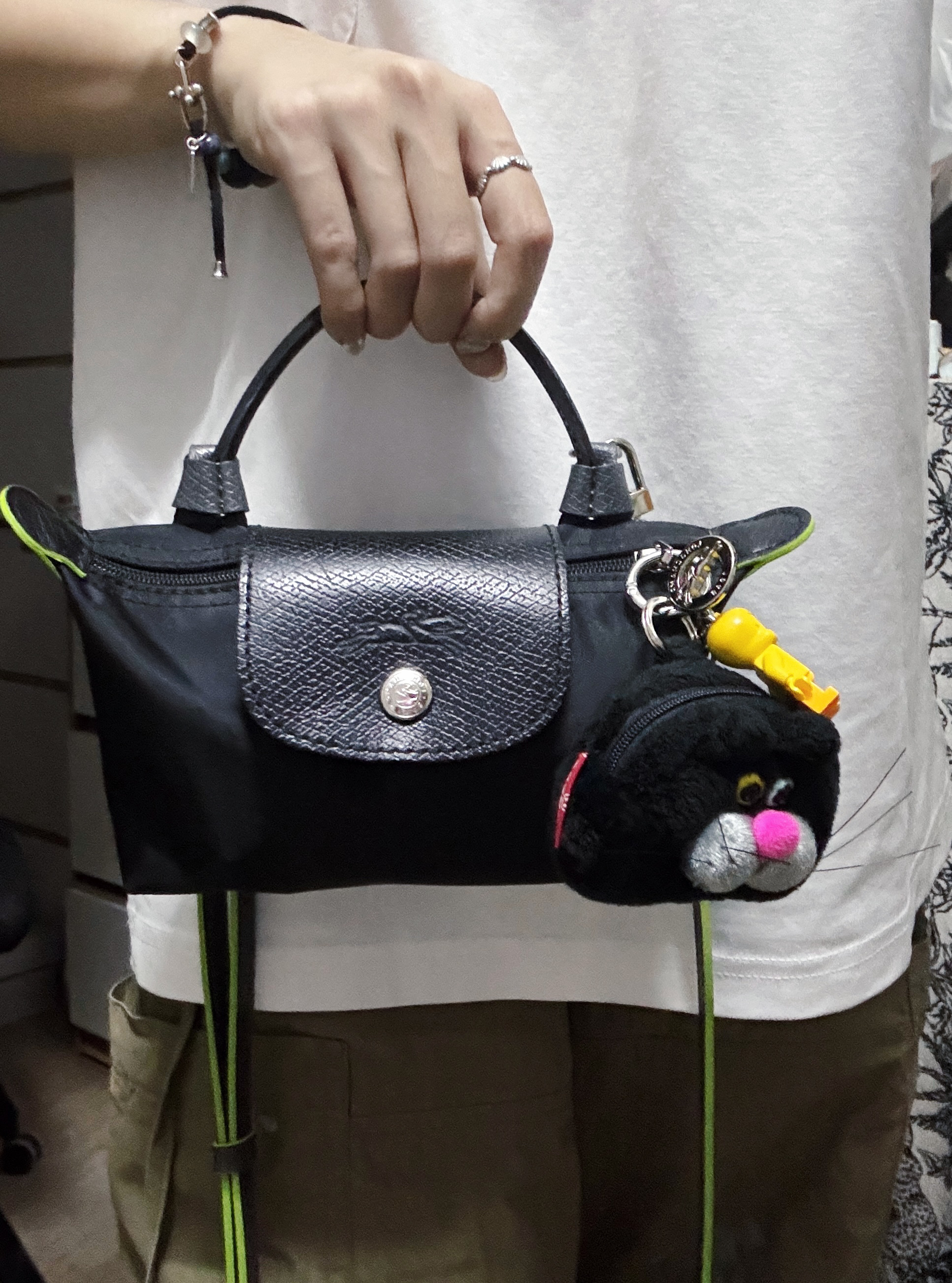 纸白色的珑骧真的是敲好看吖~ 不仅容量可观,而且非常百搭。 收纳起来就只有这么一点点~Hh,这也太可爱了 自己DIY了一个肩带,斜挎手拎都很方便呢!