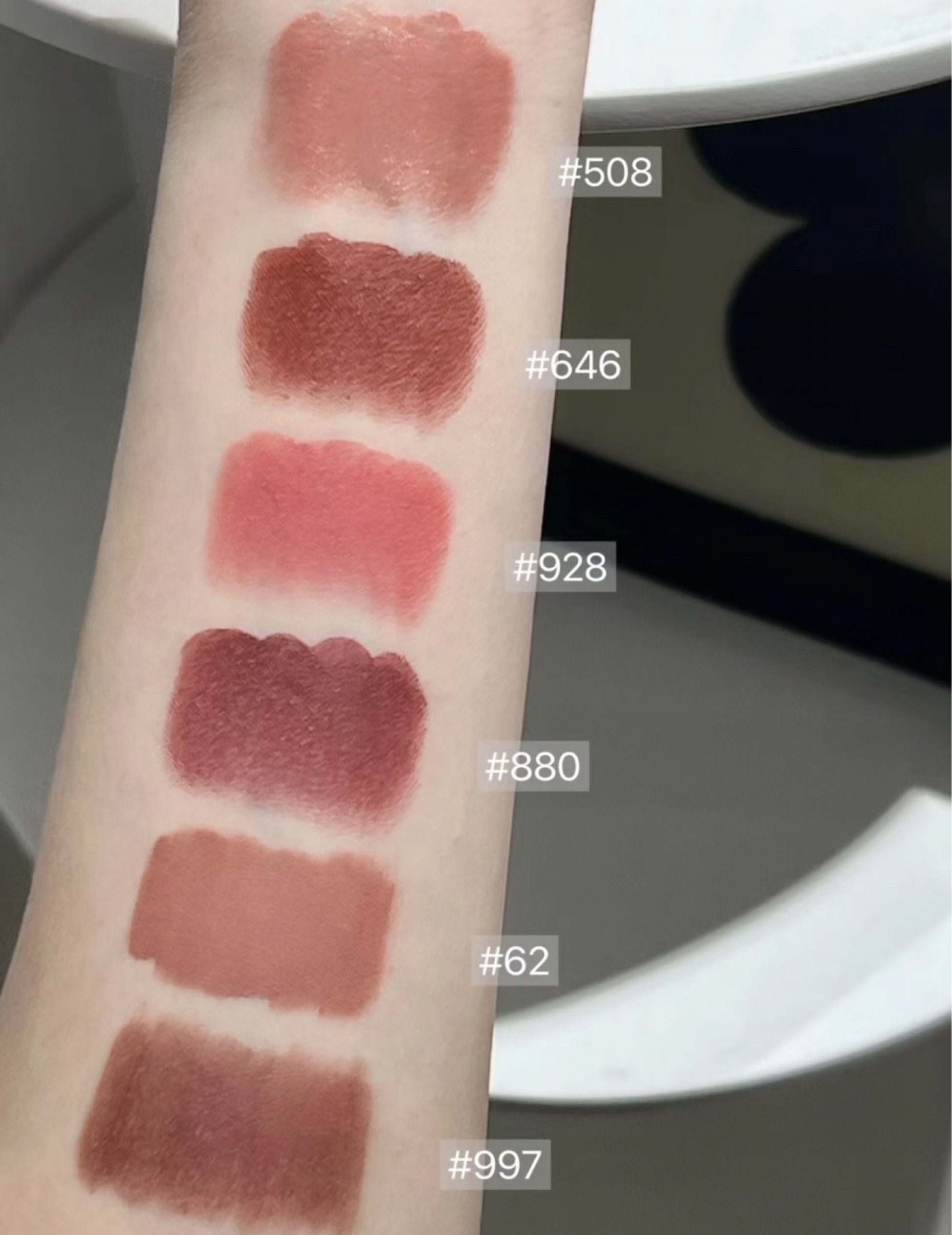 🛒好物名称:mac口红 🤔推荐理由:平时化妆风格很多样!不同妆容搭配不同的口红色号 mac这几只真的不容易出错! 508适合叠涂 646妥妥的千金小姐 928就是可爱软妹一枚 880时候气场女王 62就是斩男必备的纯欲色 997很适合秋冬感!